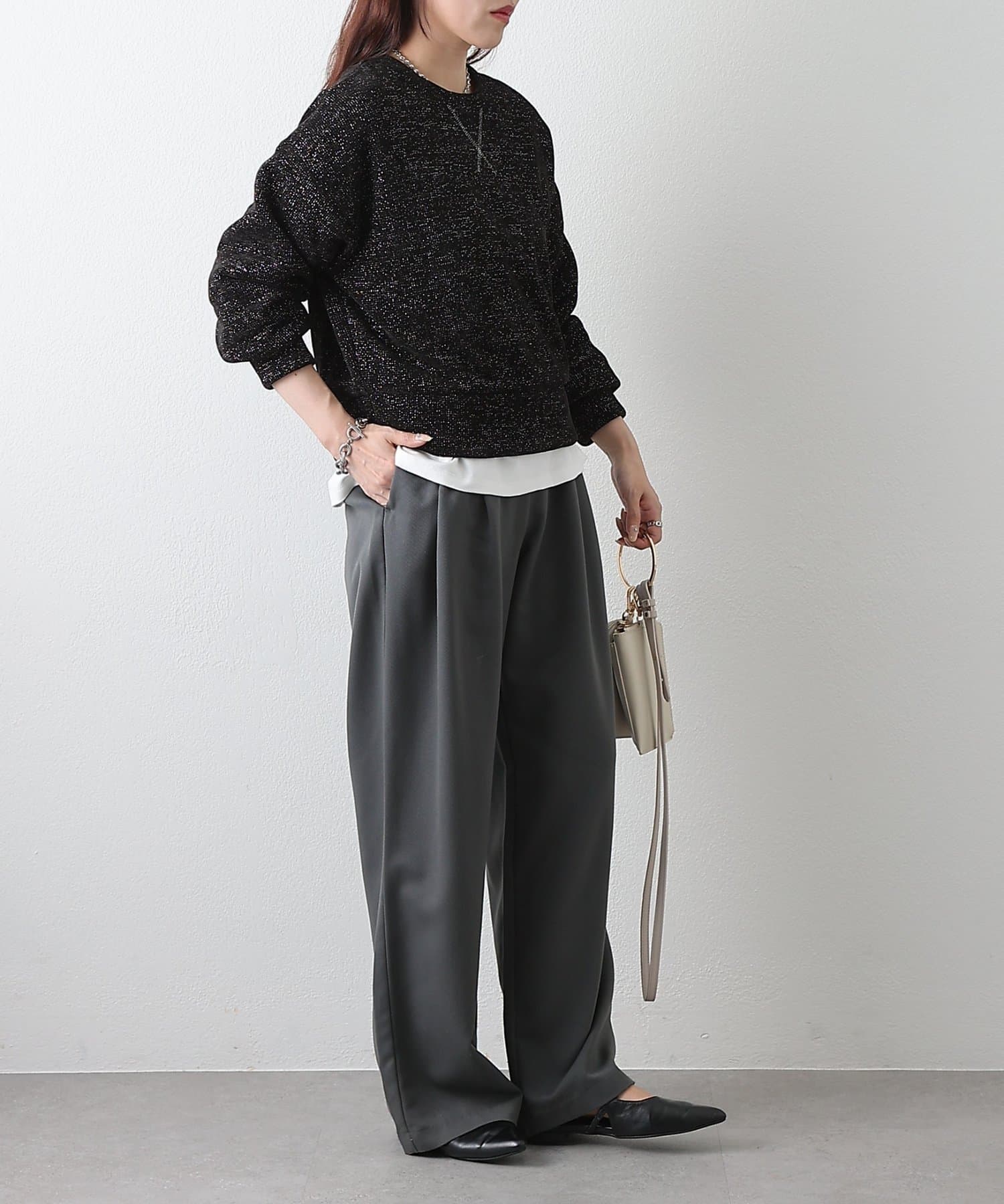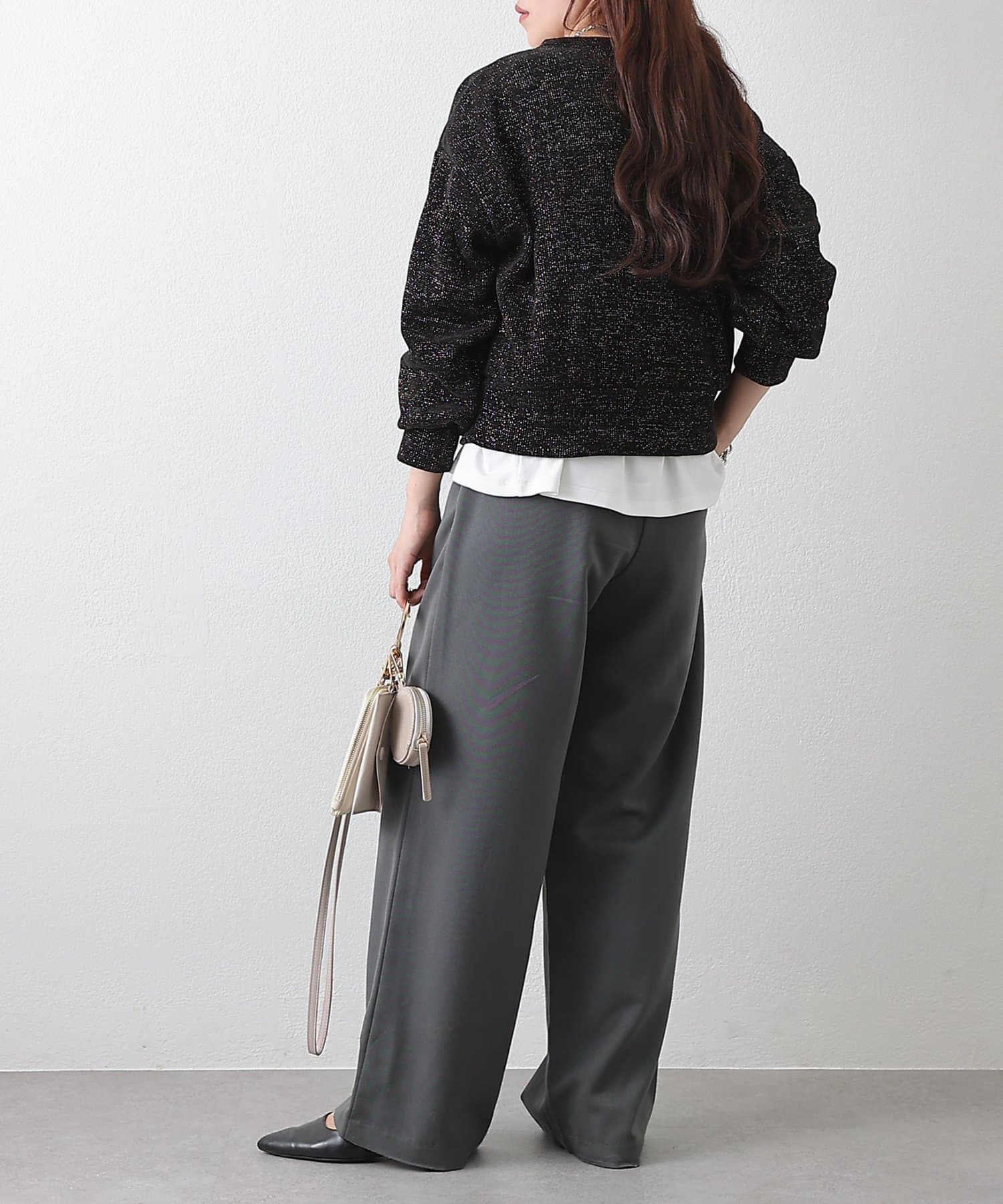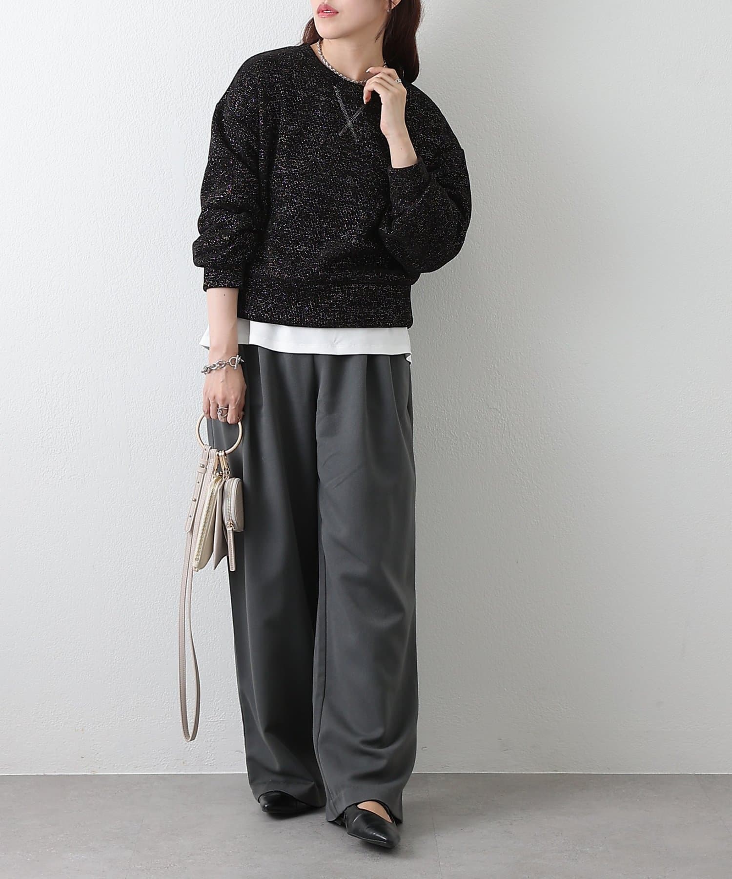 光にふわりと反射するラメのきらめきは派手すぎず、大人が日常で着やすい“上品な華やかさ”を演出します。