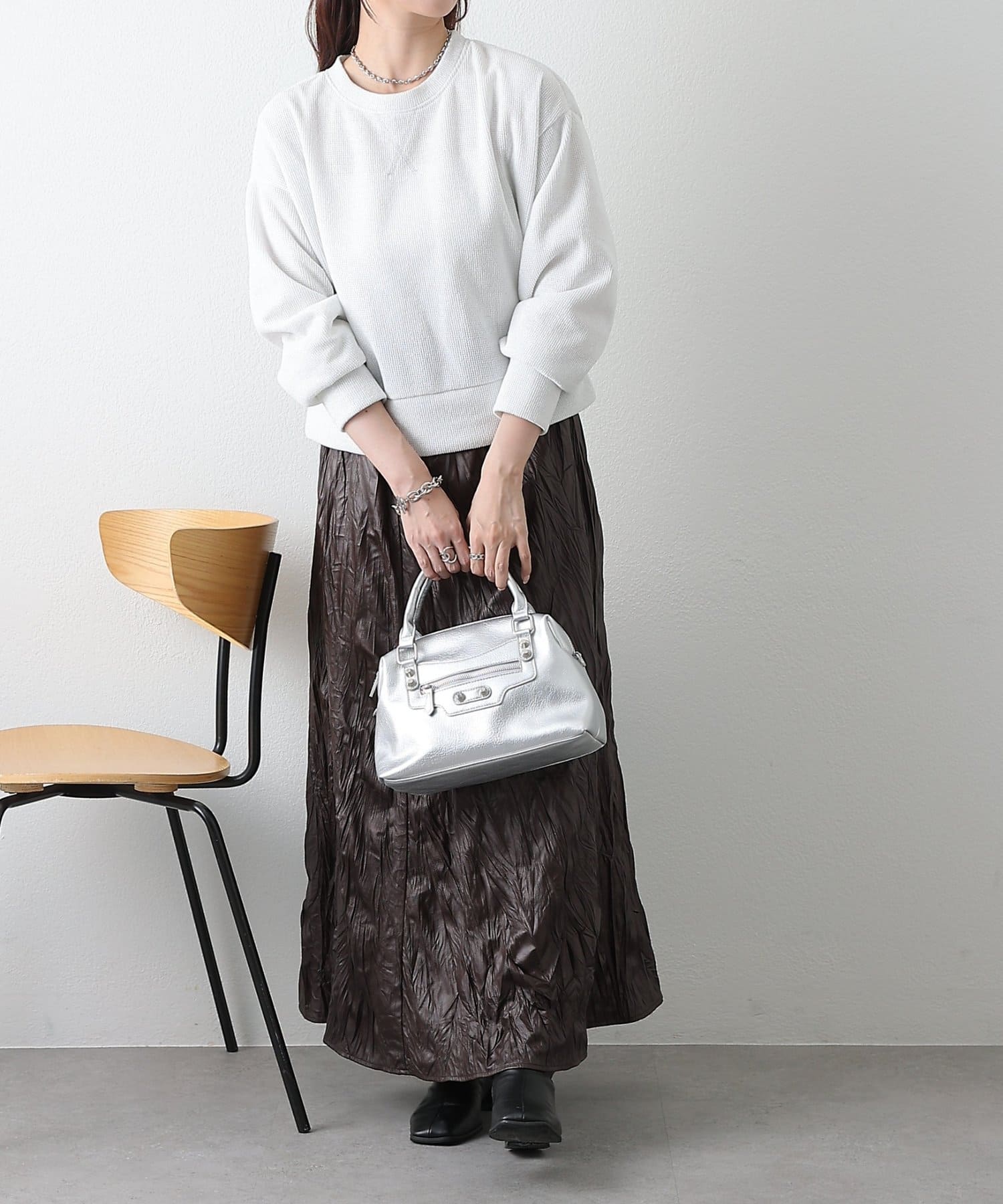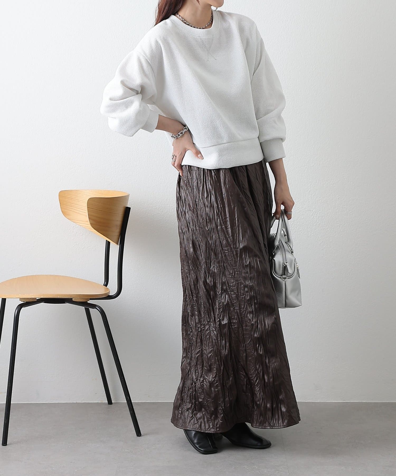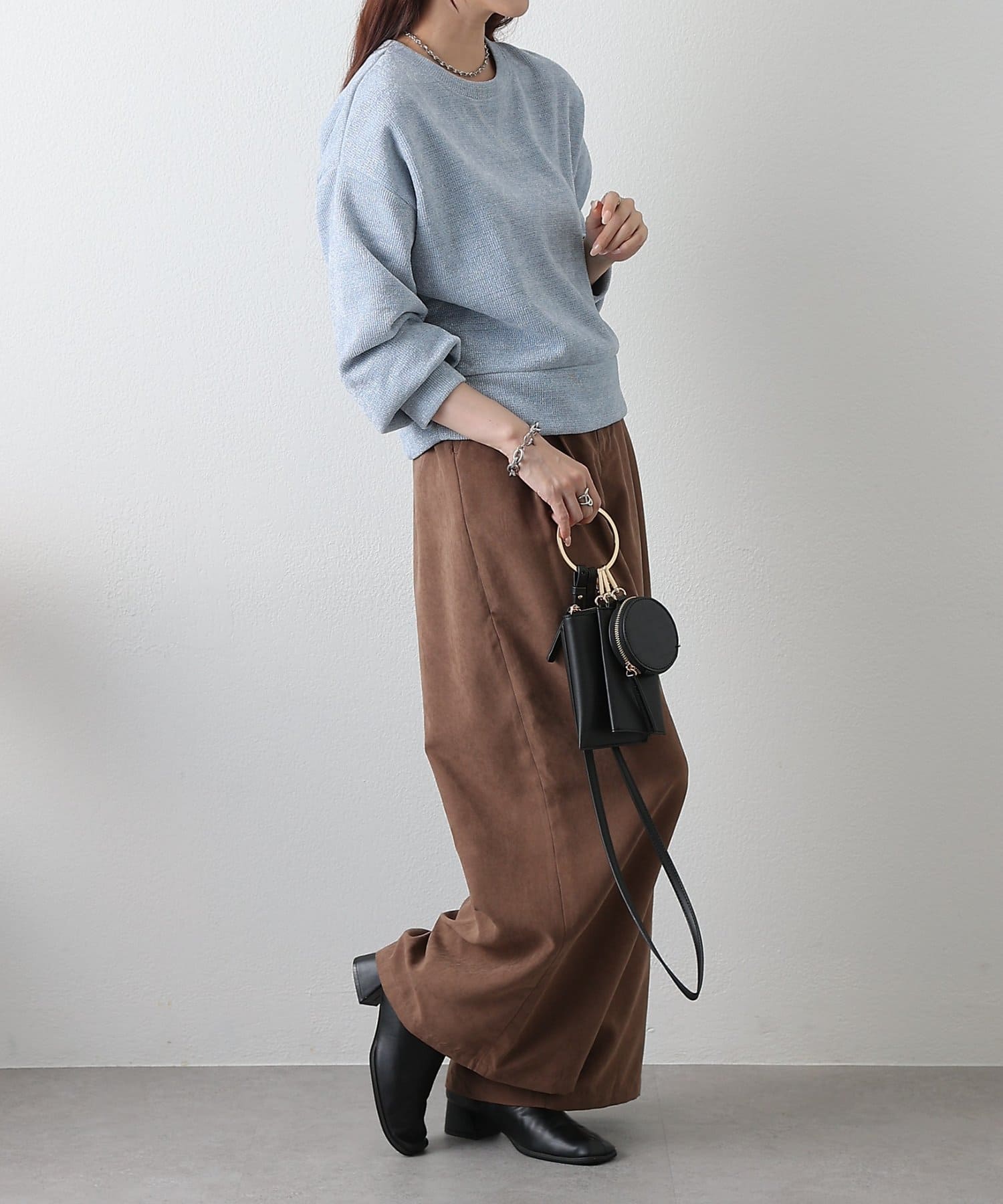 光にふわりと反射するラメのきらめきは派手すぎず、大人が日常で着やすい“上品な華やかさ”を演出します。