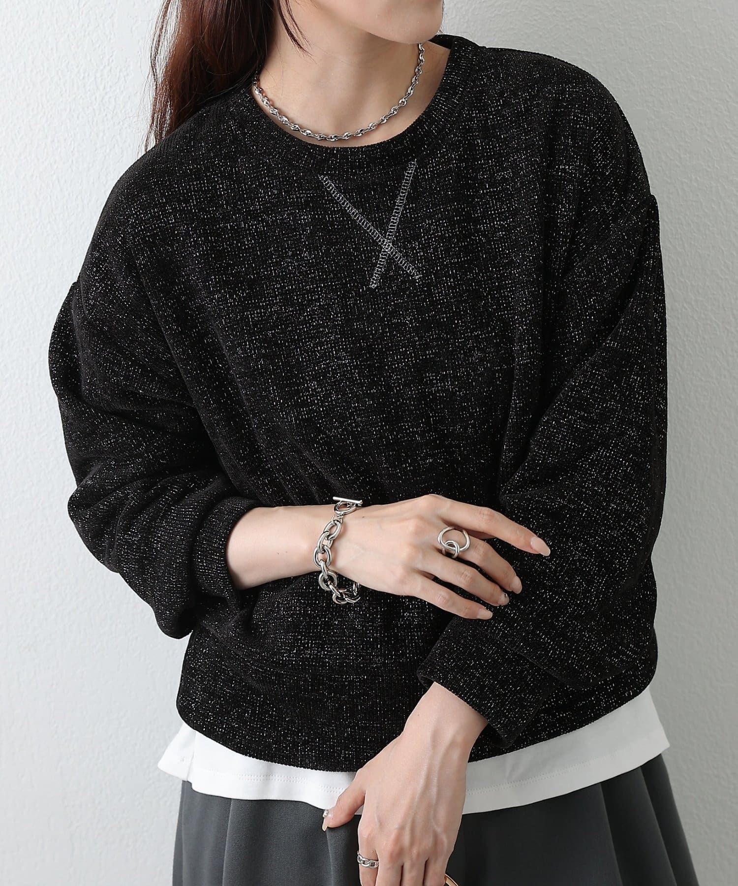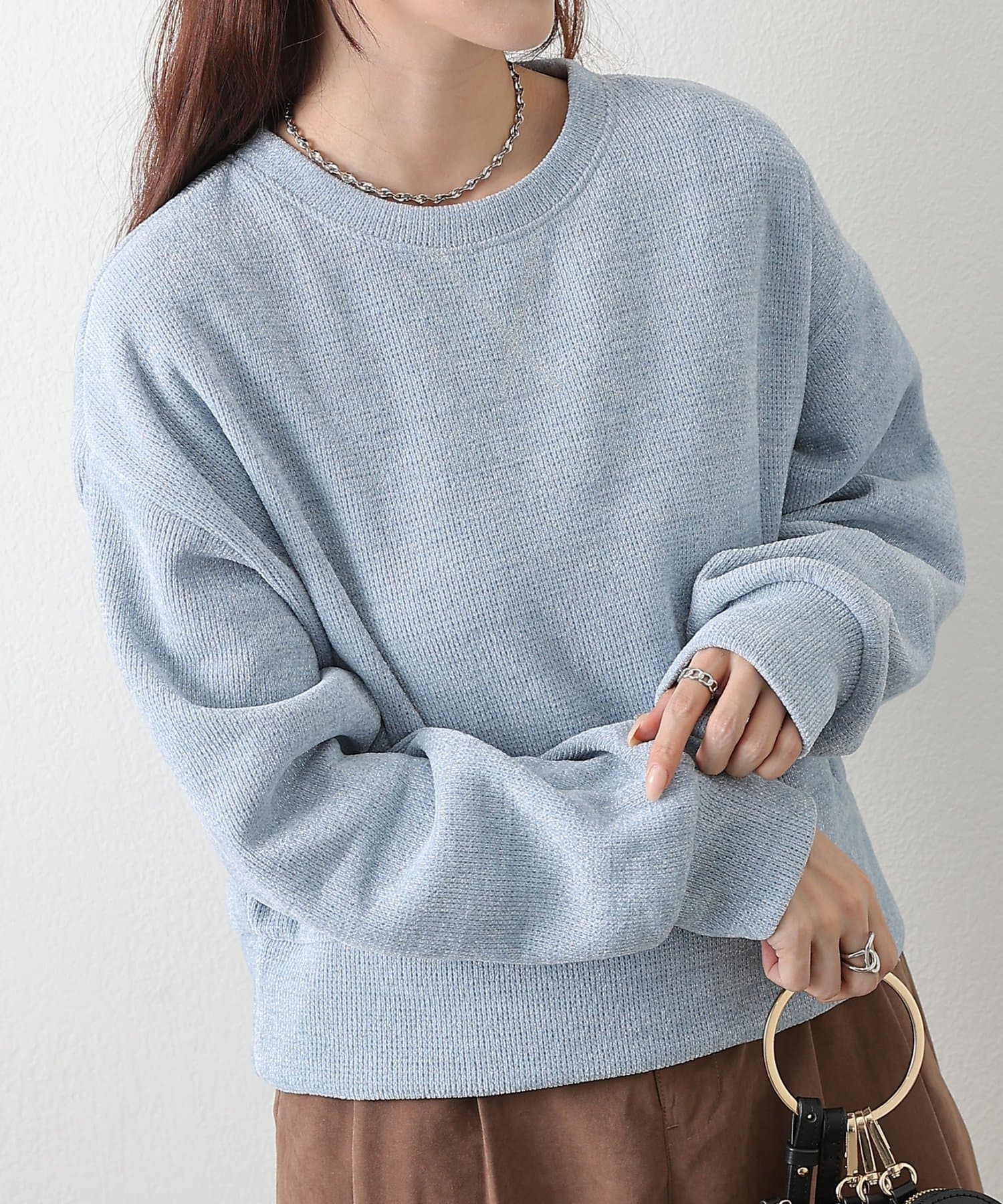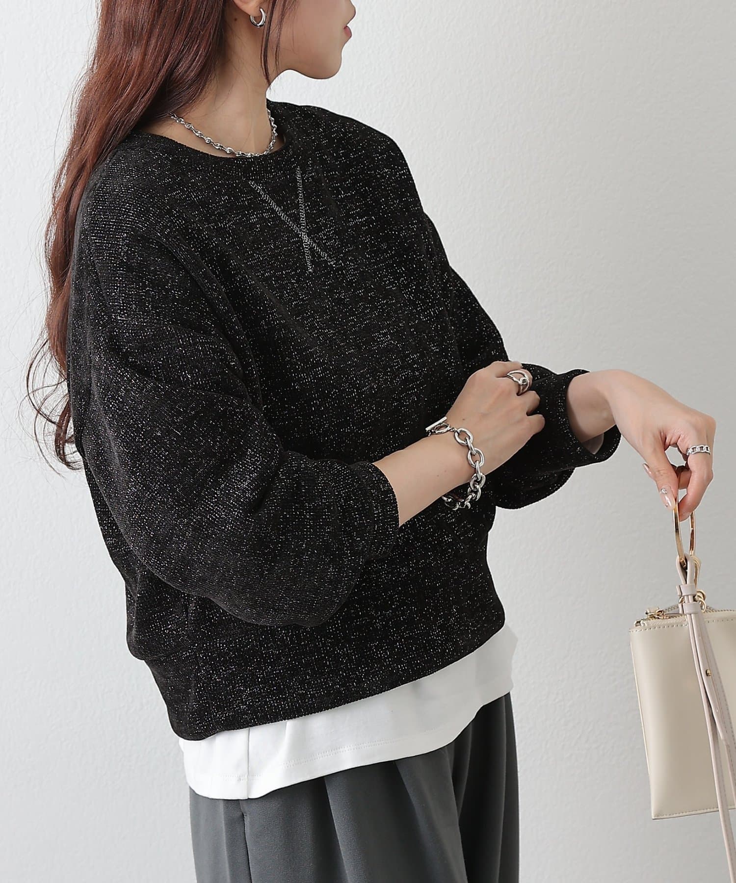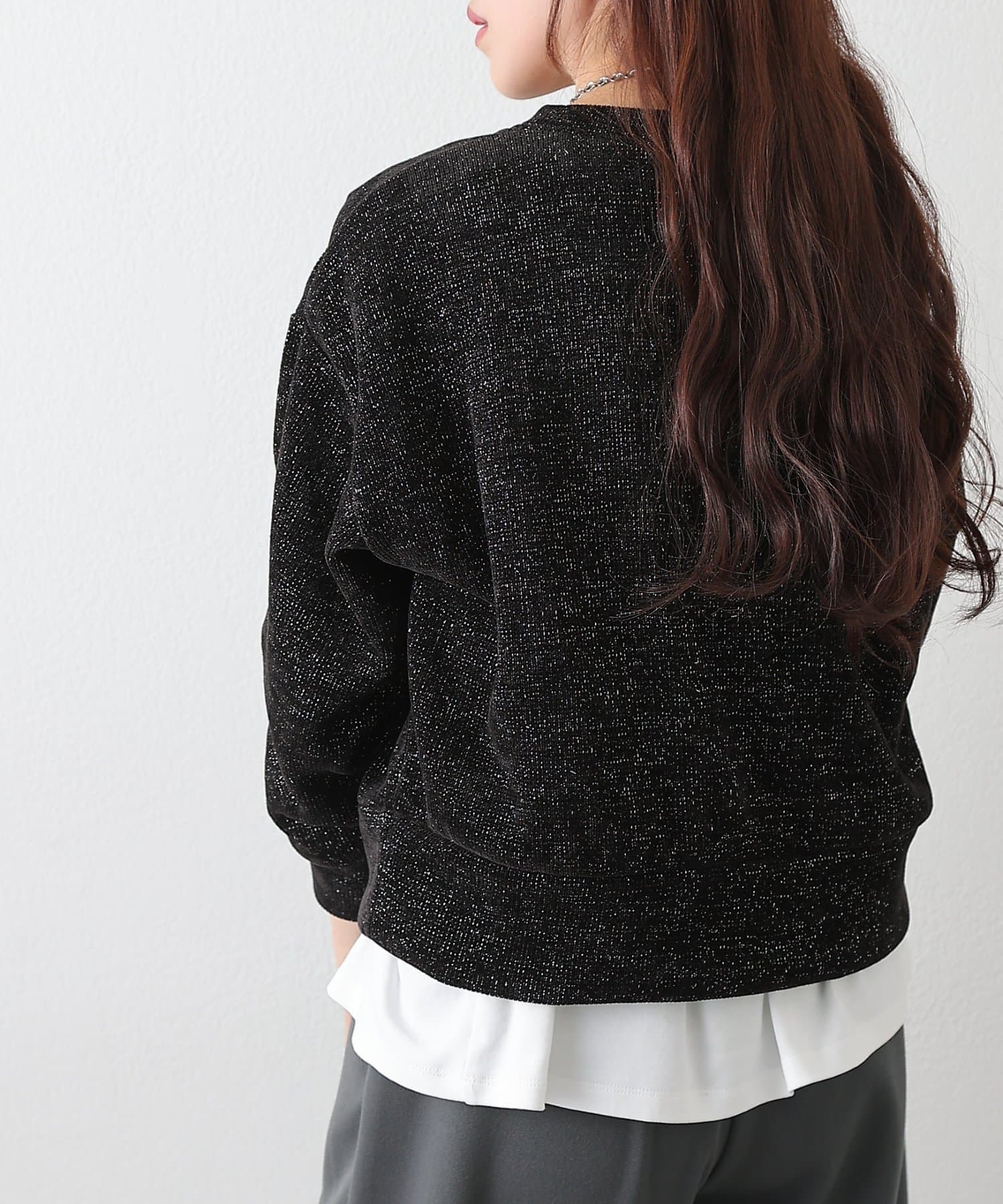 【繊細ラメのモールクルーネックニットプルオーバー】