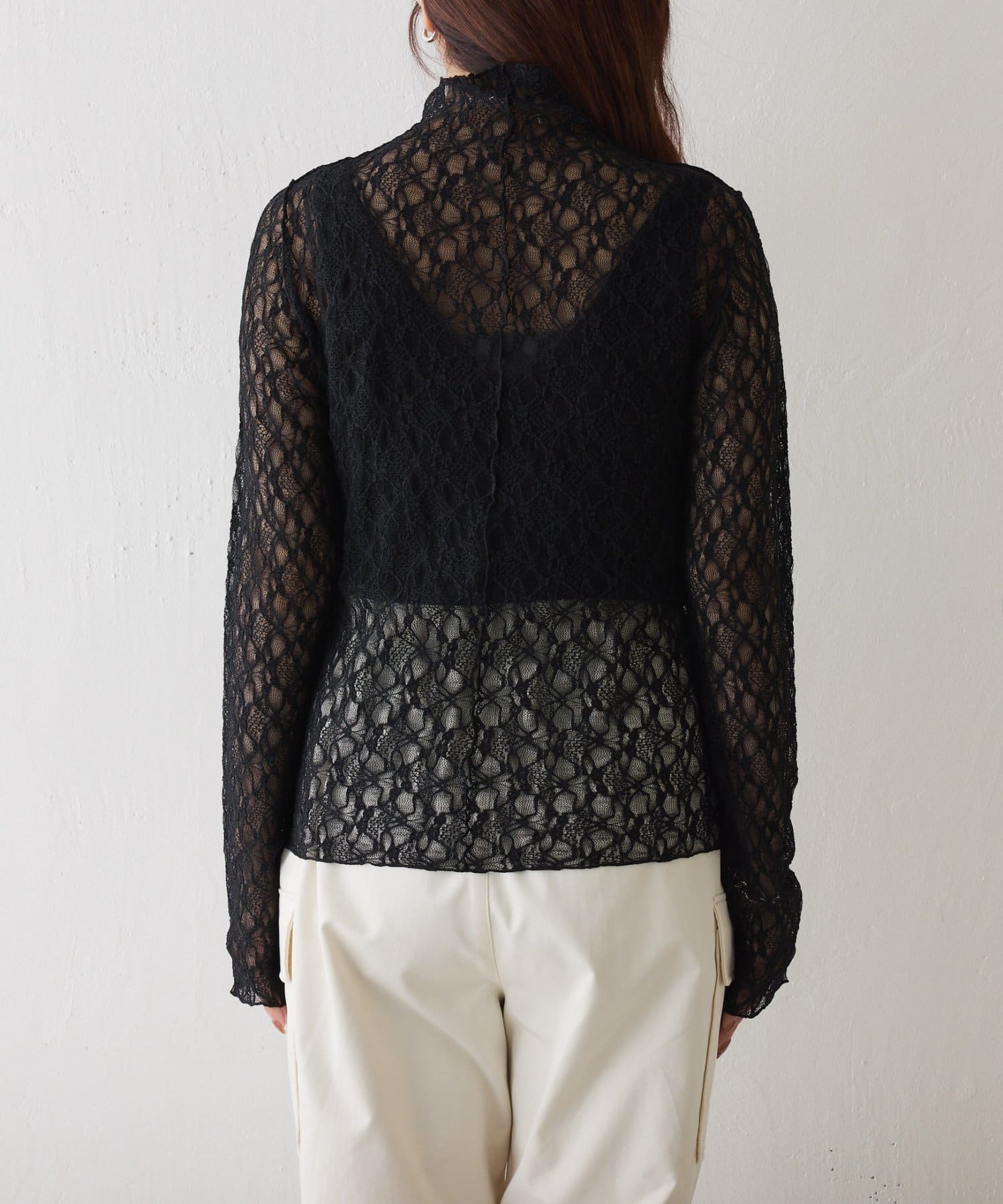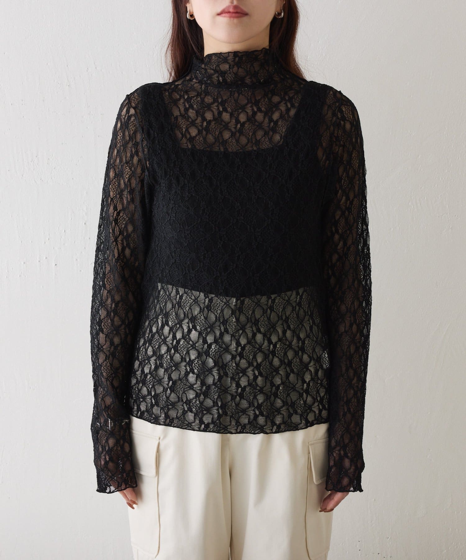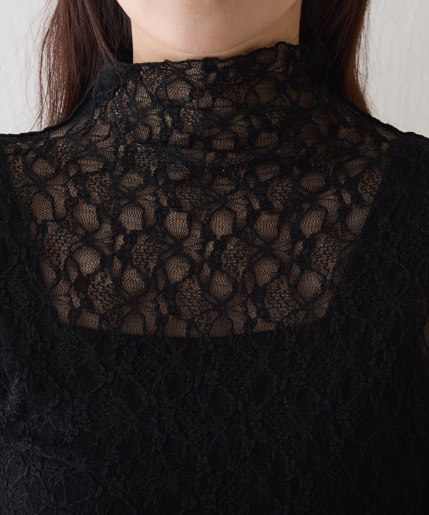 ストレッチレースボトルネックプルオーバー