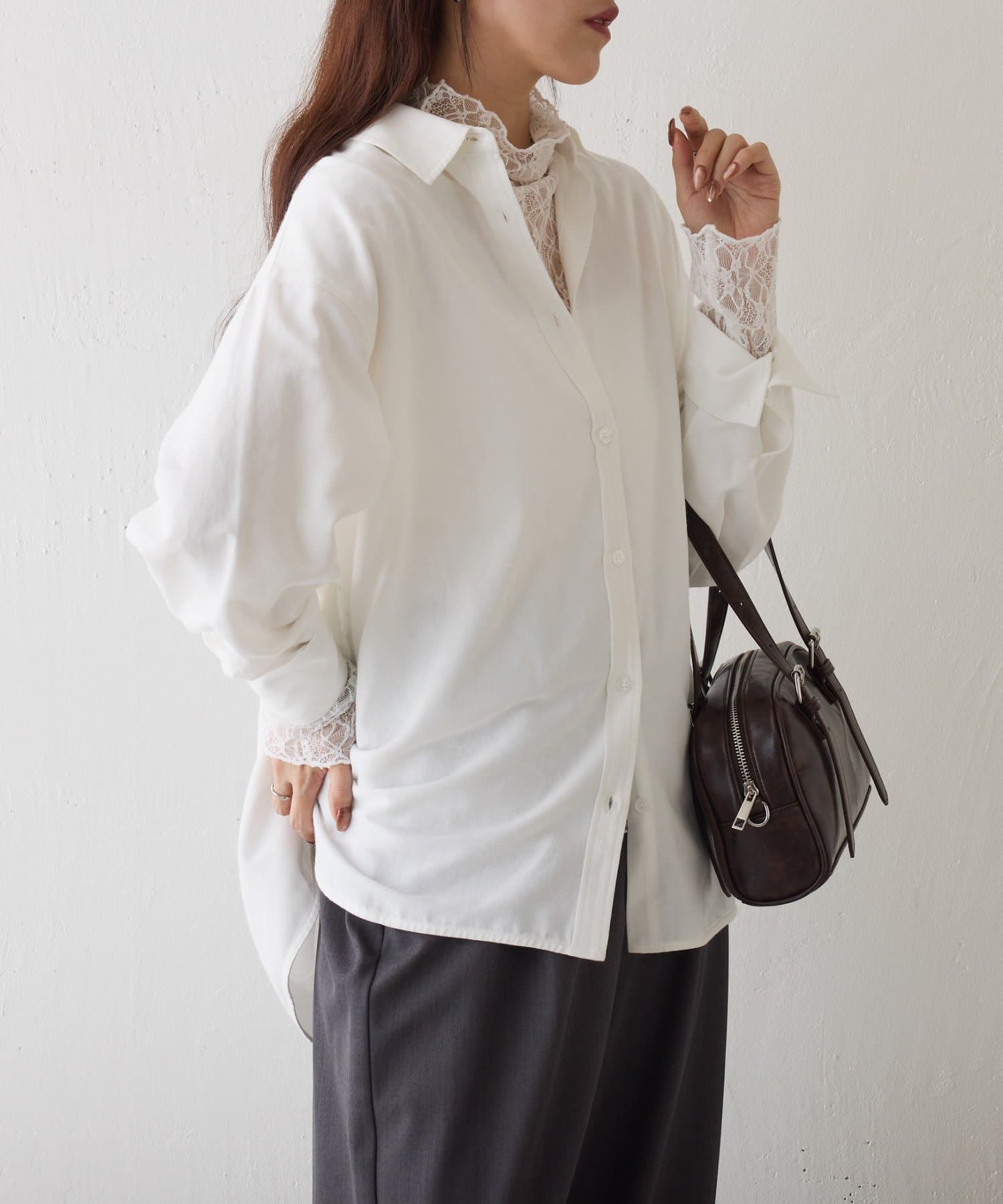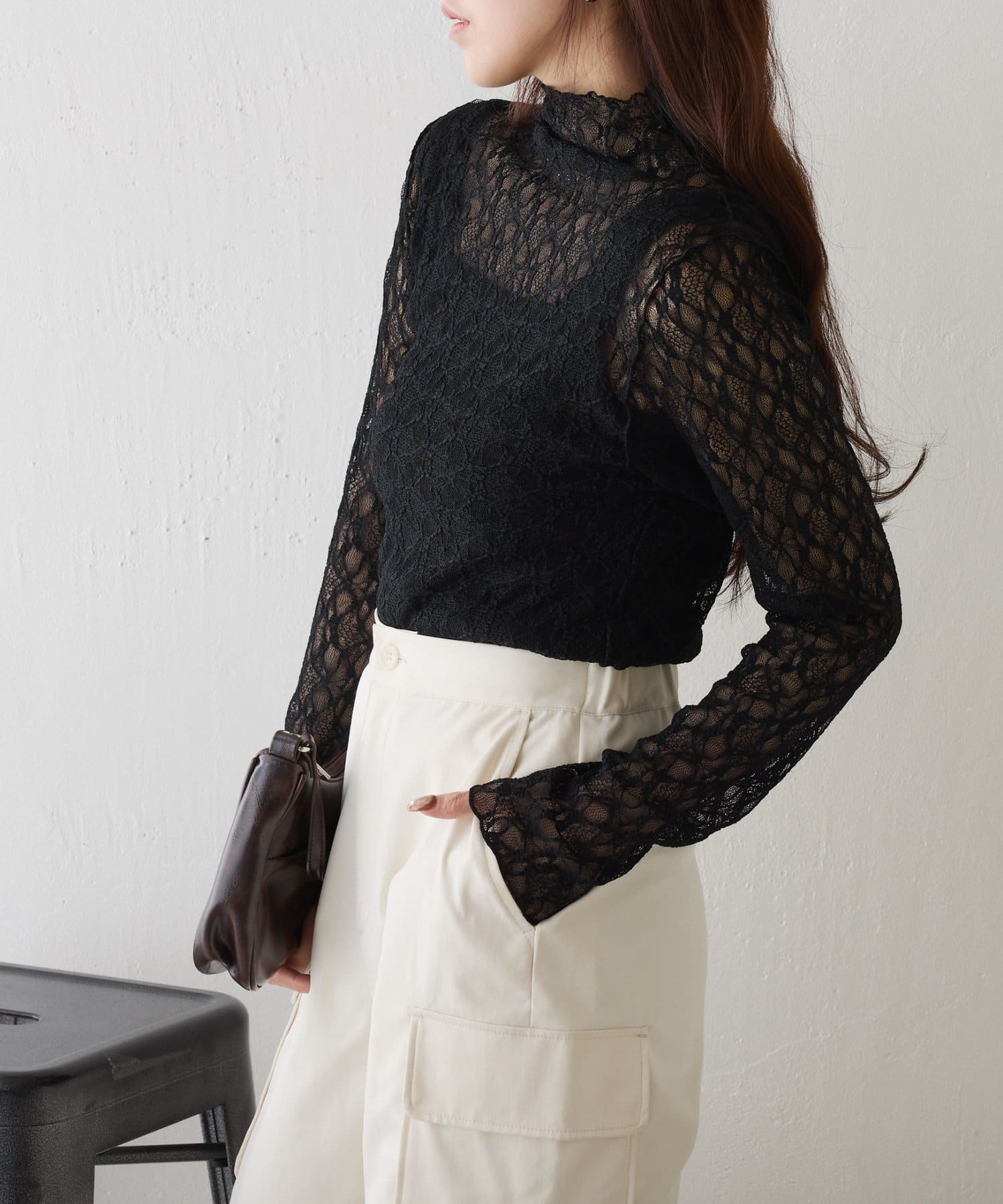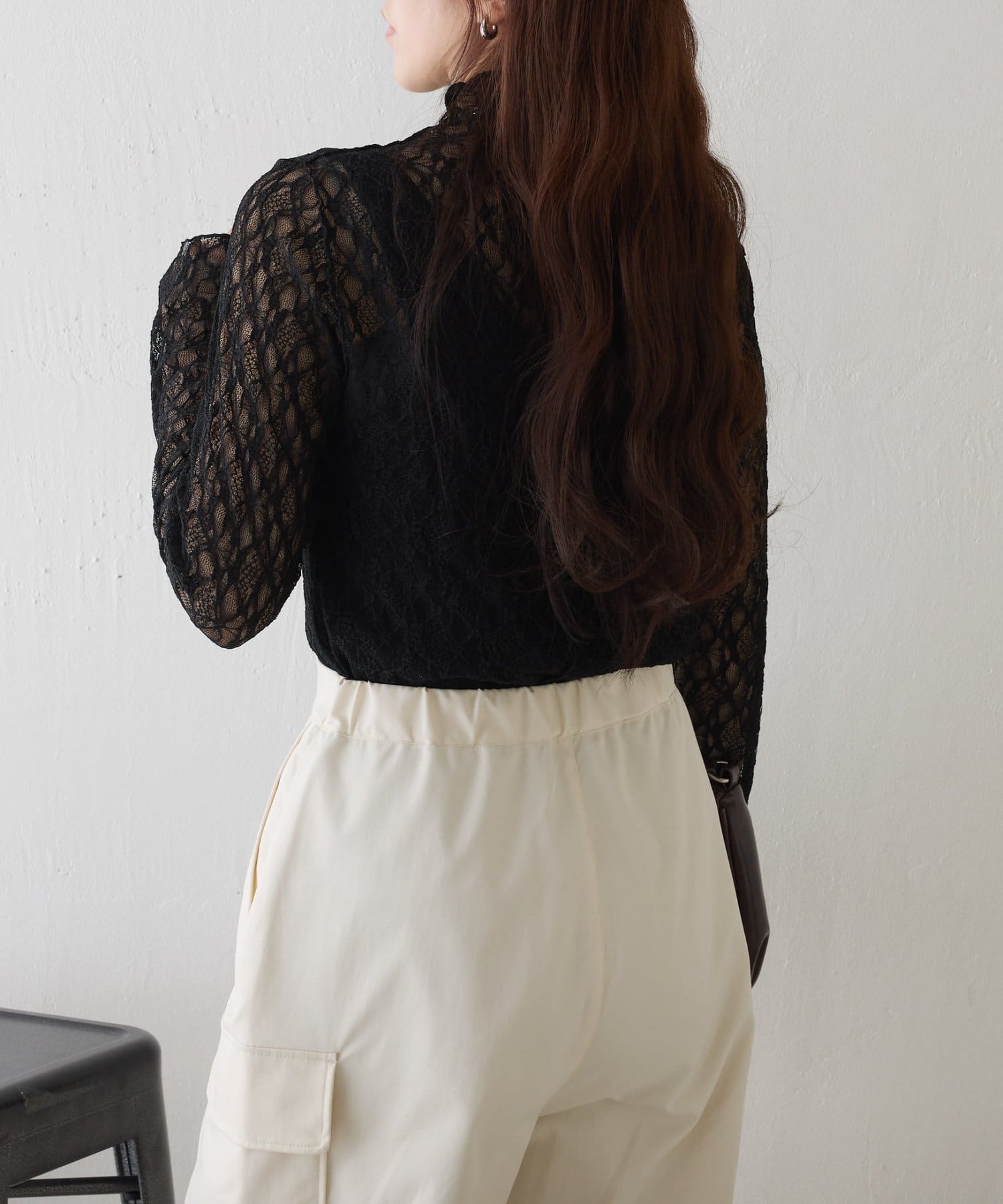 ストレッチレースボトルネックプルオーバー