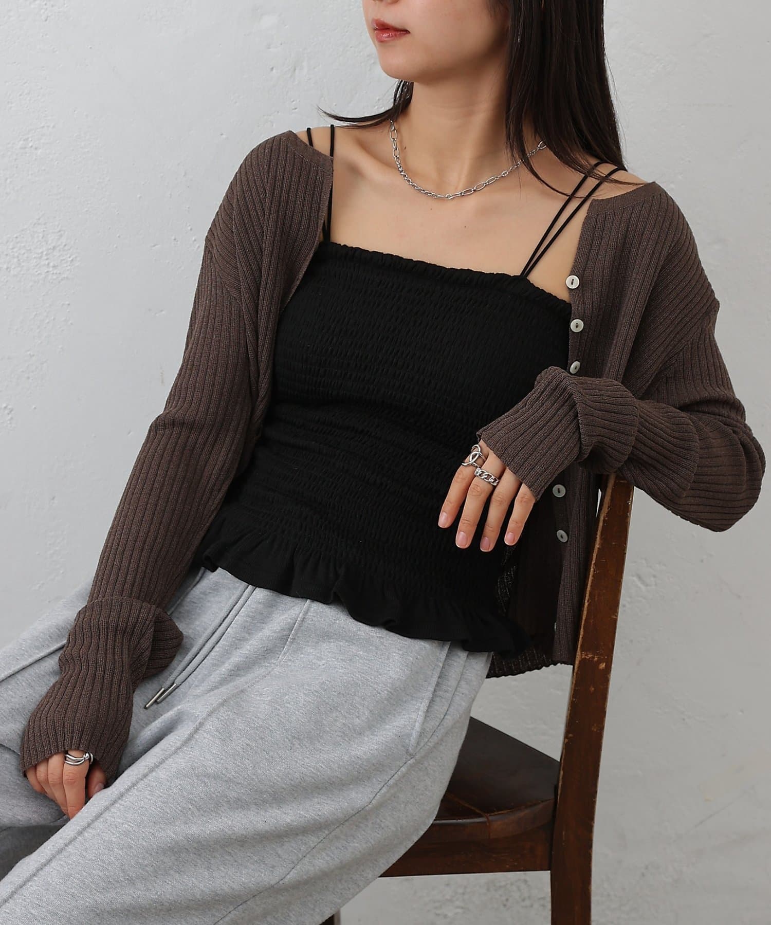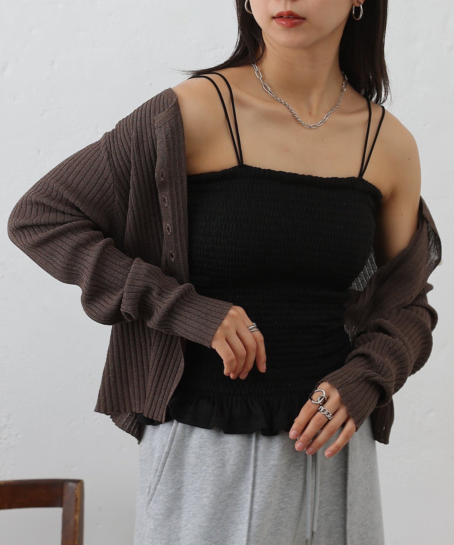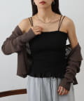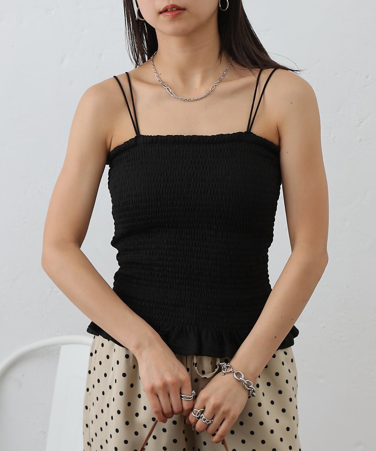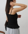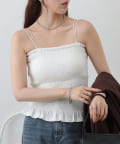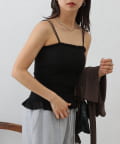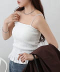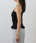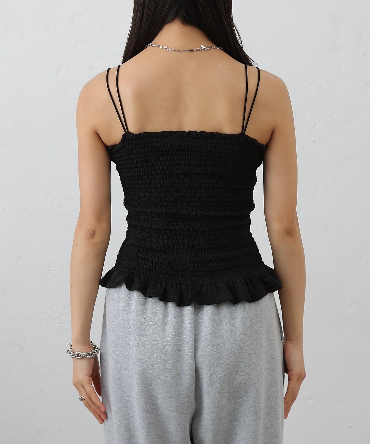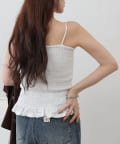 シャーリングデザインと裾のフリルがかわいいカップ付きキャミソールです。