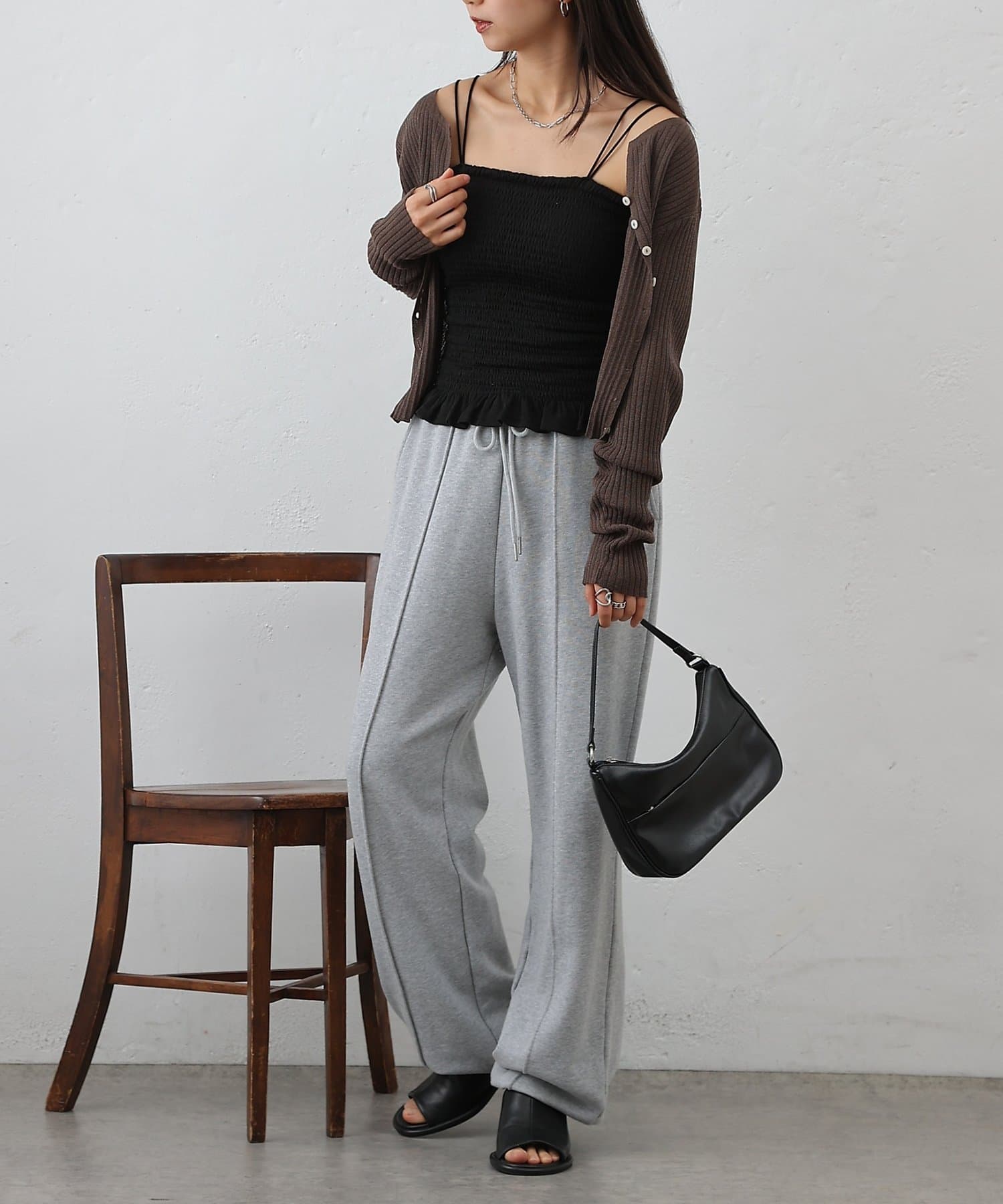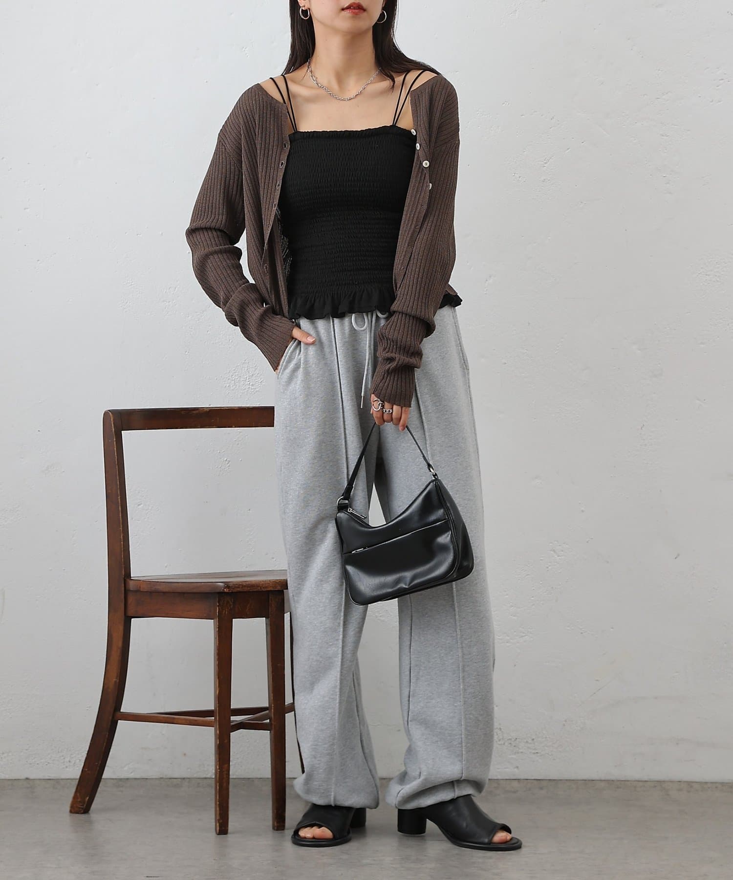【レイヤードスタイルの大活躍のカップ付きシャーリングキャミ】