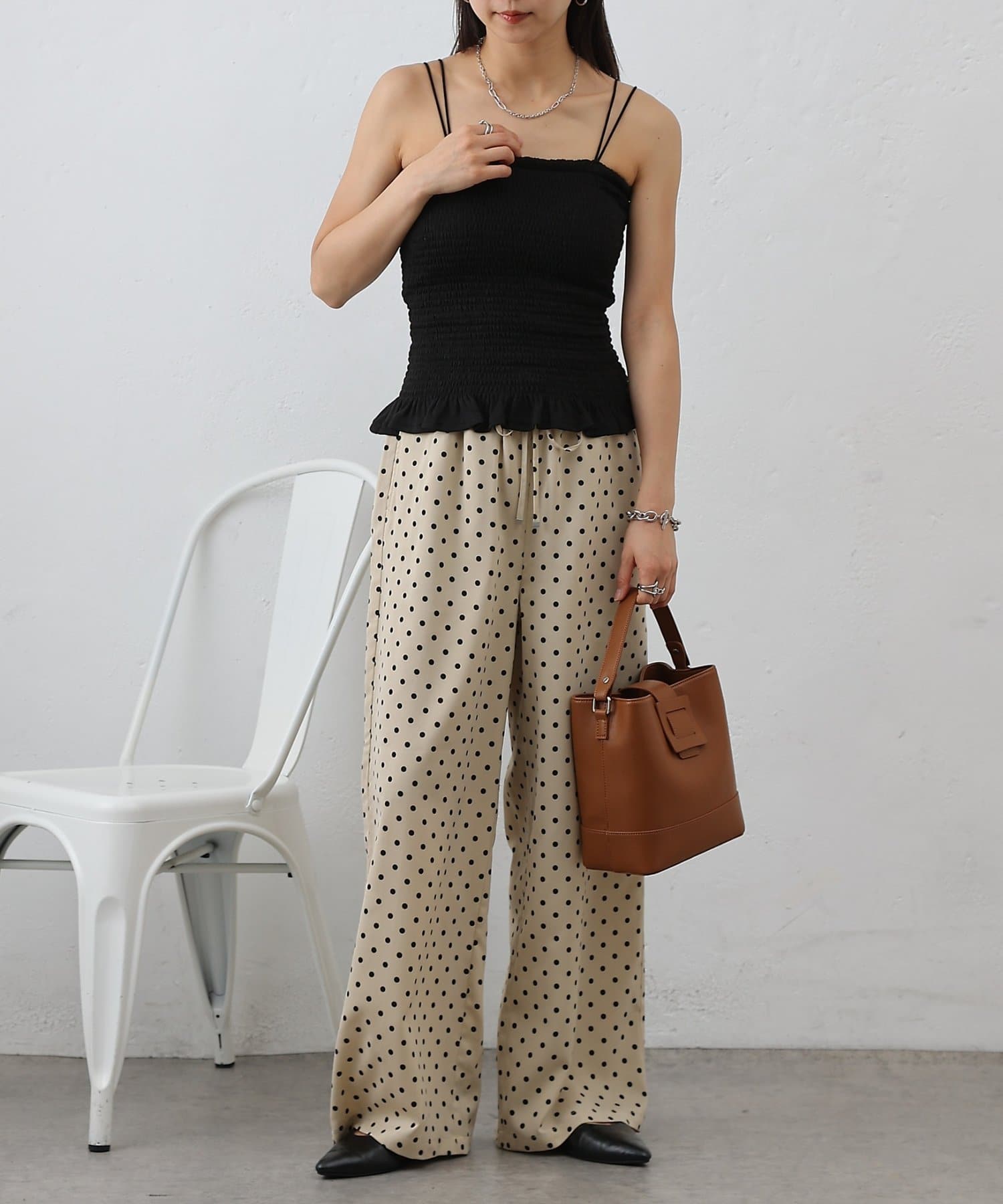 肩紐は華奢なデザインで、レイヤードした際もすっきりとした印象になります。