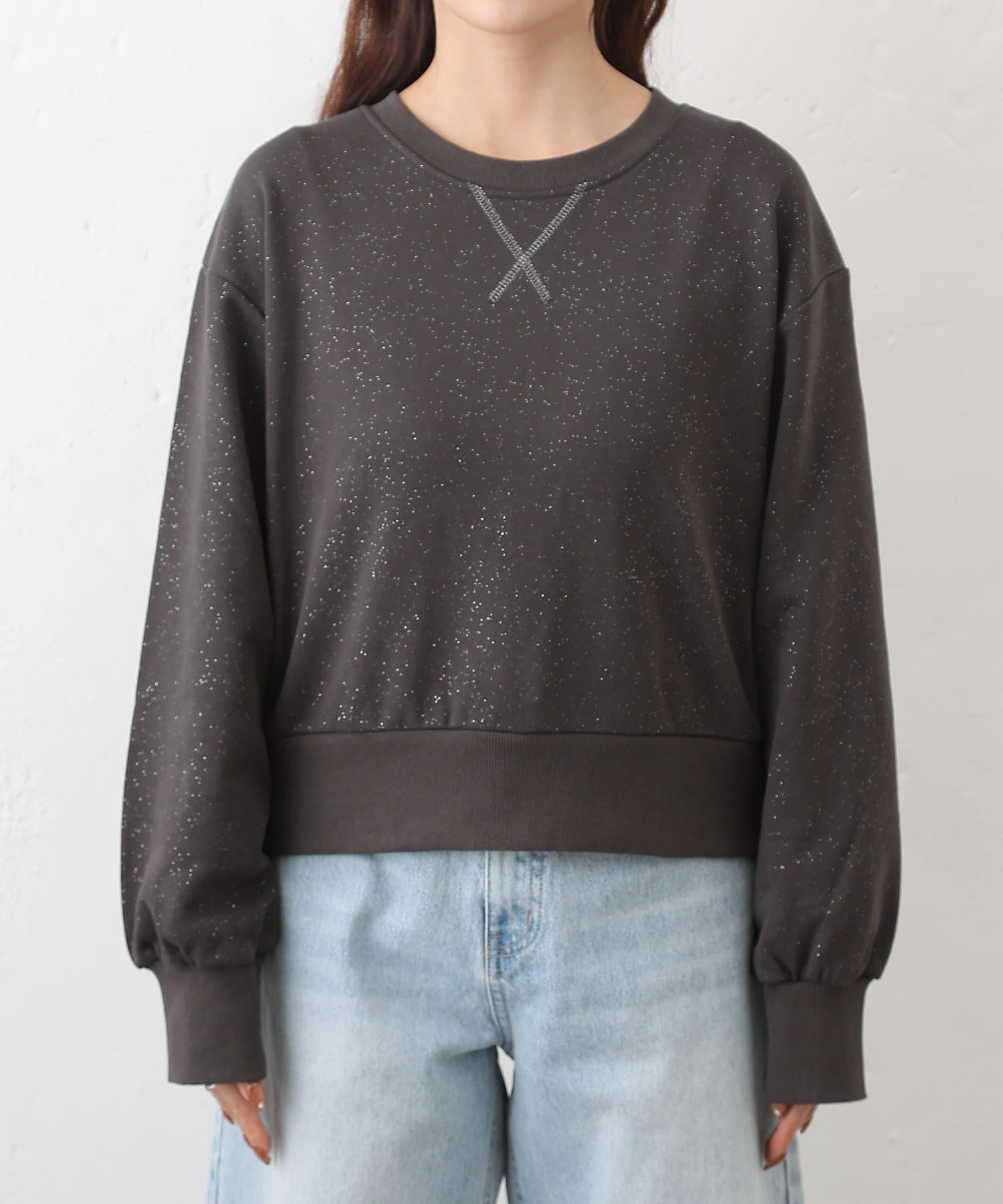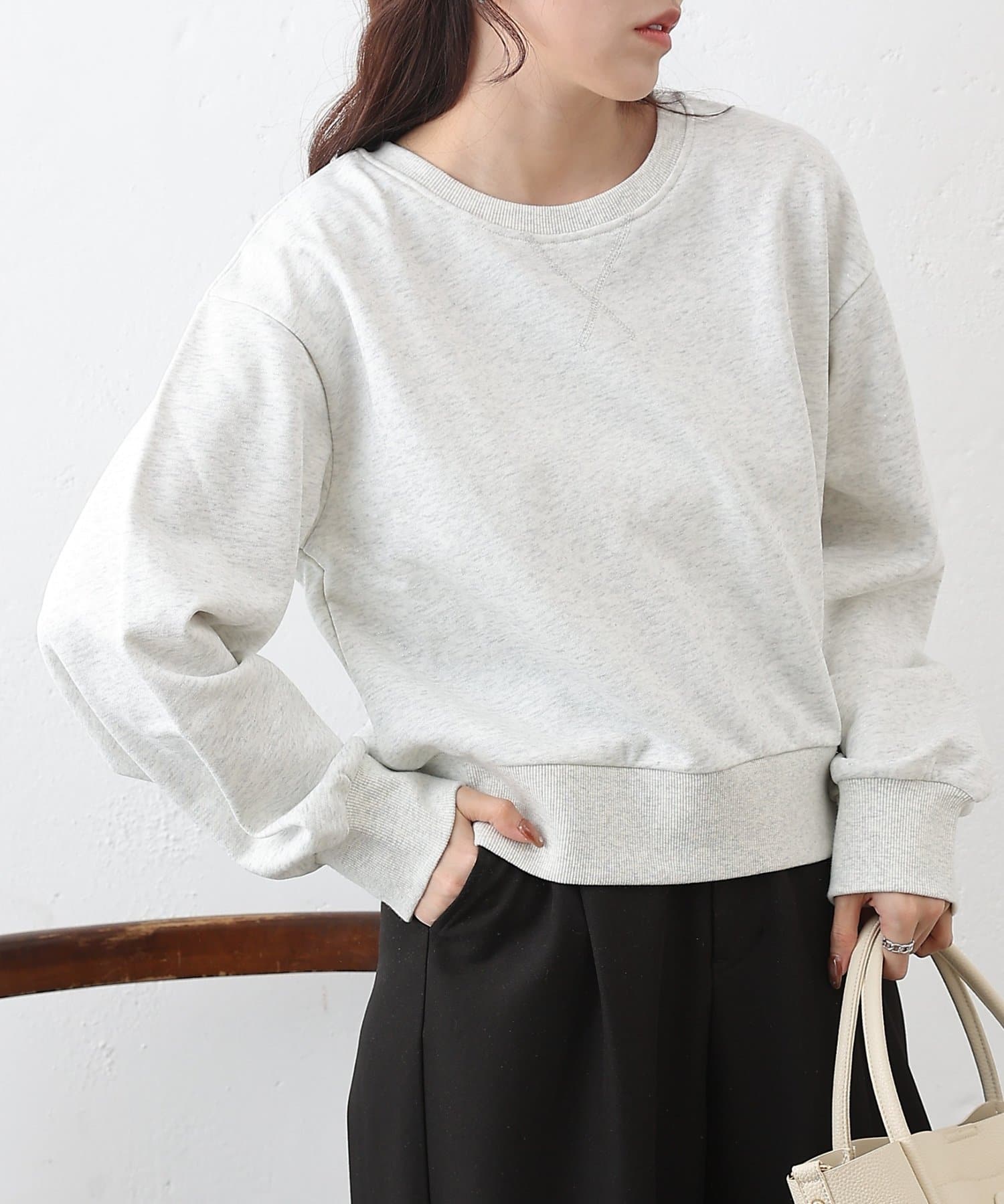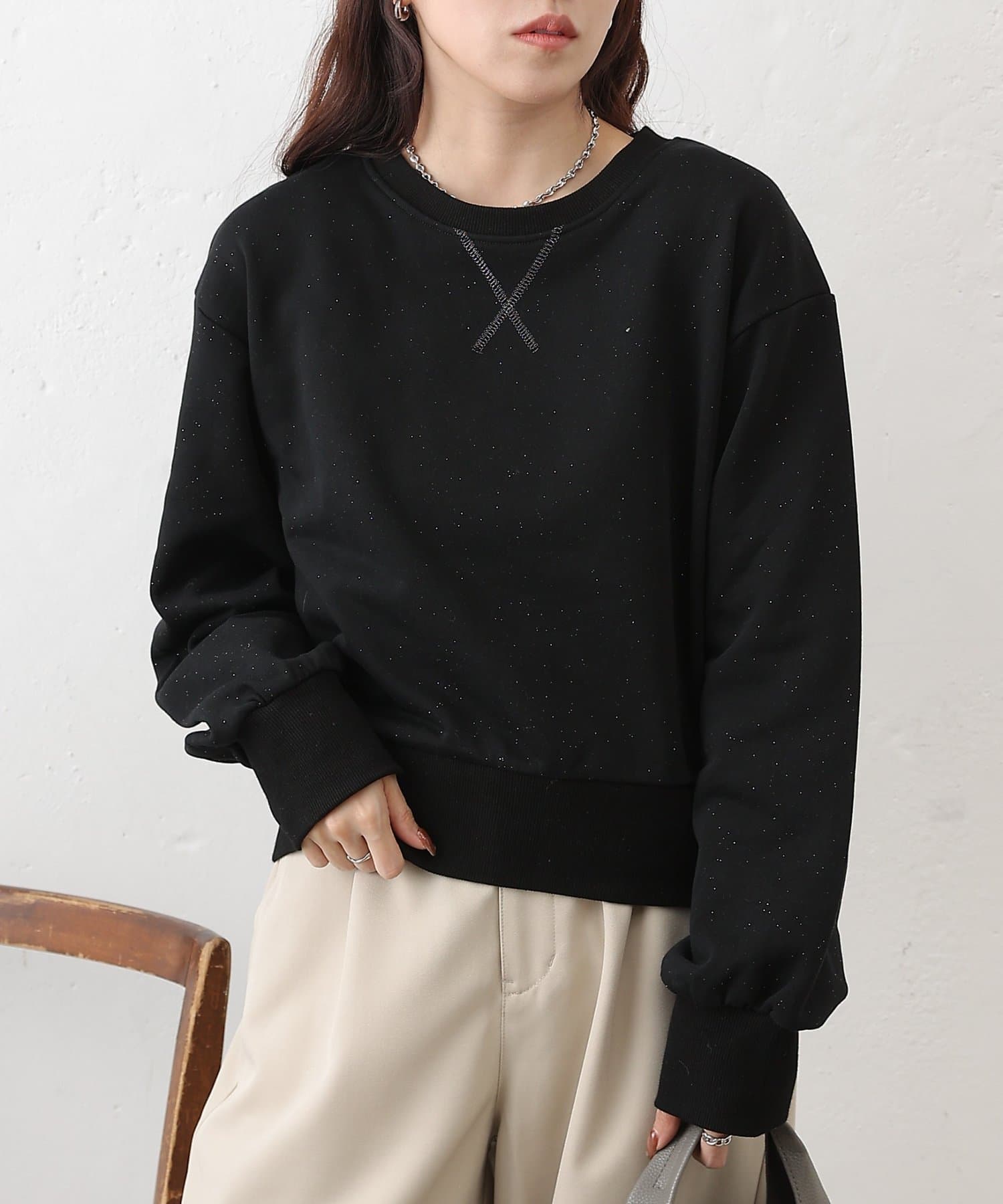ラメ裏毛クルーコンパクトプルオーバー