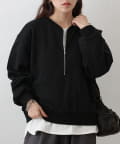 さりげないラメ感が上品に映えるラメ裏毛素材を使用したハーフジッププルオーバーです。