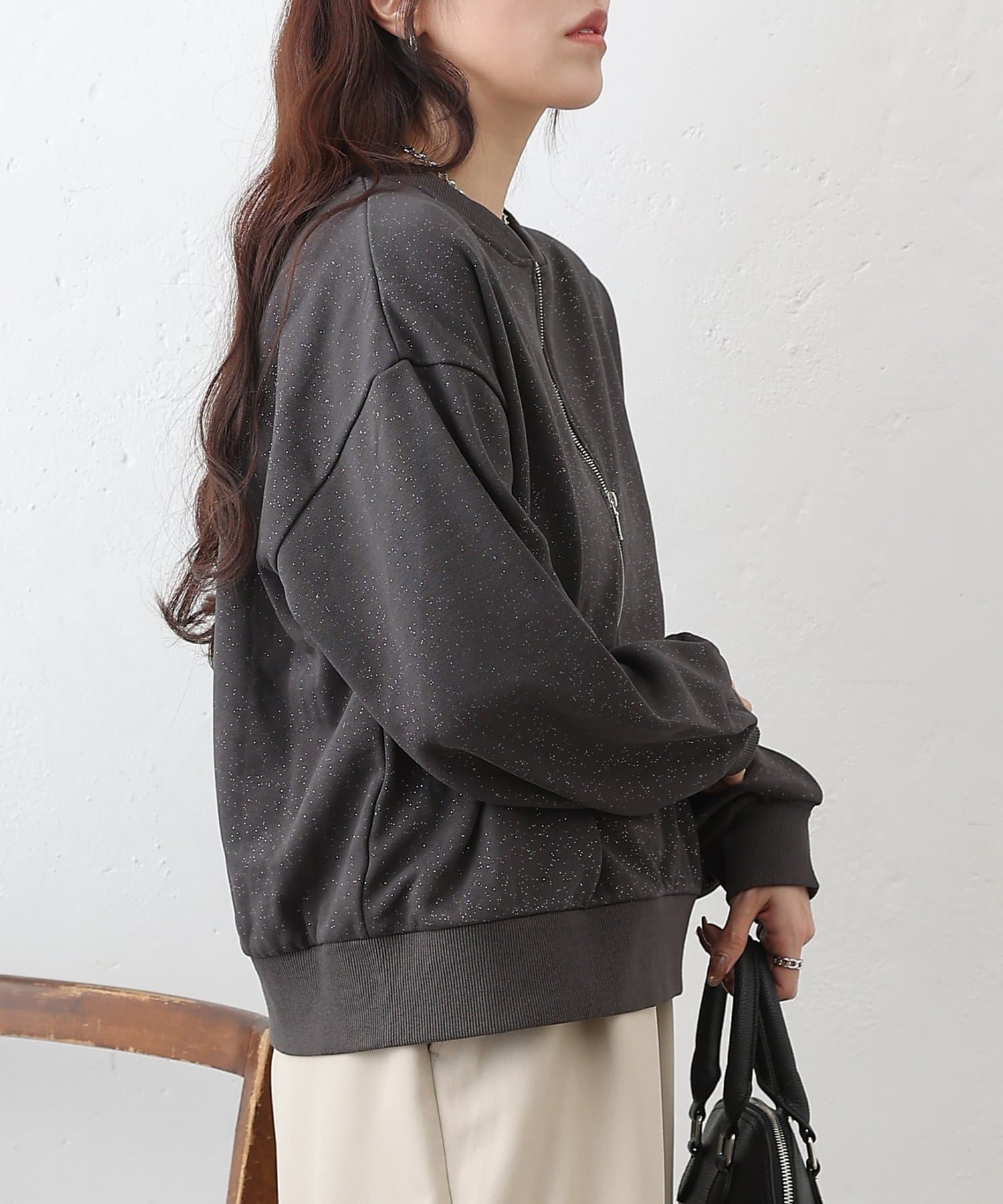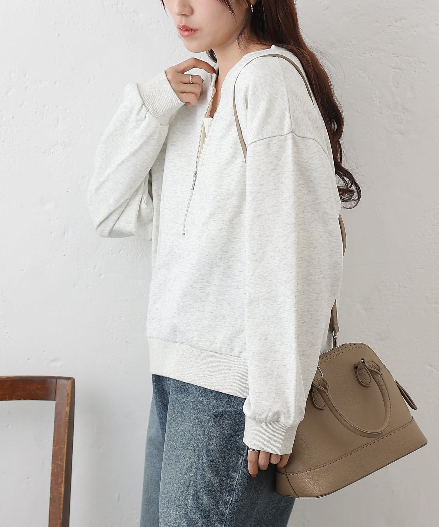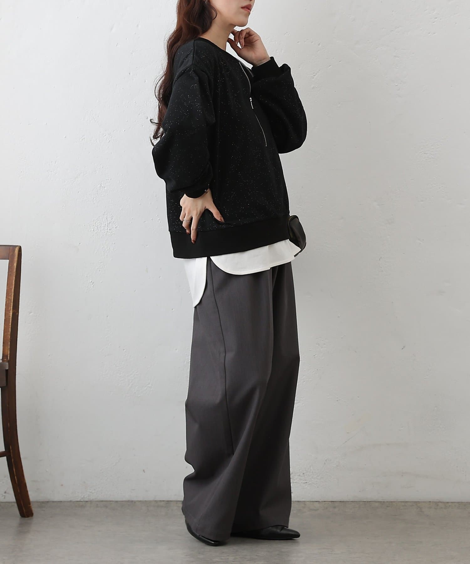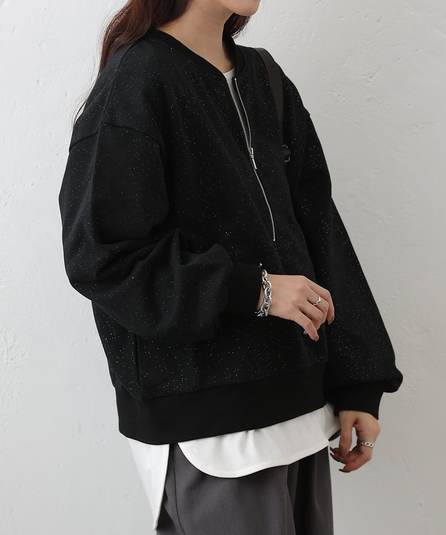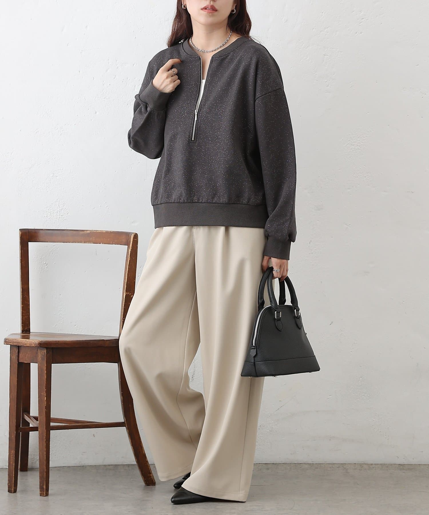 カジュアルな印象のハーフジップデザインですが、繊細なラメ感をプラスすることで大人っぽく着こなせるハーフジッププルオーバーになっています。