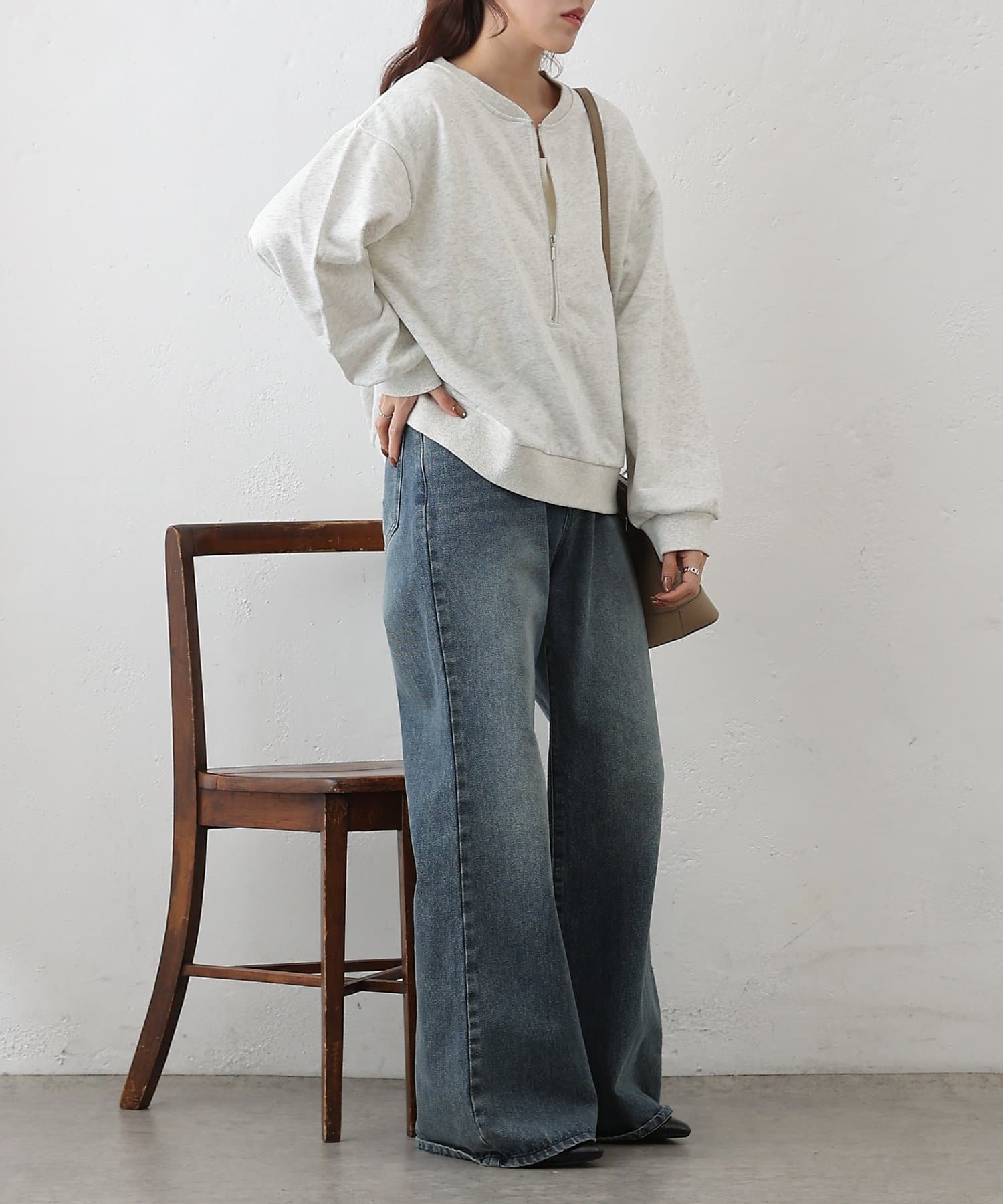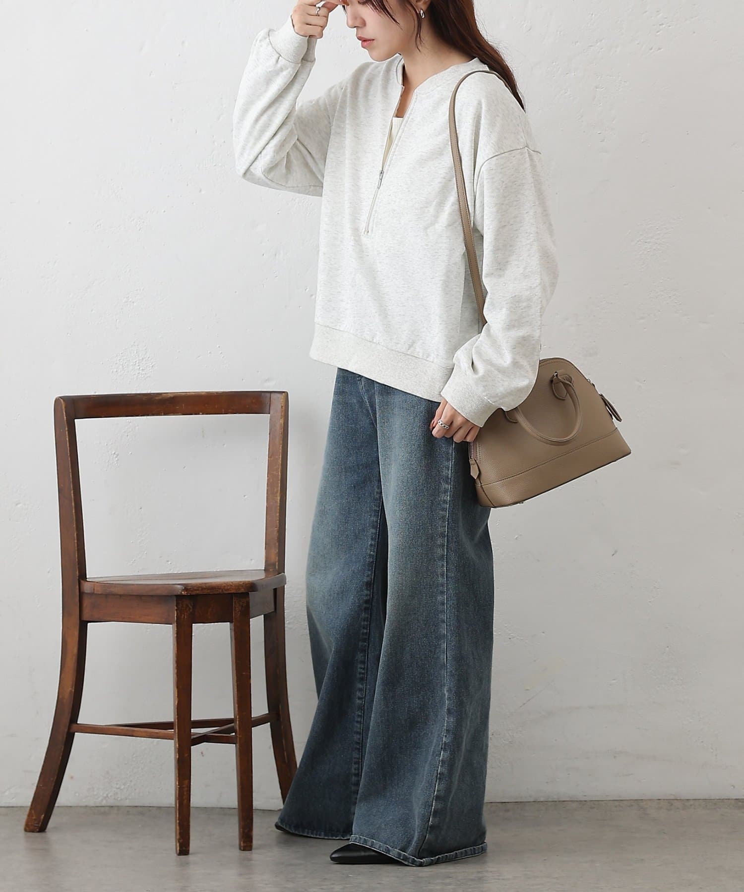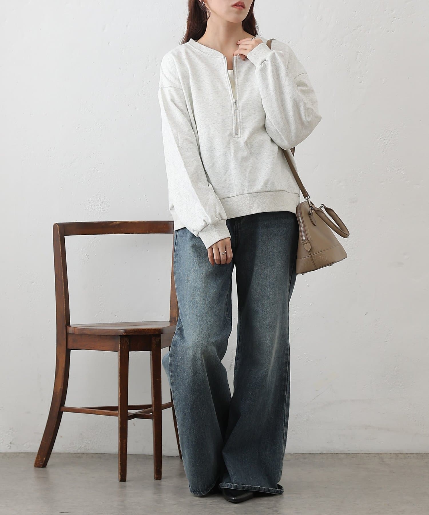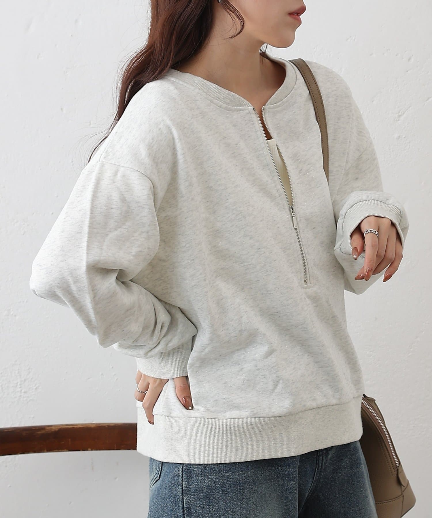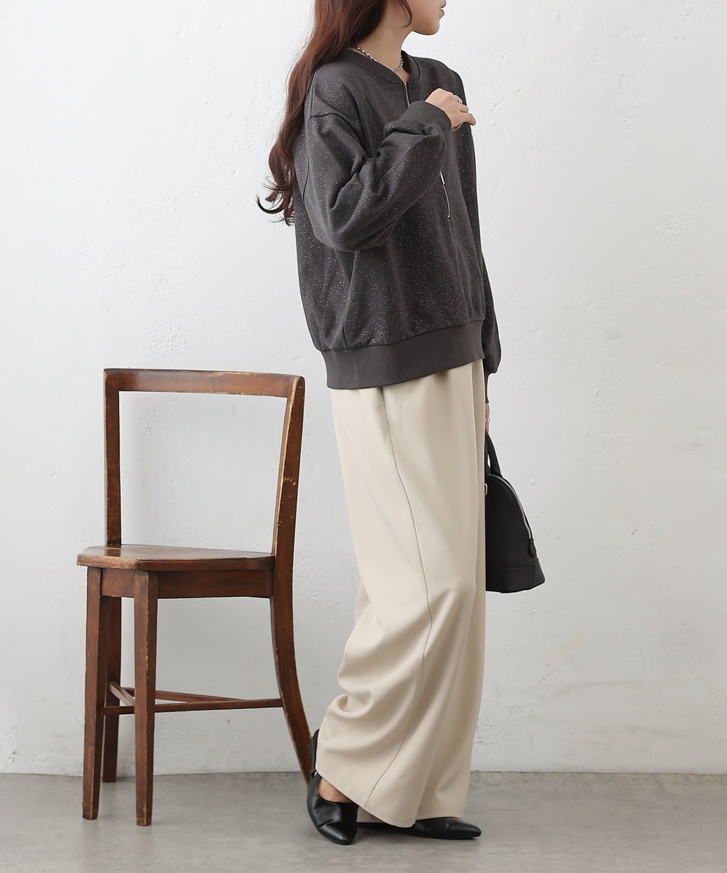 カジュアルな印象のハーフジップデザインですが、繊細なラメ感をプラスすることで大人っぽく着こなせるハーフジッププルオーバーになっています。