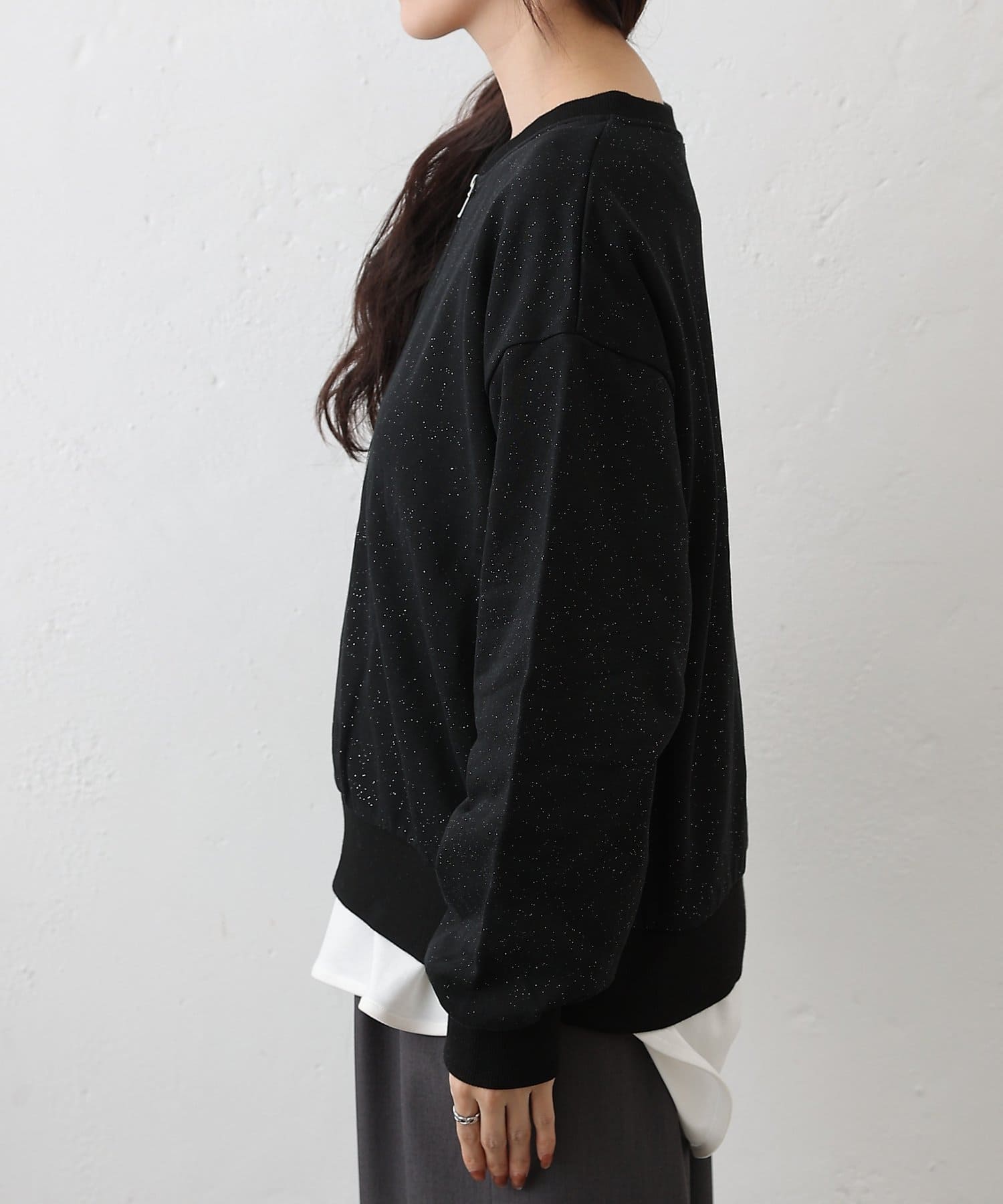 ・CWA1061106A0006 ラメ裏毛クルーコンパクトプルオーバー