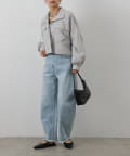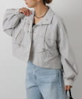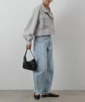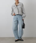 着丈が短くすっきりとした印象で、パンツでもスカートでも合わせやすいデザインに◎