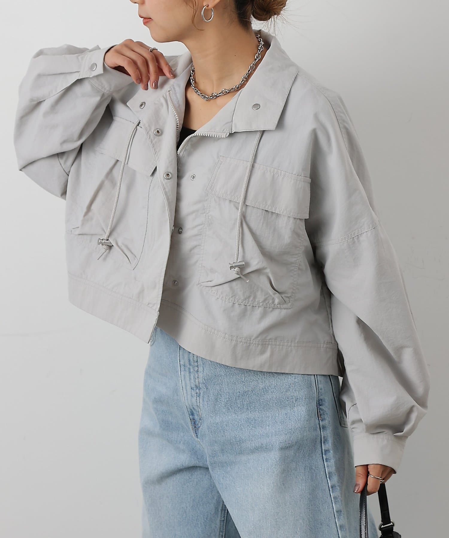 フロントにある大きめのポケットがポイントのブルゾンです。
