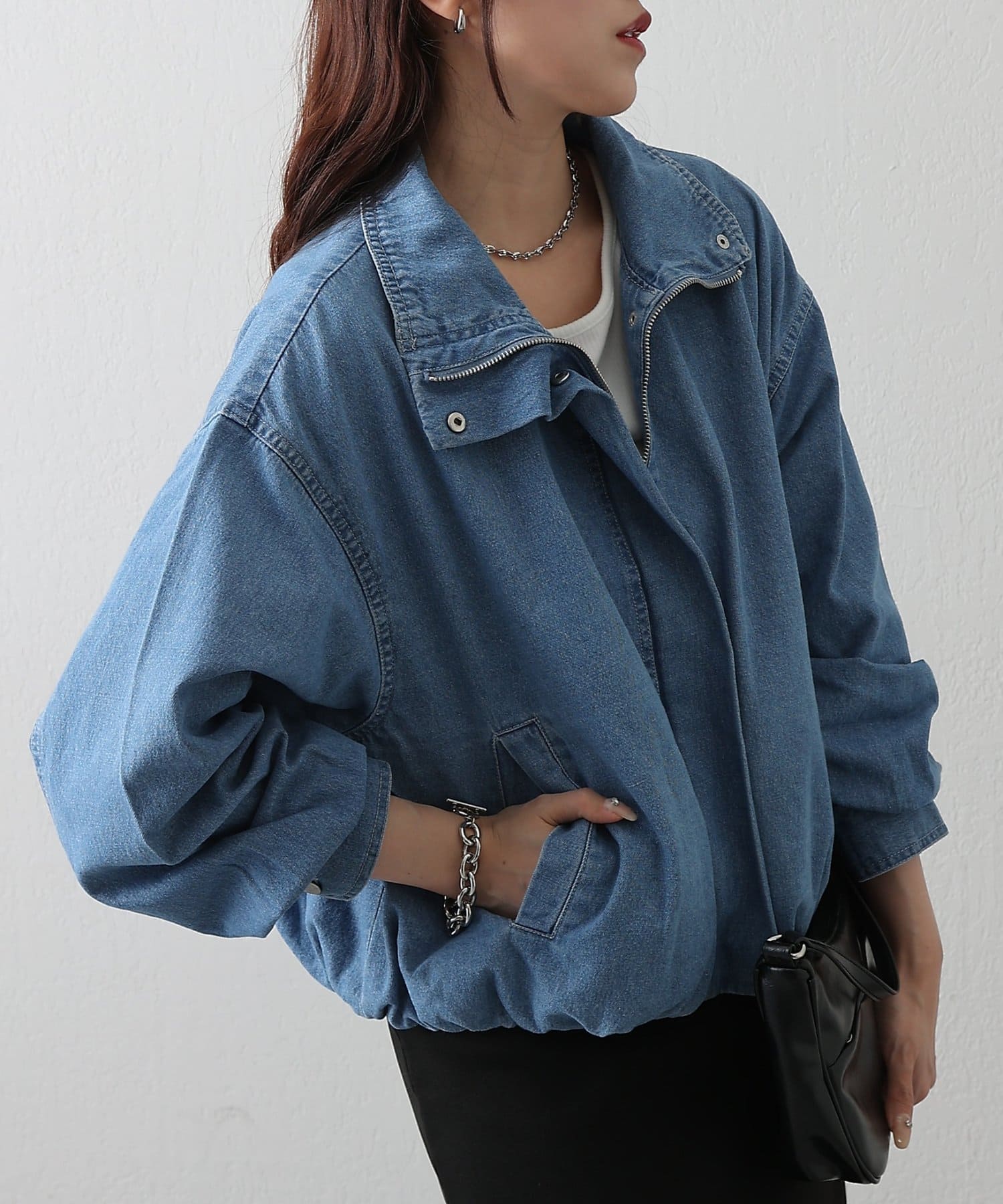 【軽やかデニムスタンドブルゾン】