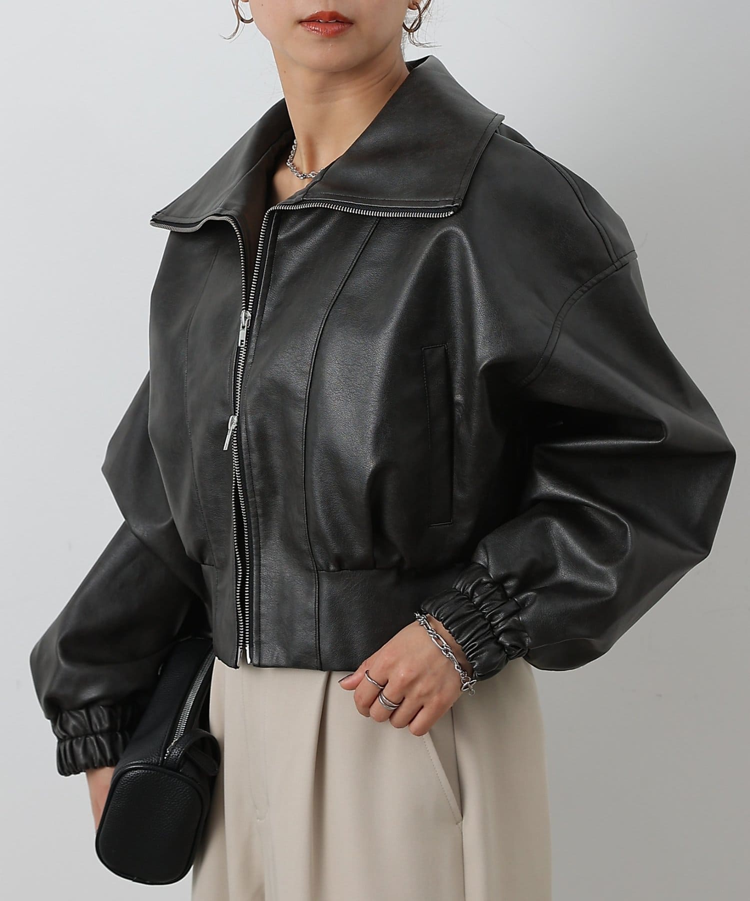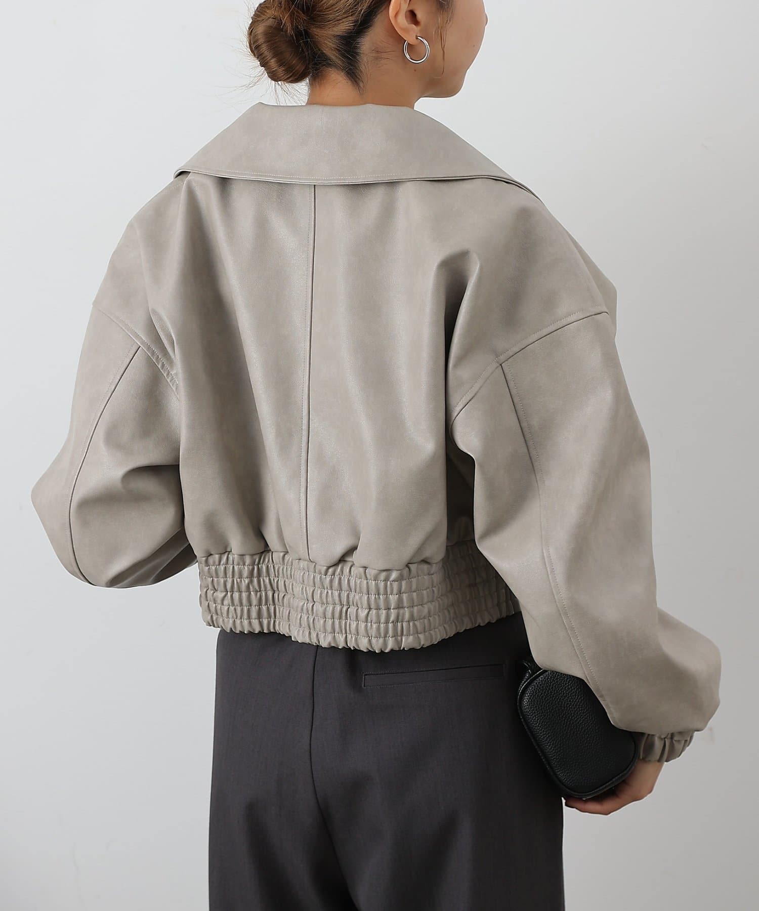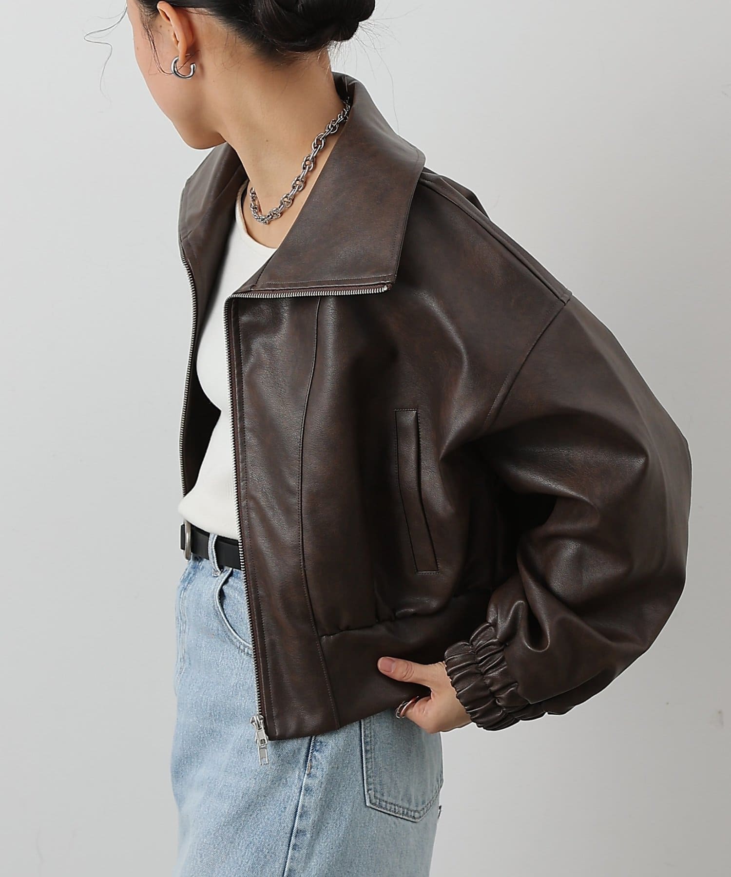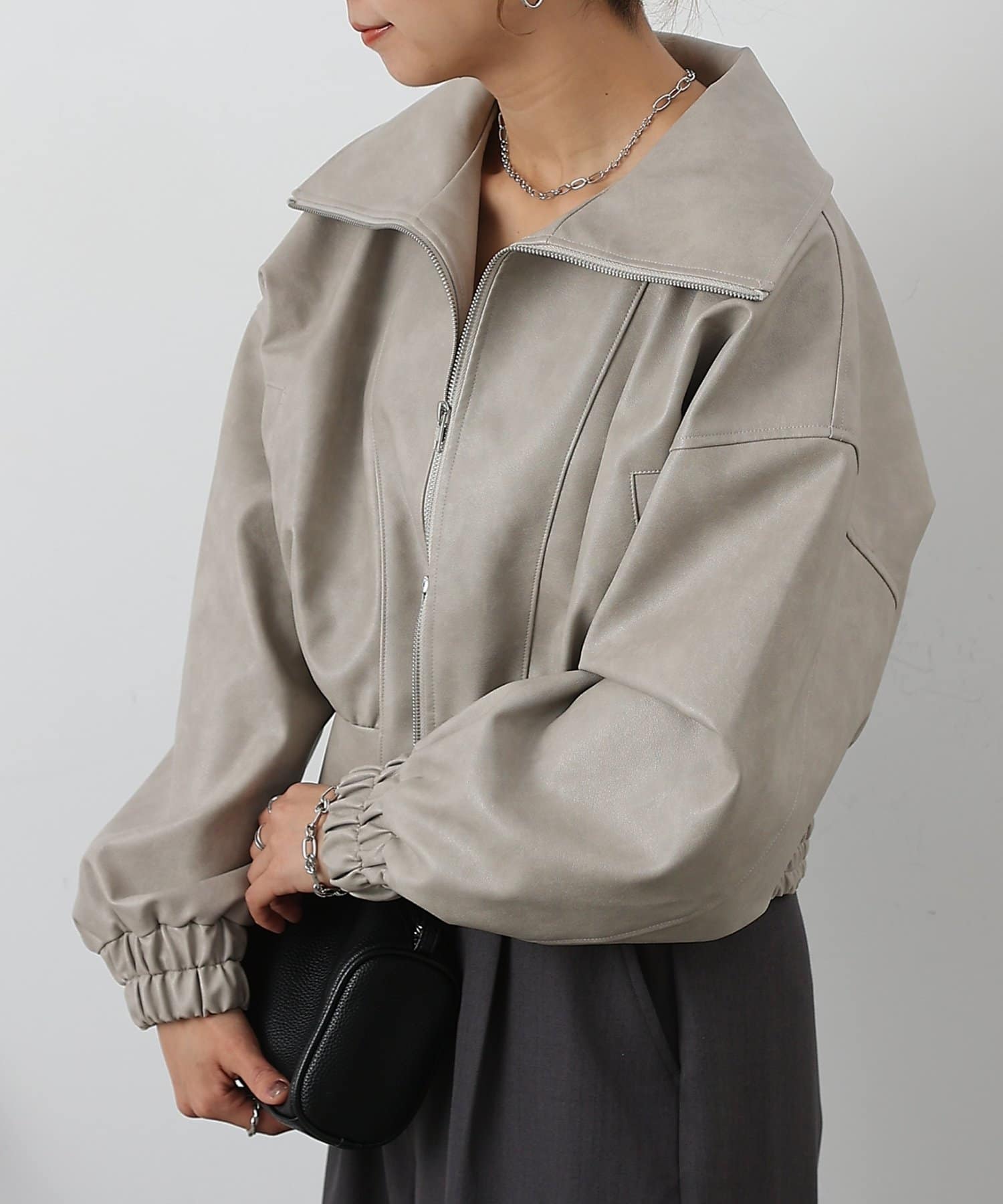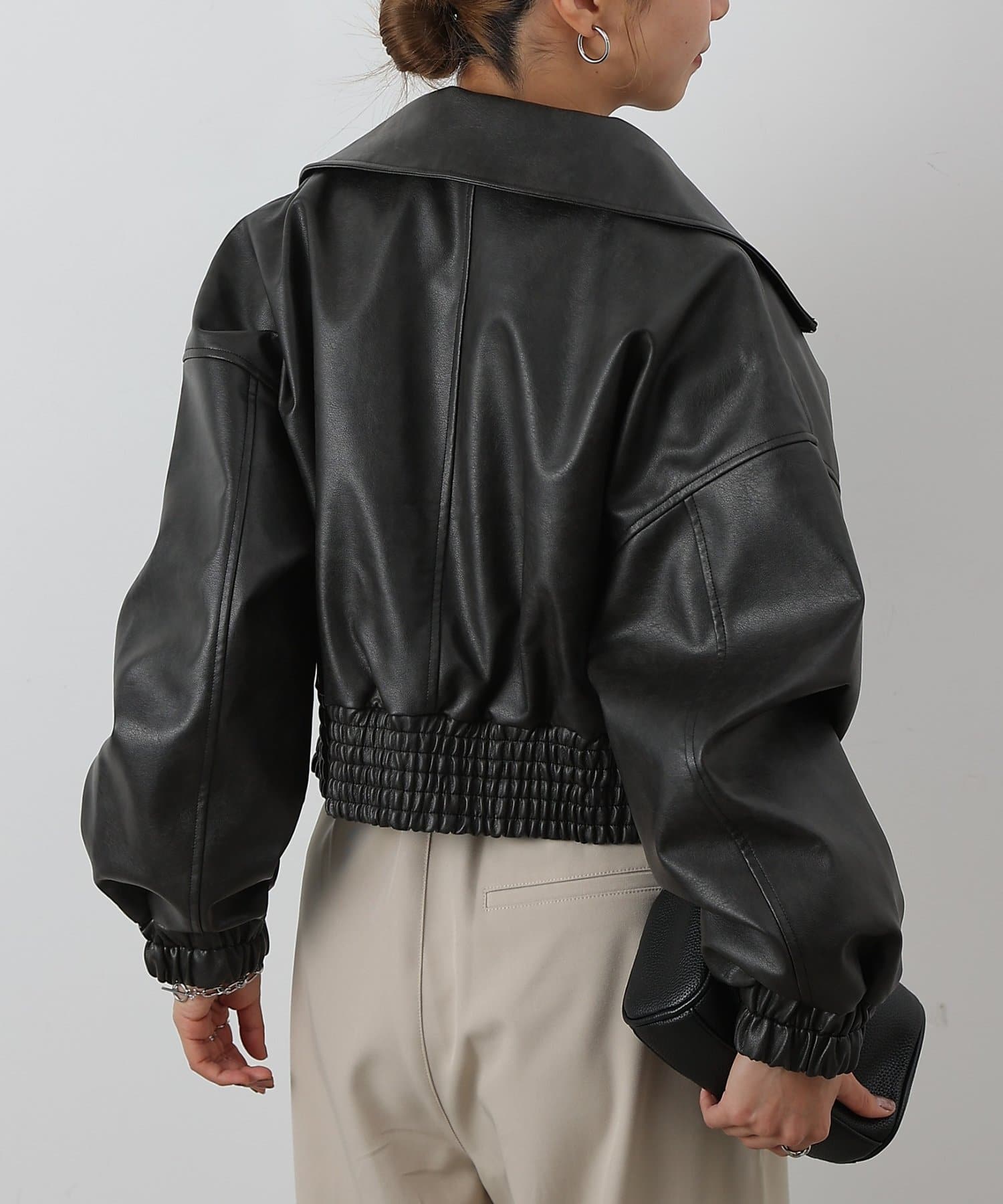 ・軽やかなフェイクレザーでさっと羽織るだけでも様になる一着