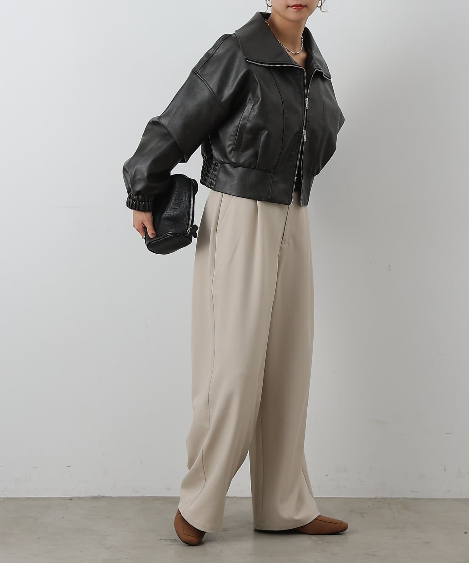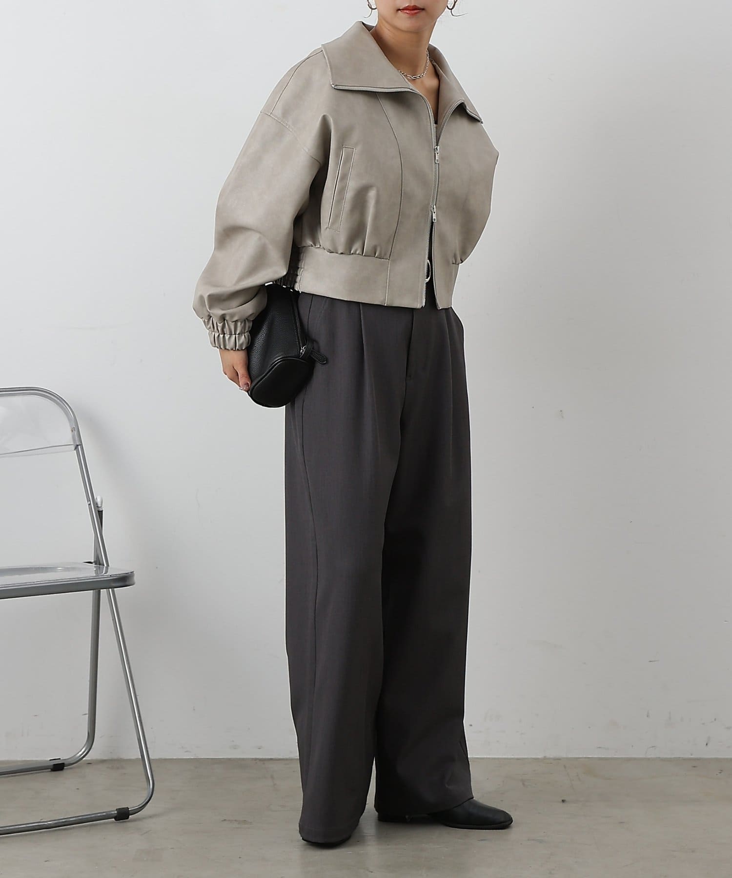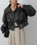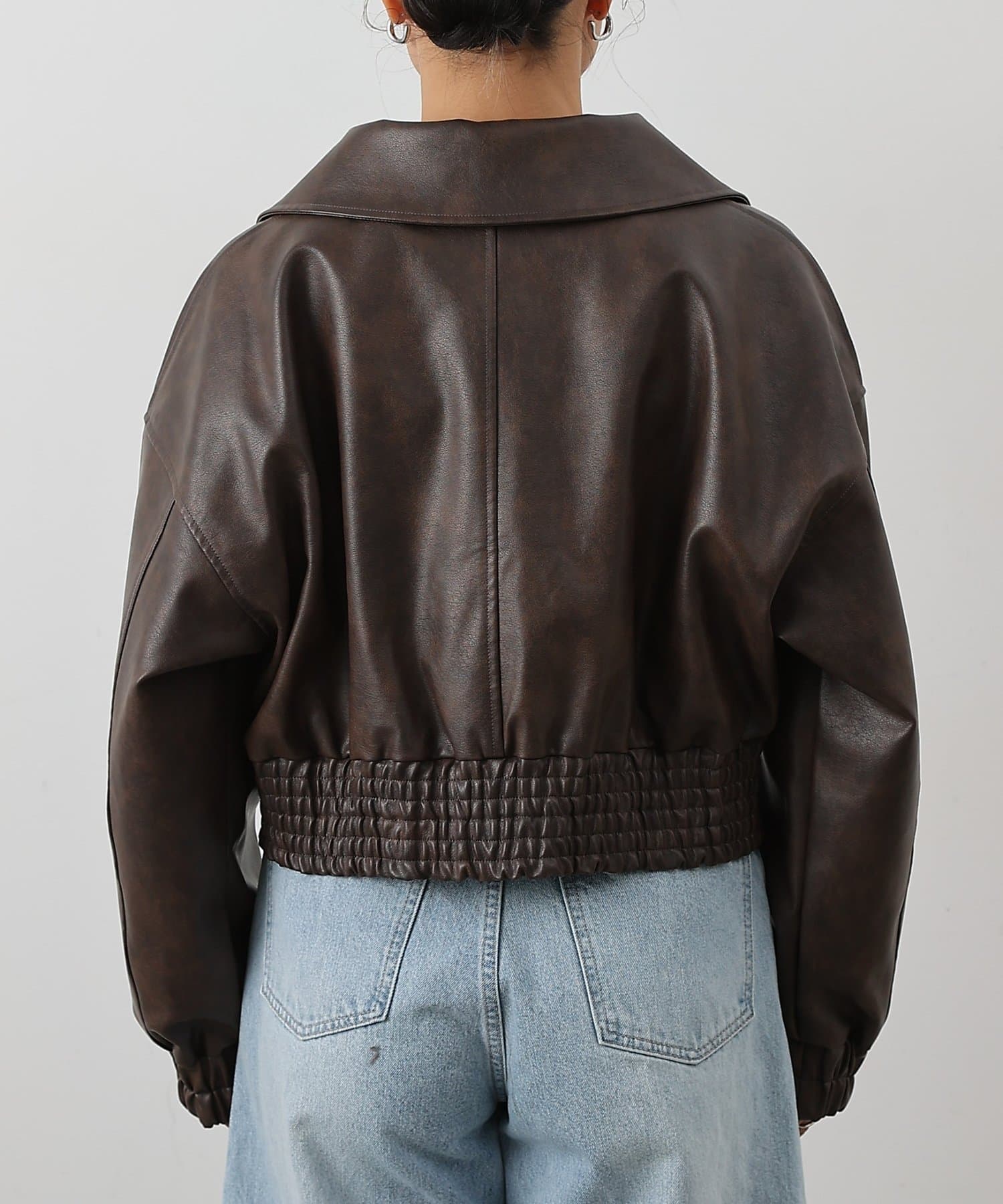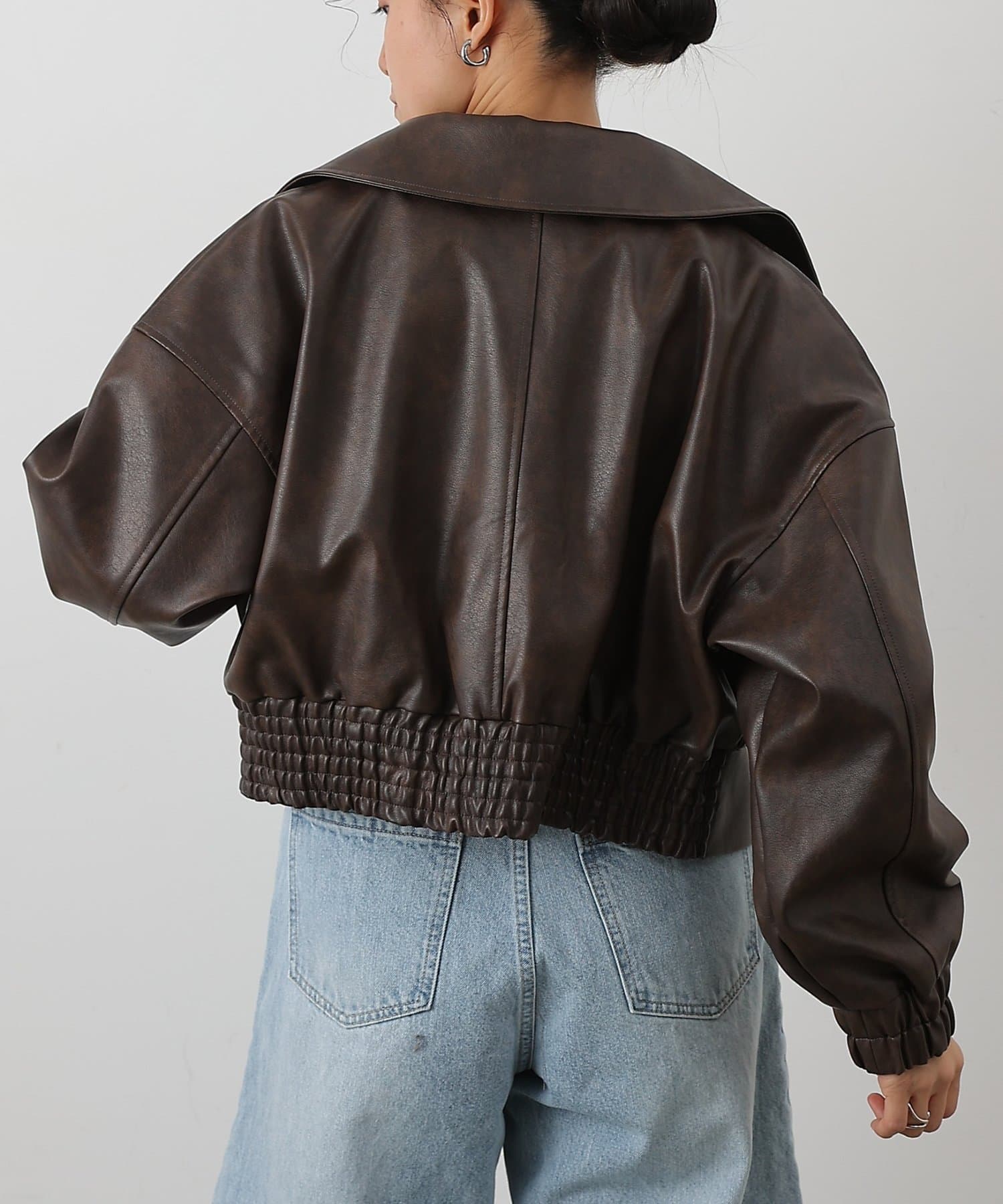 ・軽やかなフェイクレザーでさっと羽織るだけでも様になる一着