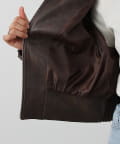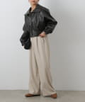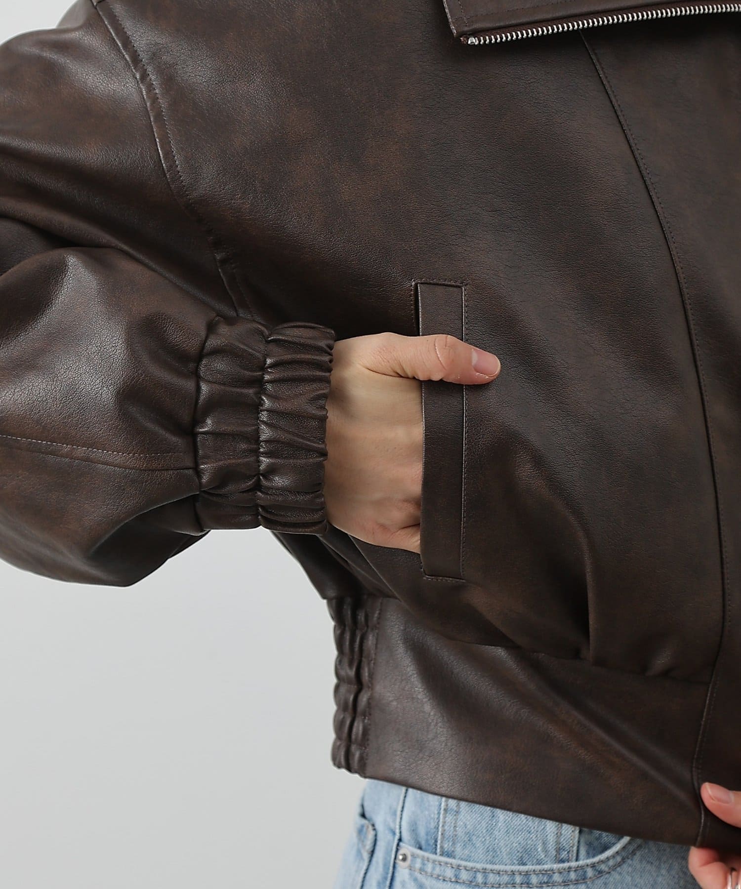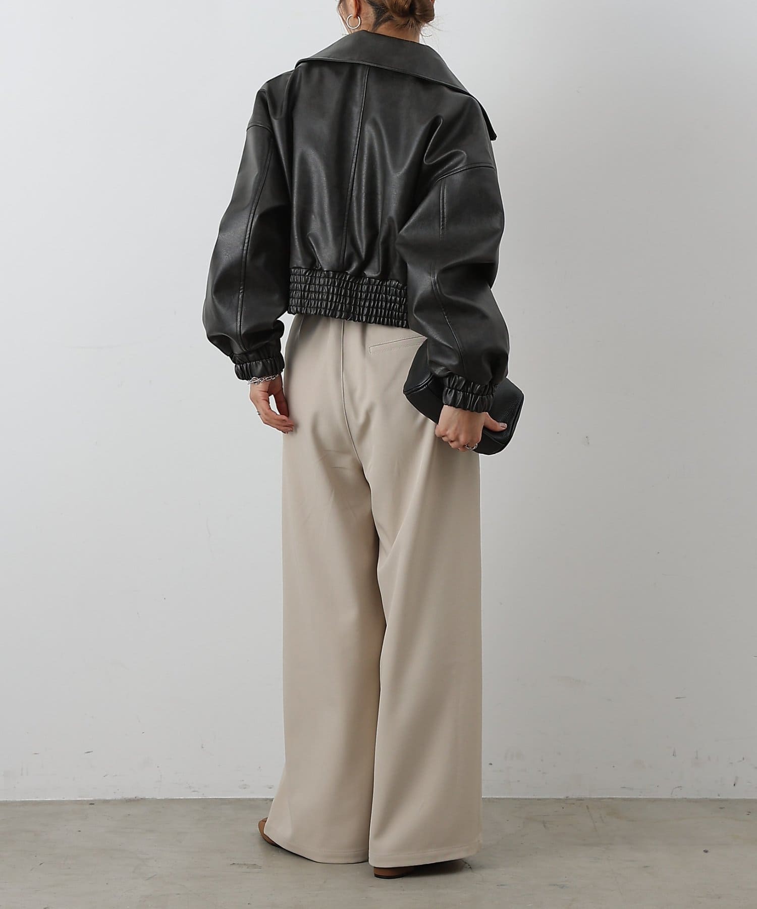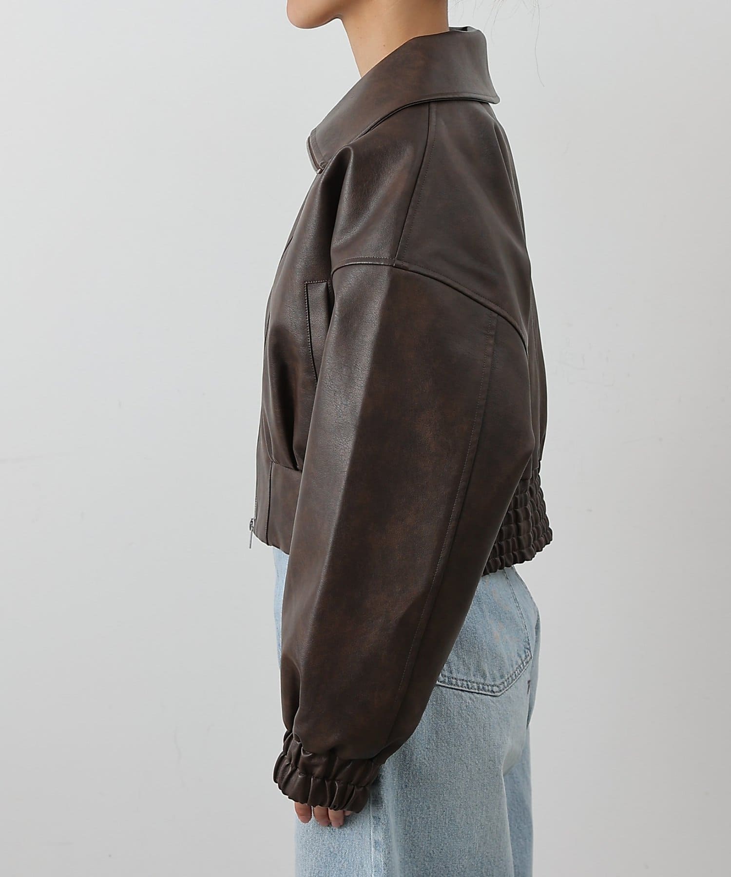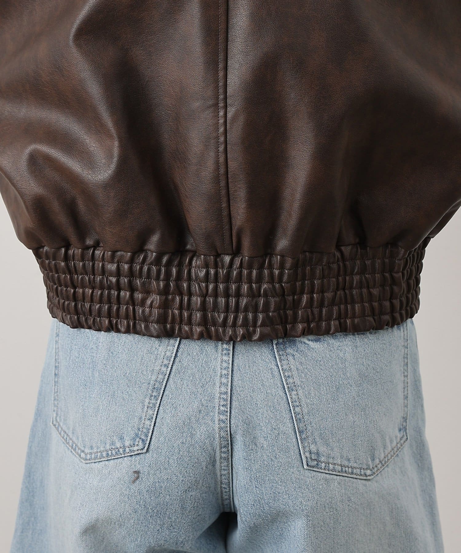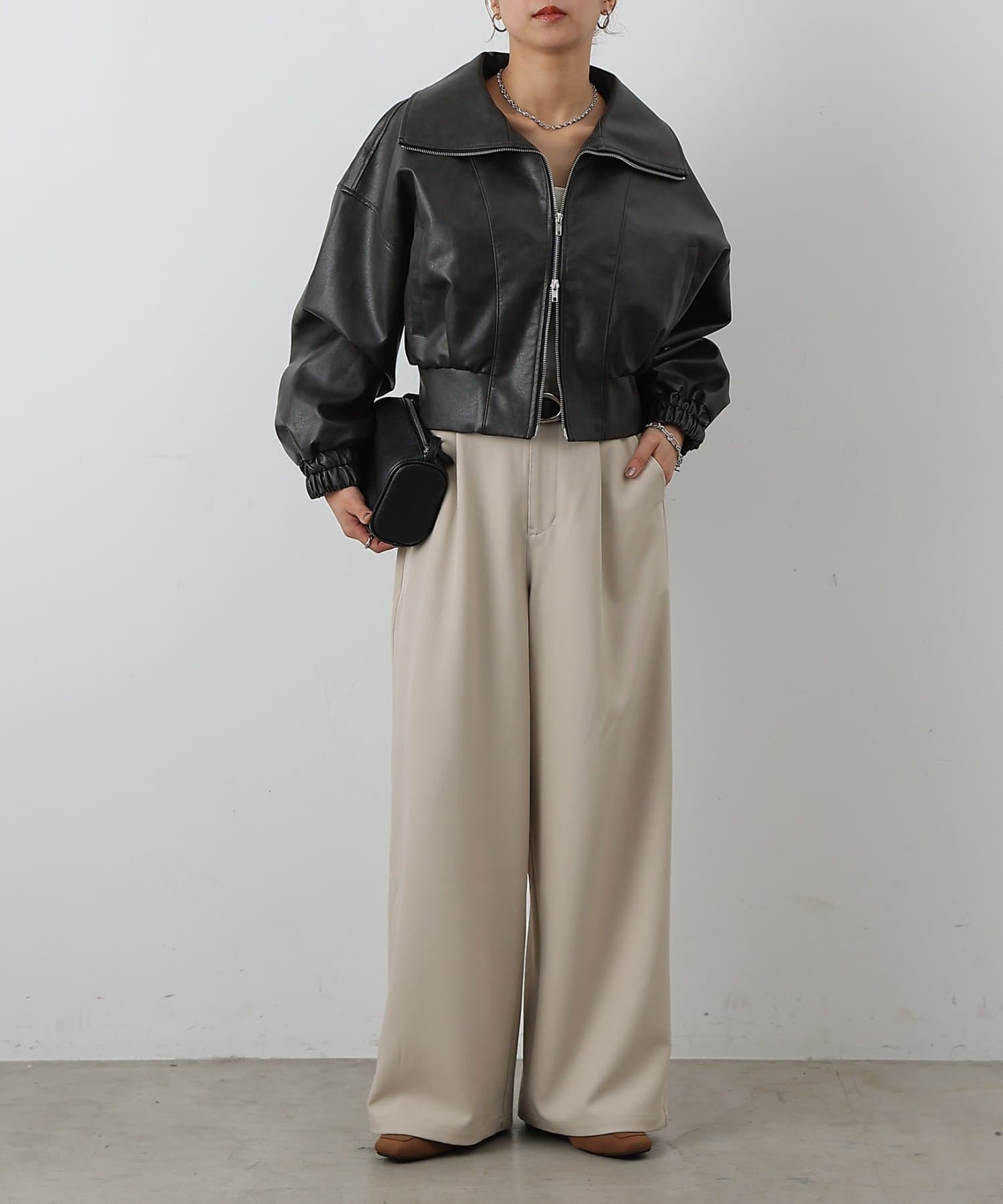 ・軽やかなフェイクレザーでさっと羽織るだけでも様になる一着