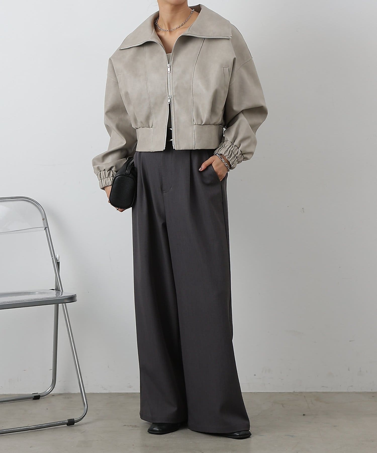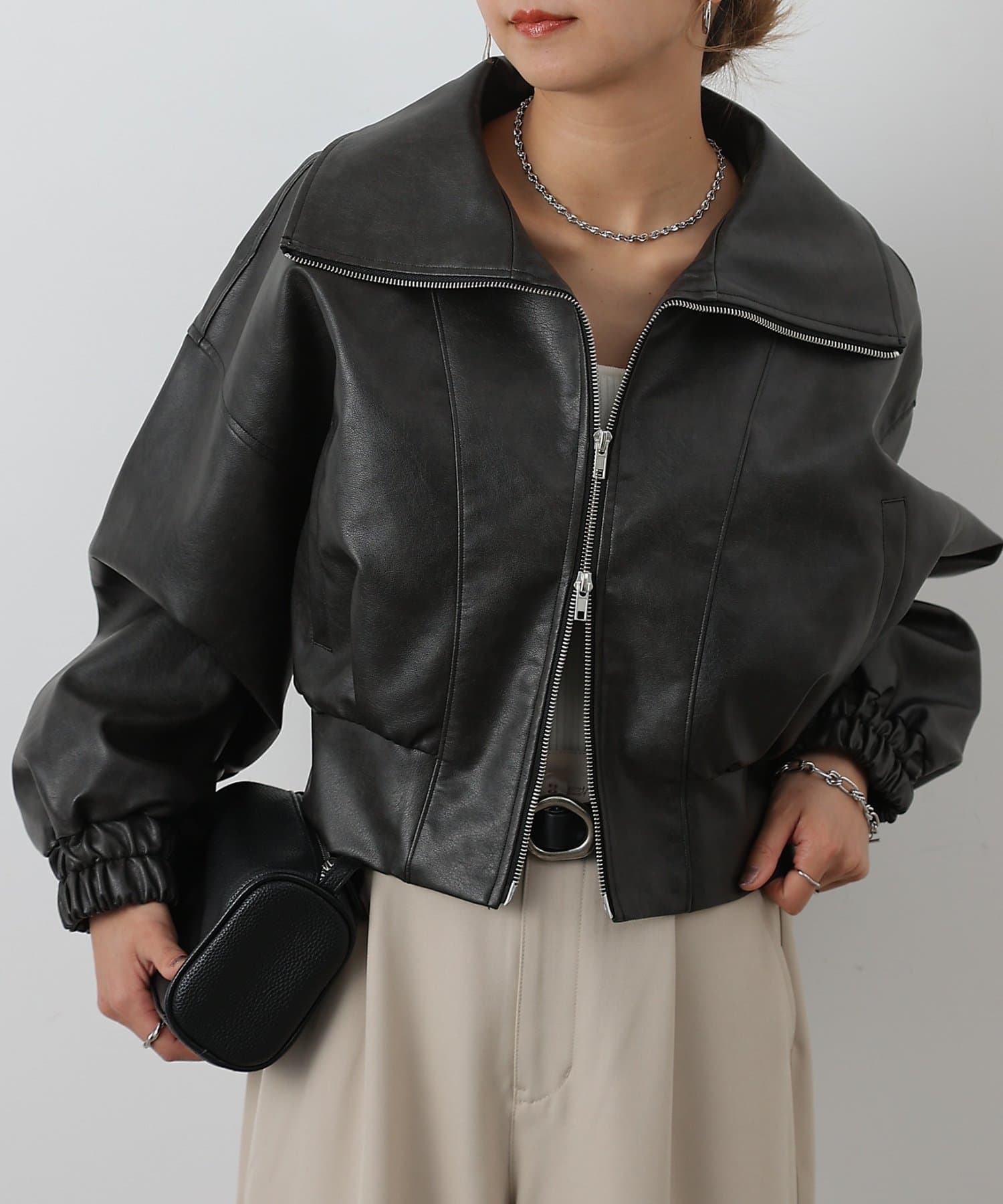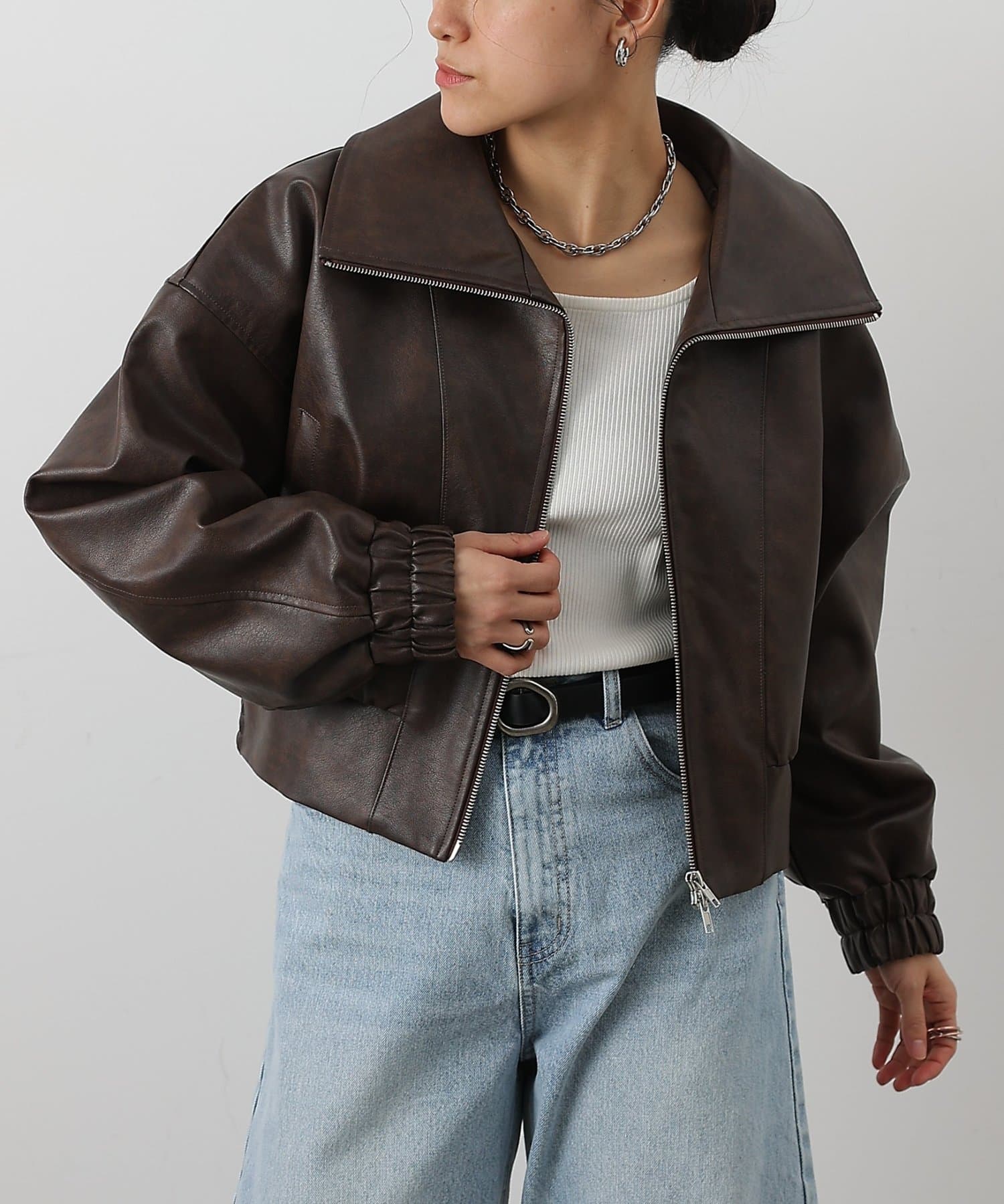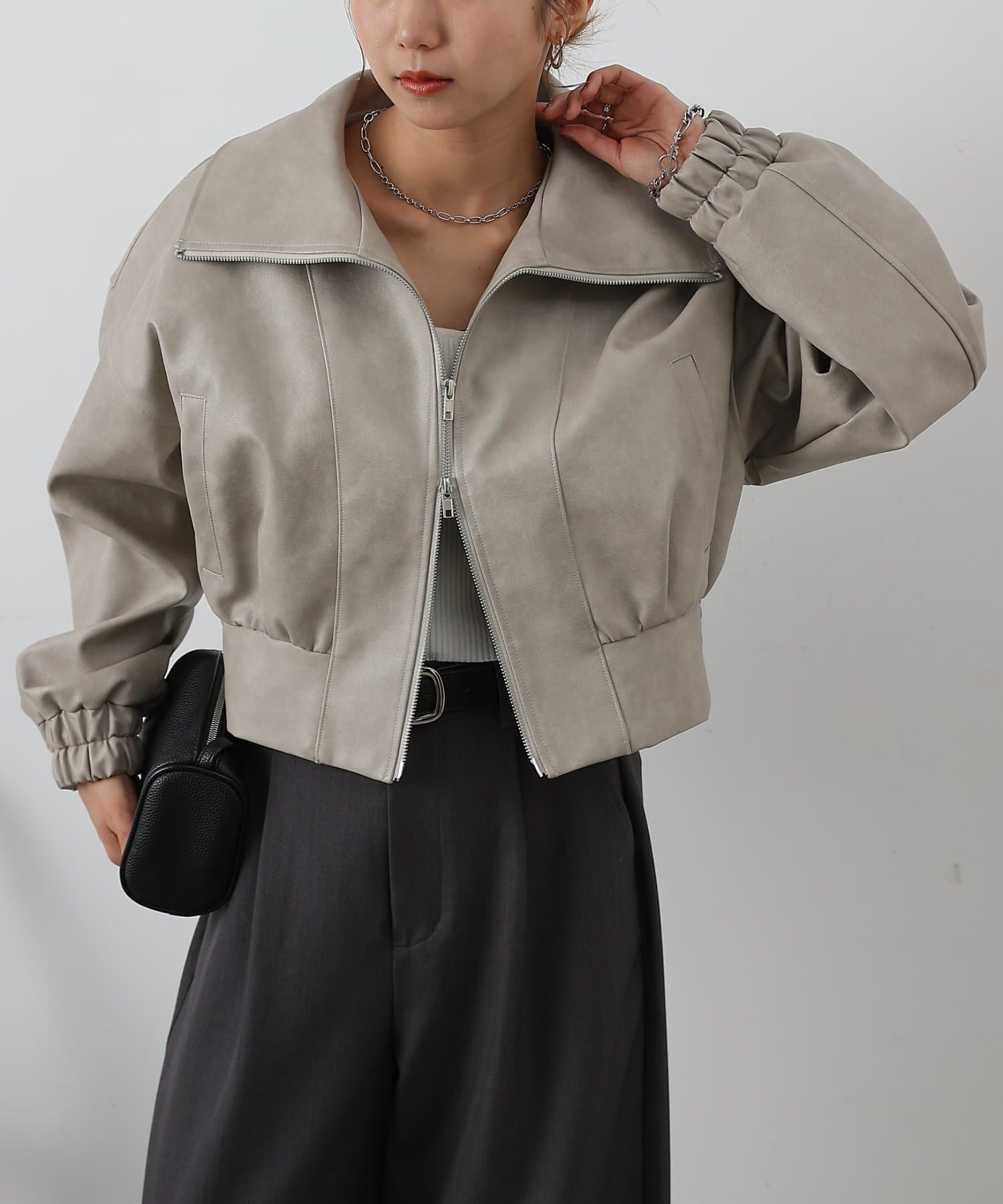 • COLONY 2139(コロニー トゥーワンスリーナイン) フェイクレザーWジップショートブルゾン