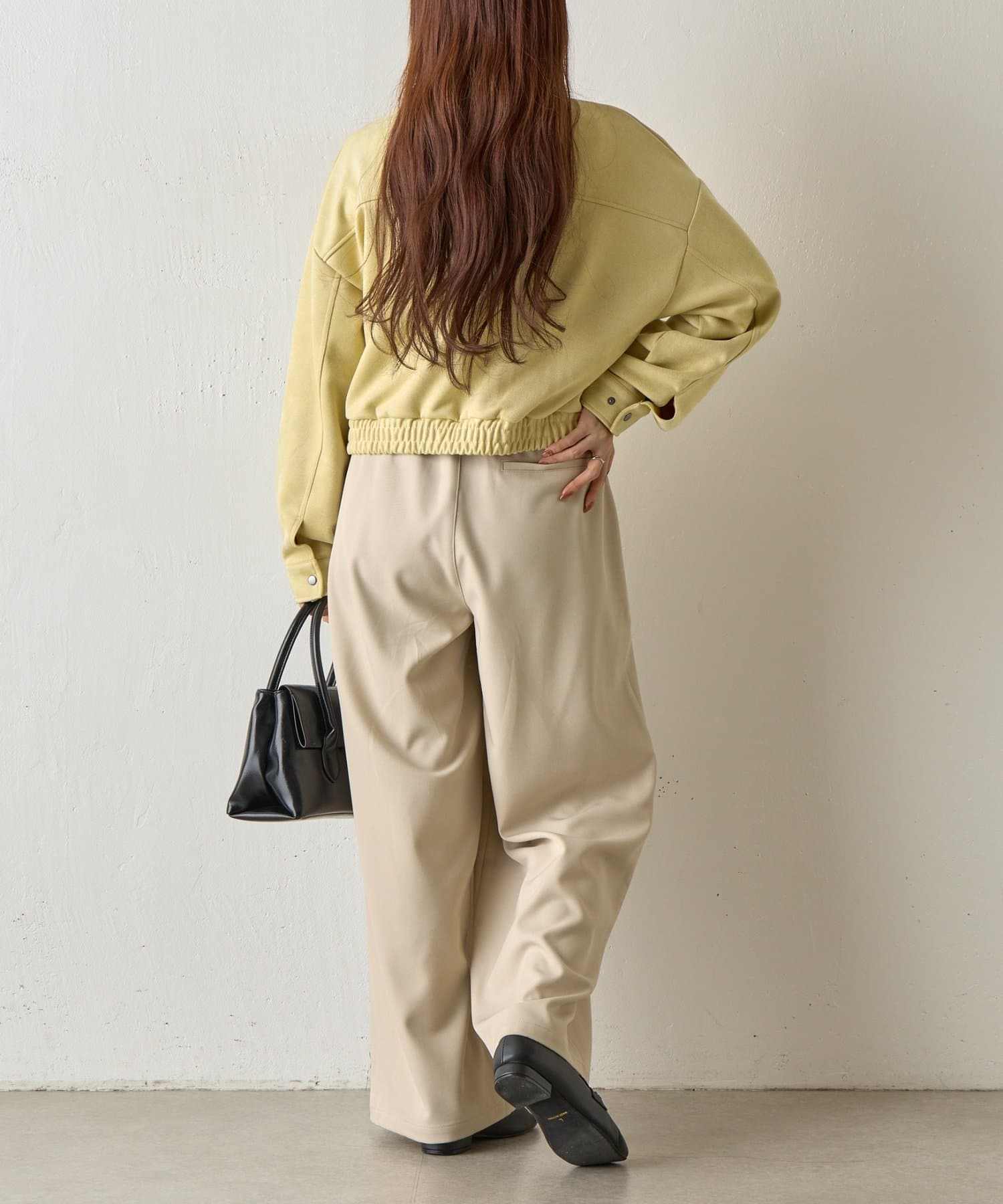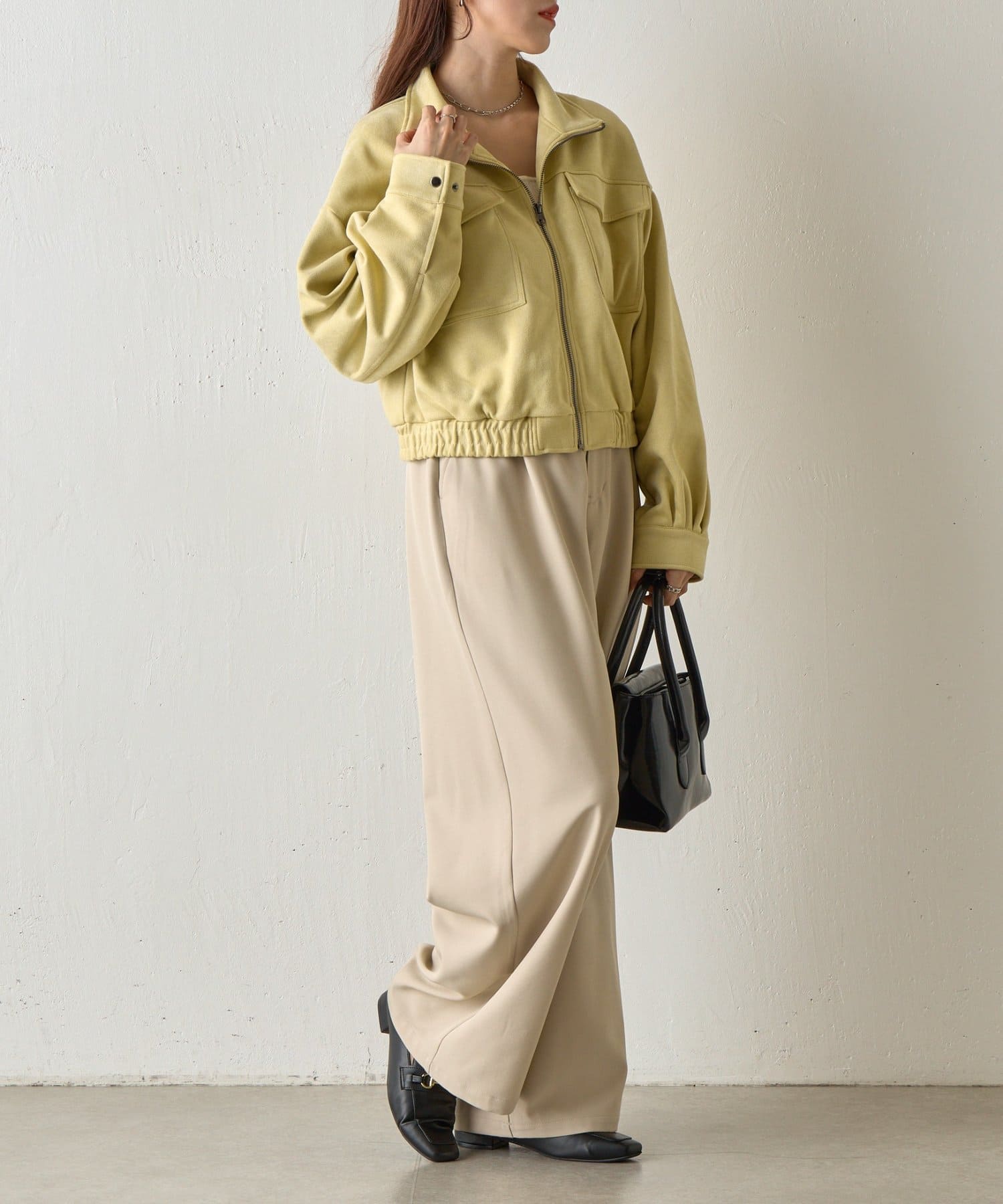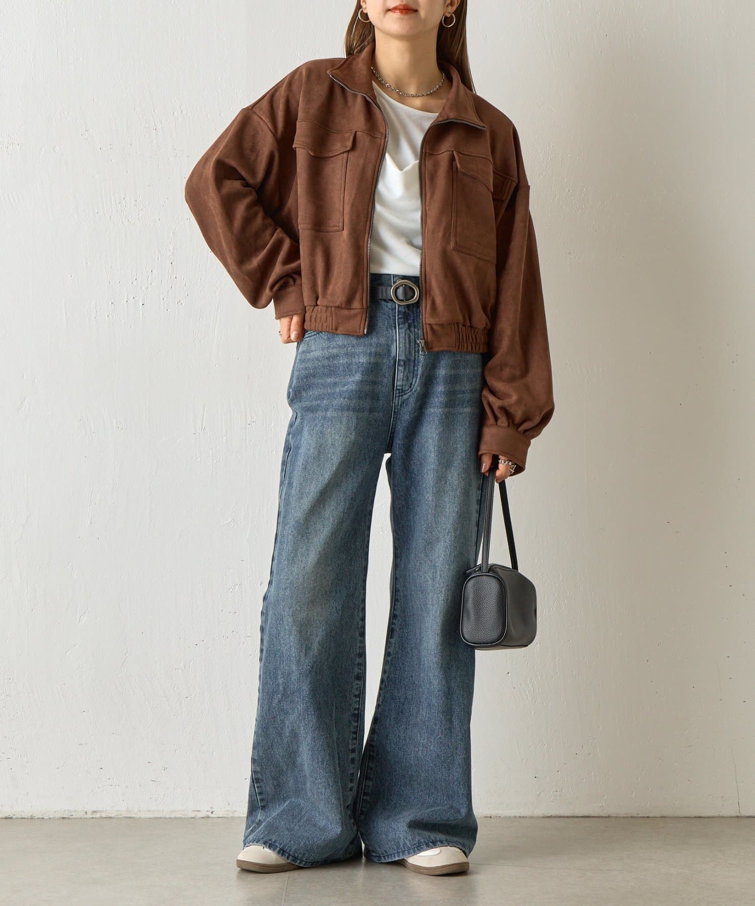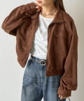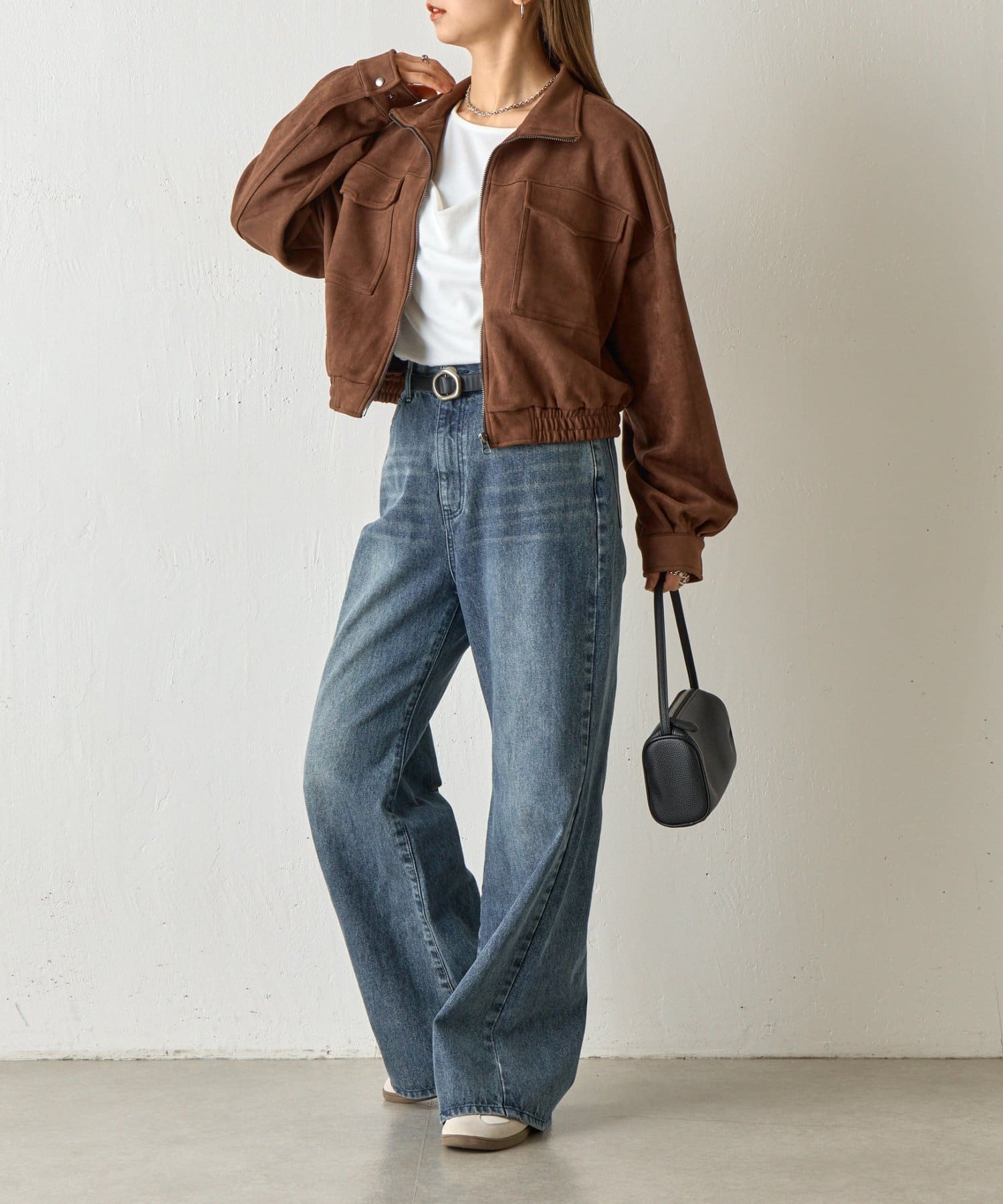 カジュアルなイメージのブルゾンですが、上品なスエード素材とショート丈のシルエットで女性らしく合わせやすくなっています。