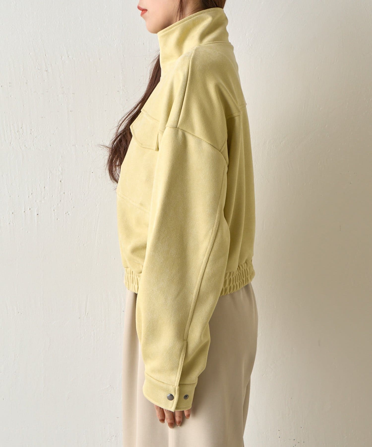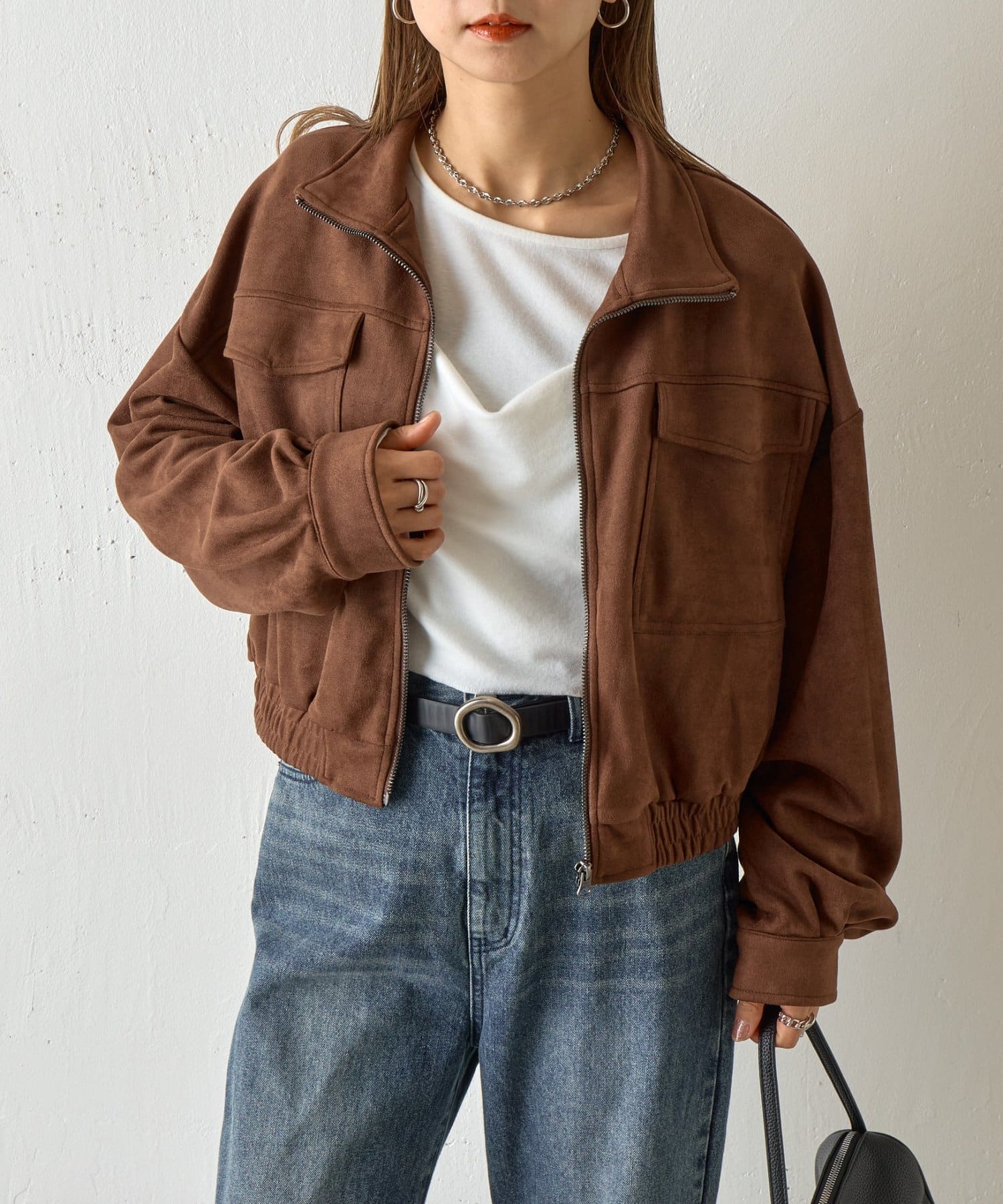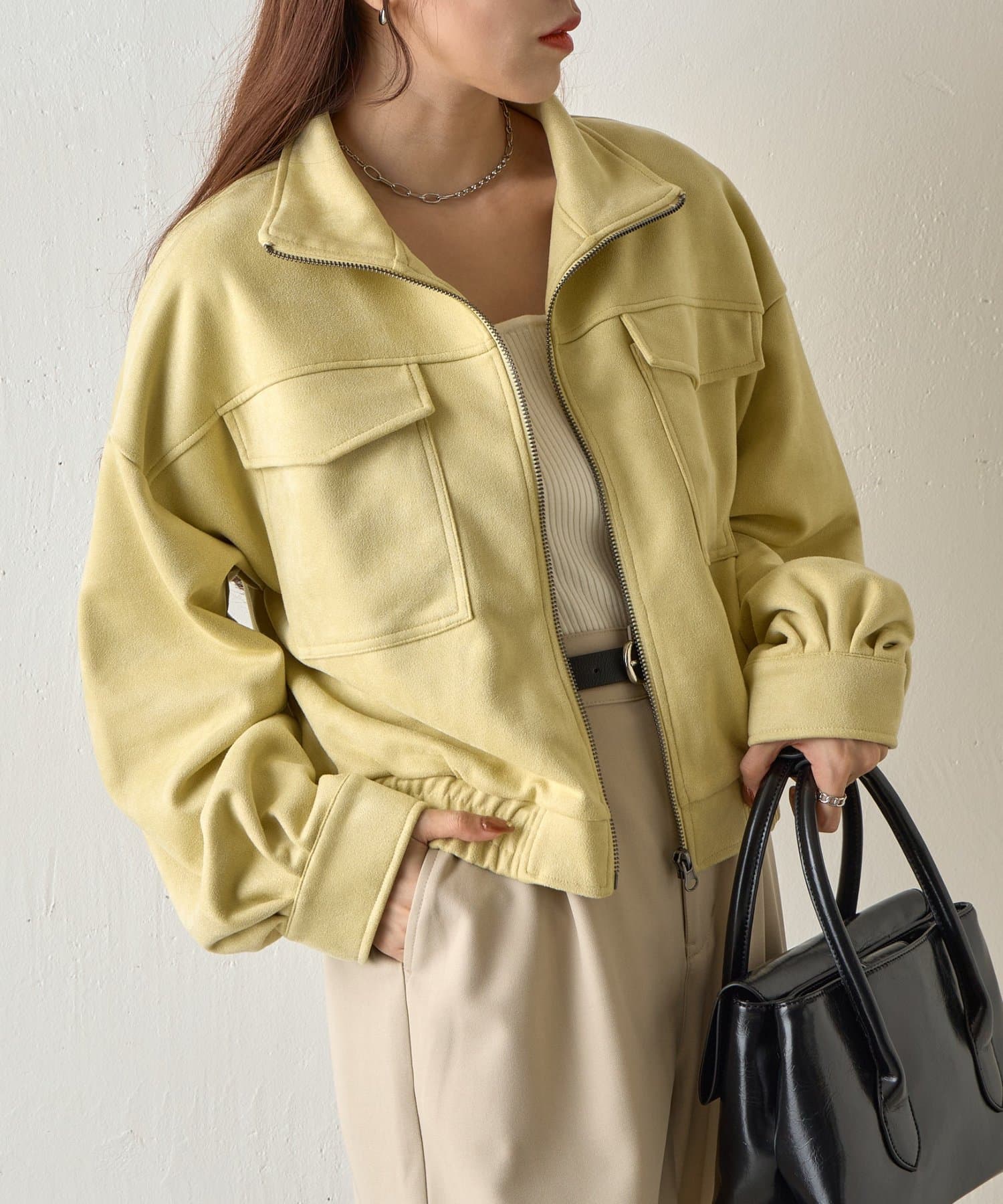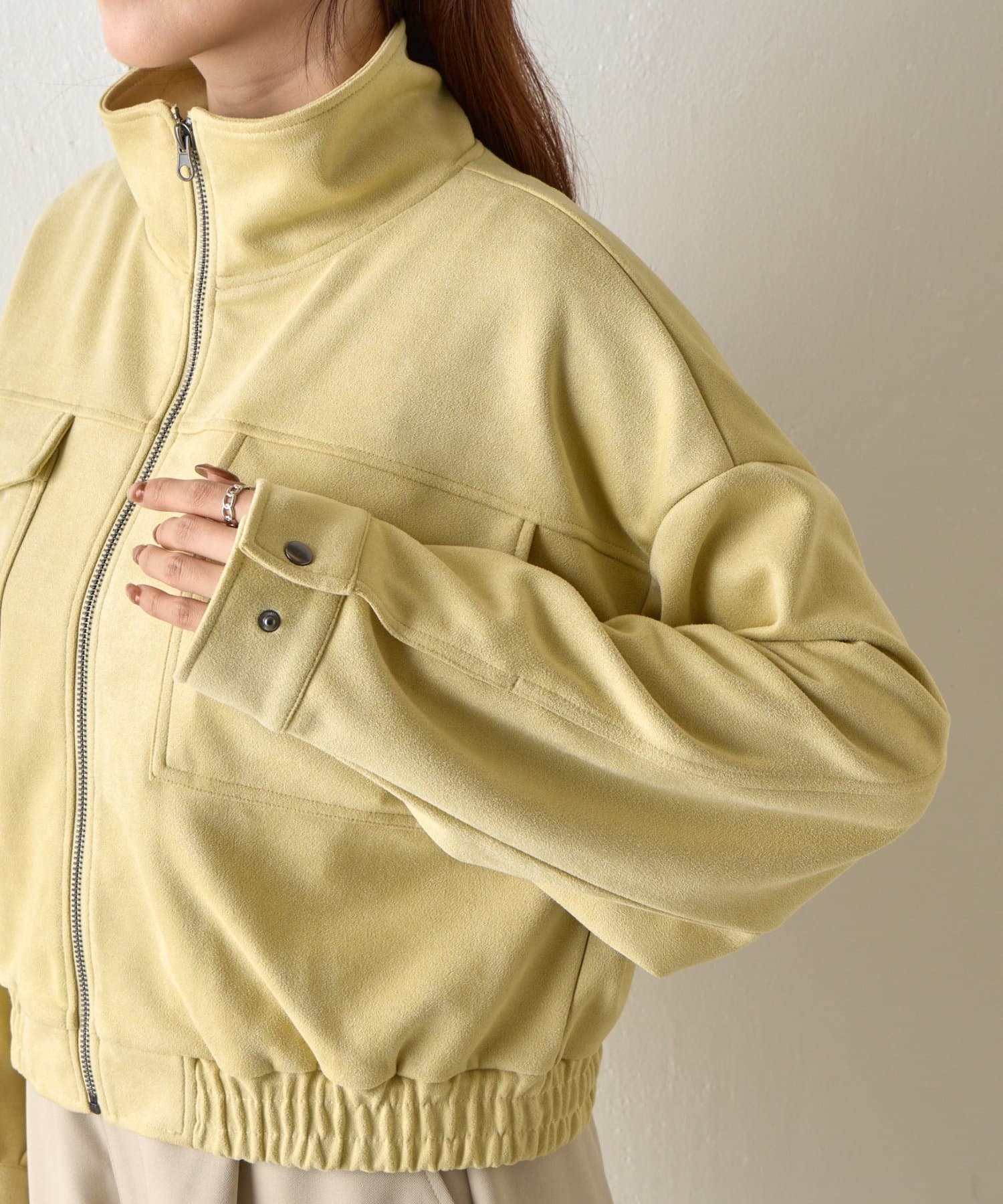 柔らかい素材と上品な雰囲気のスエード素材を使用したショートブルゾンです。