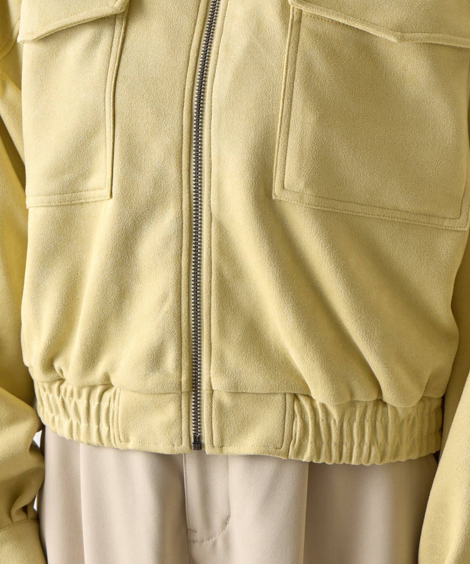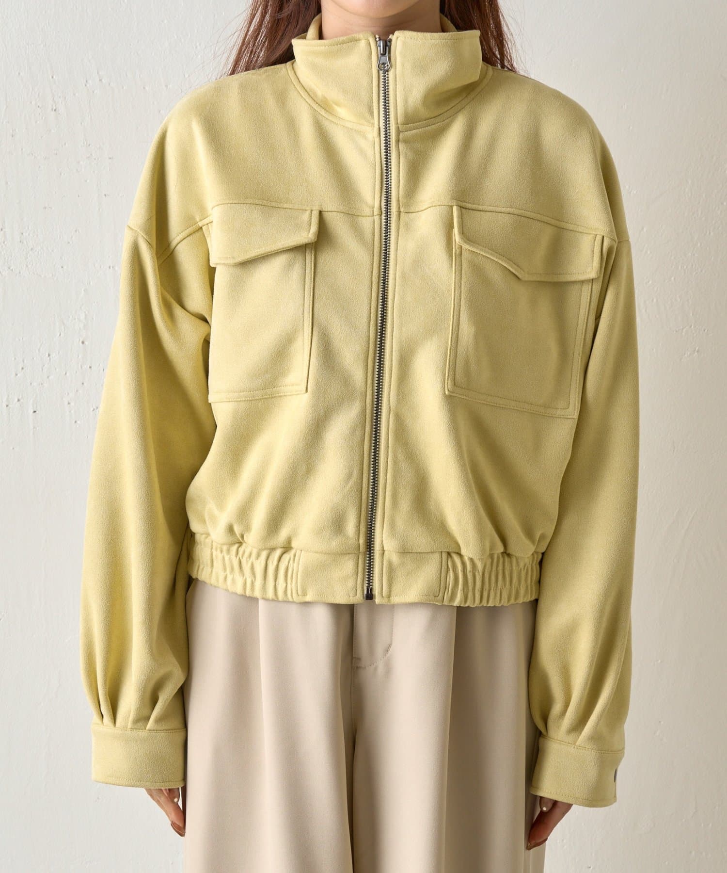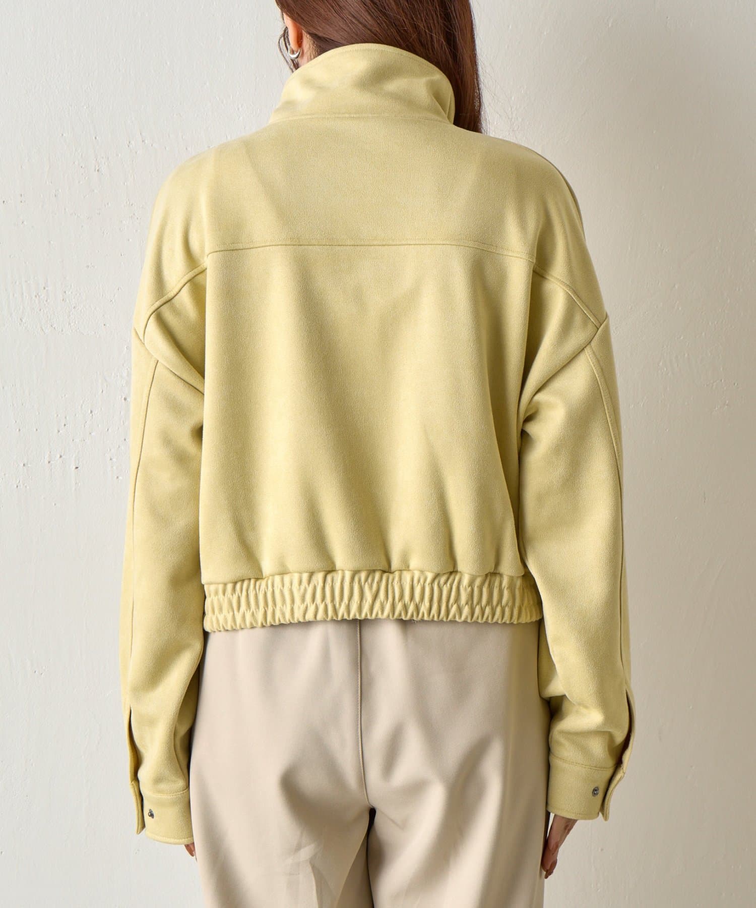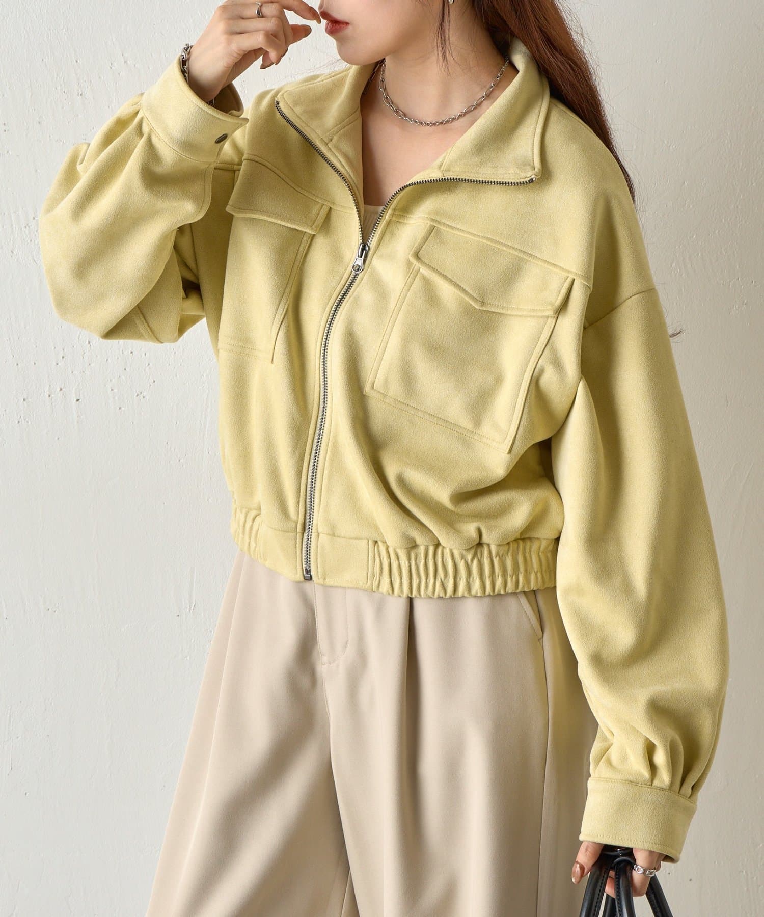 柔らかい素材と上品な雰囲気のスエード素材を使用したショートブルゾンです。