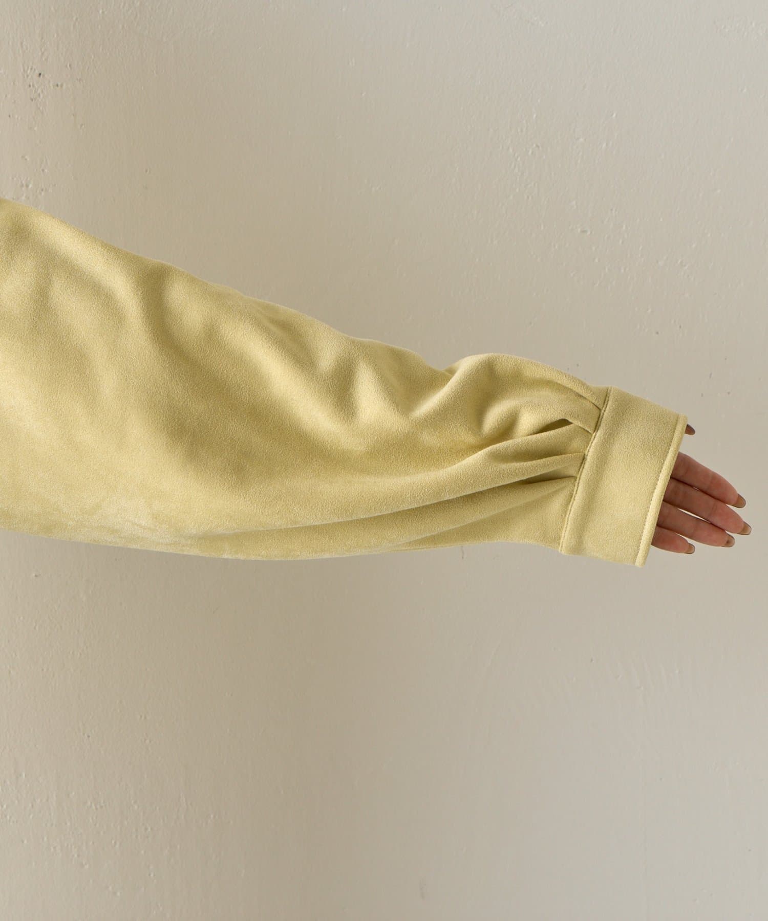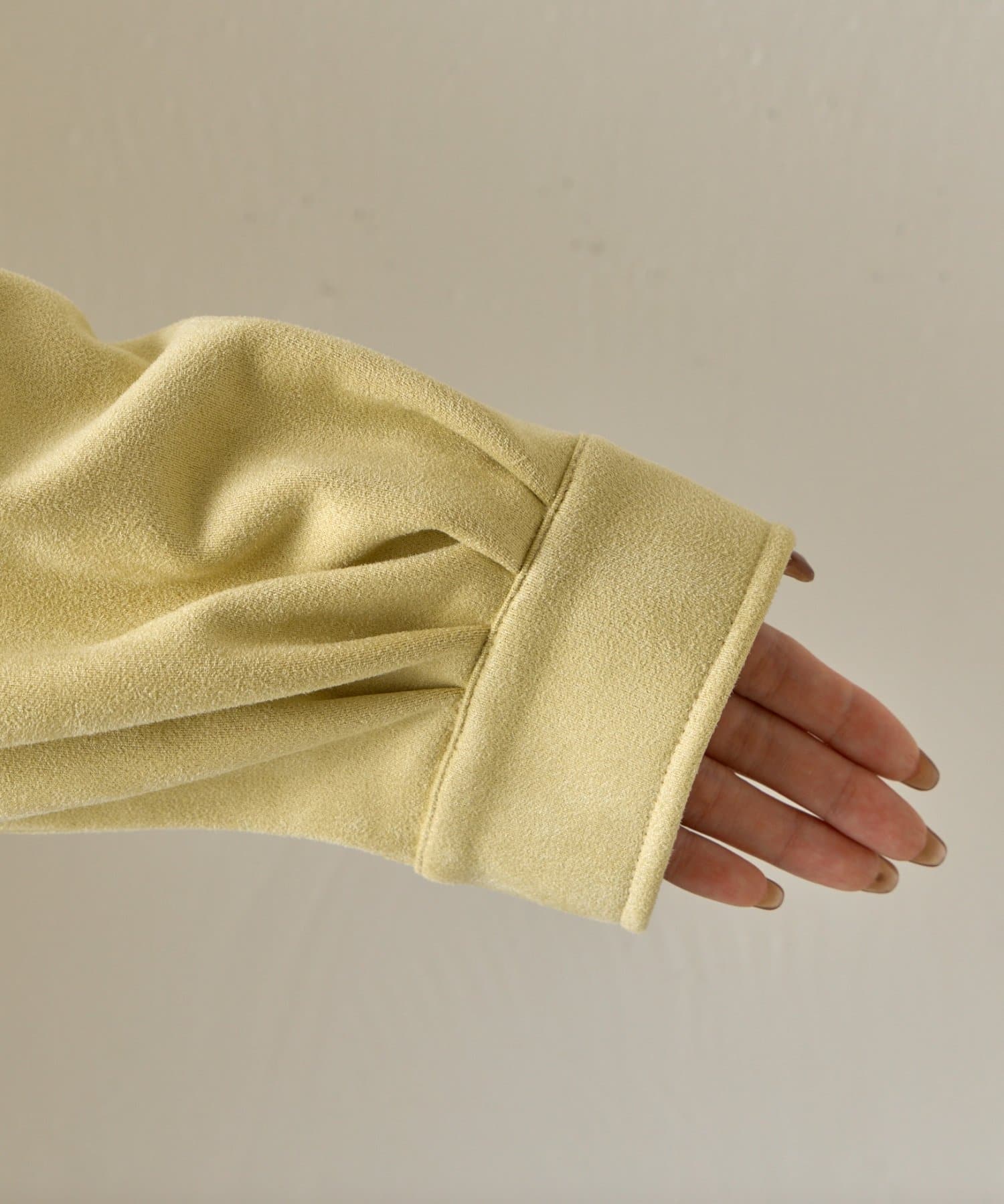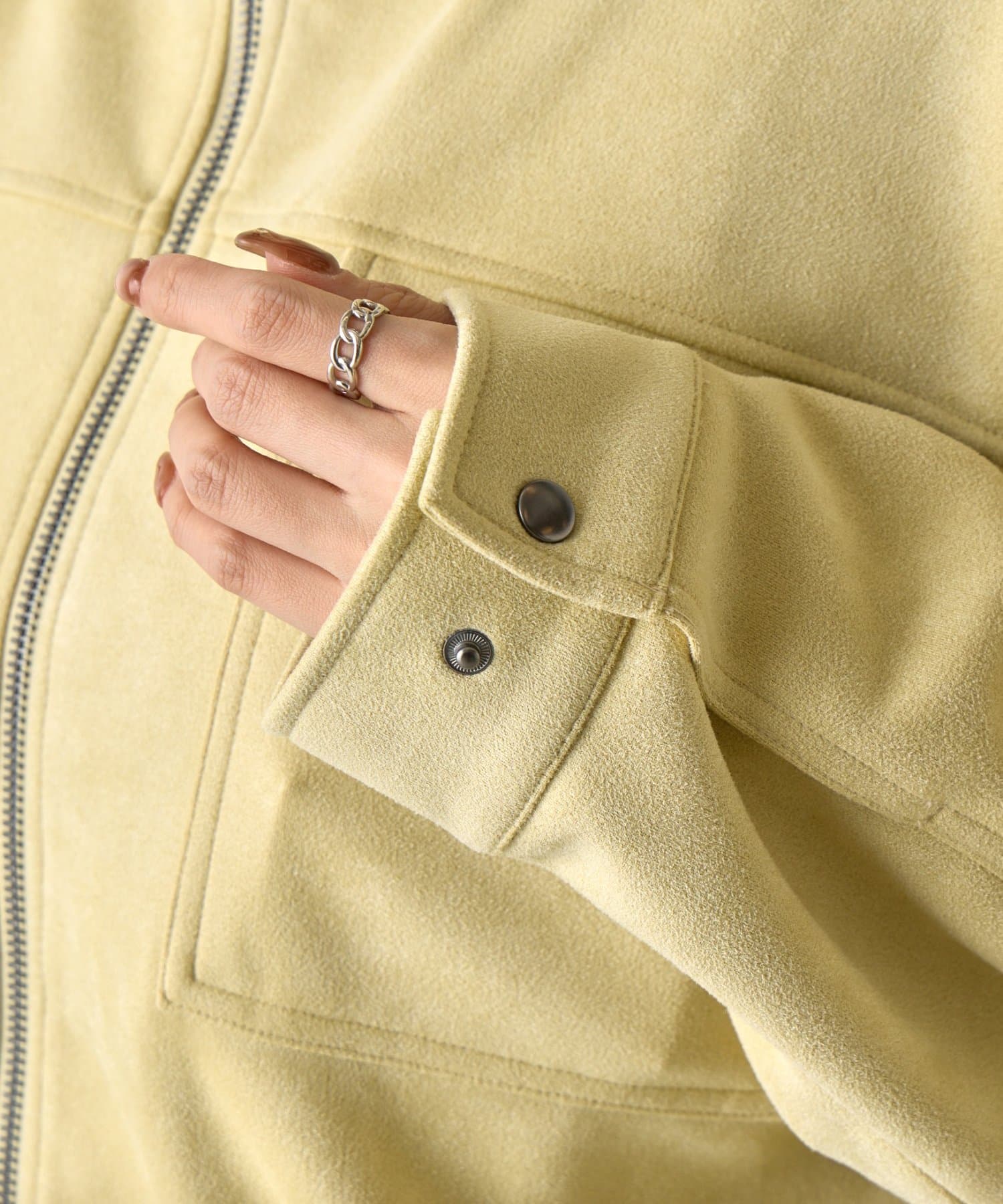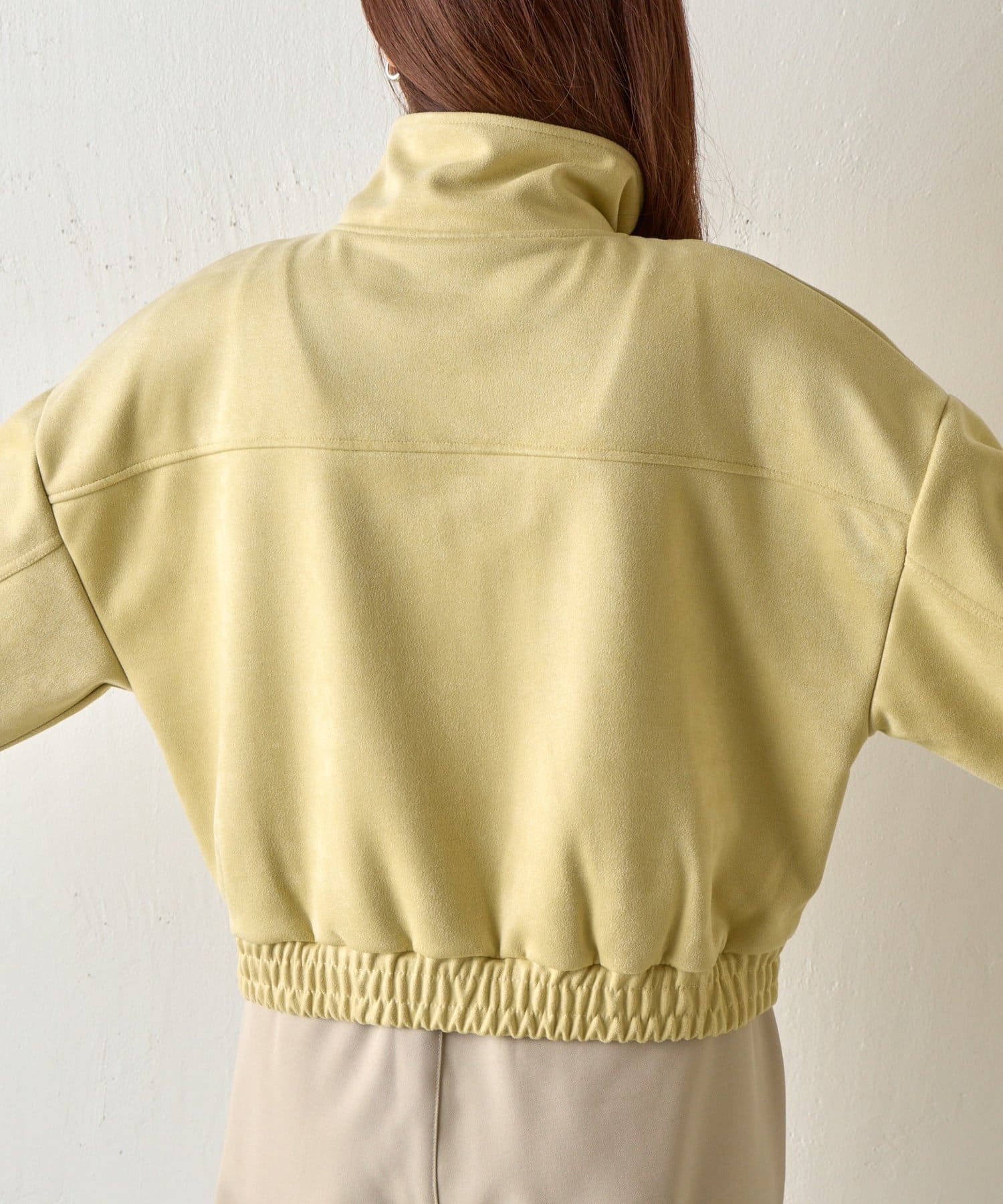 柔らかい素材と上品な雰囲気のスエード素材を使用したショートブルゾンです。