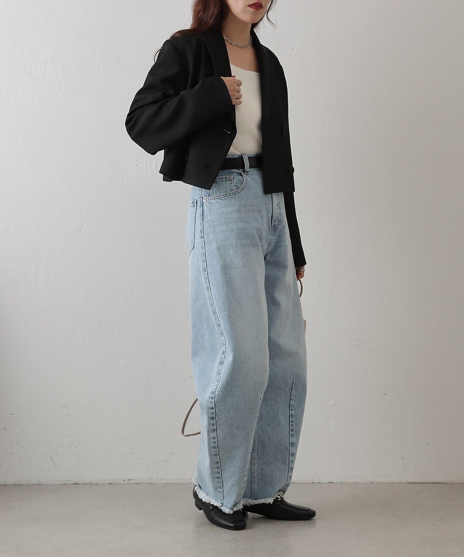 きちんと感とクロップド丈の今っぽさを掛け合わせたテーラードジャケットです。