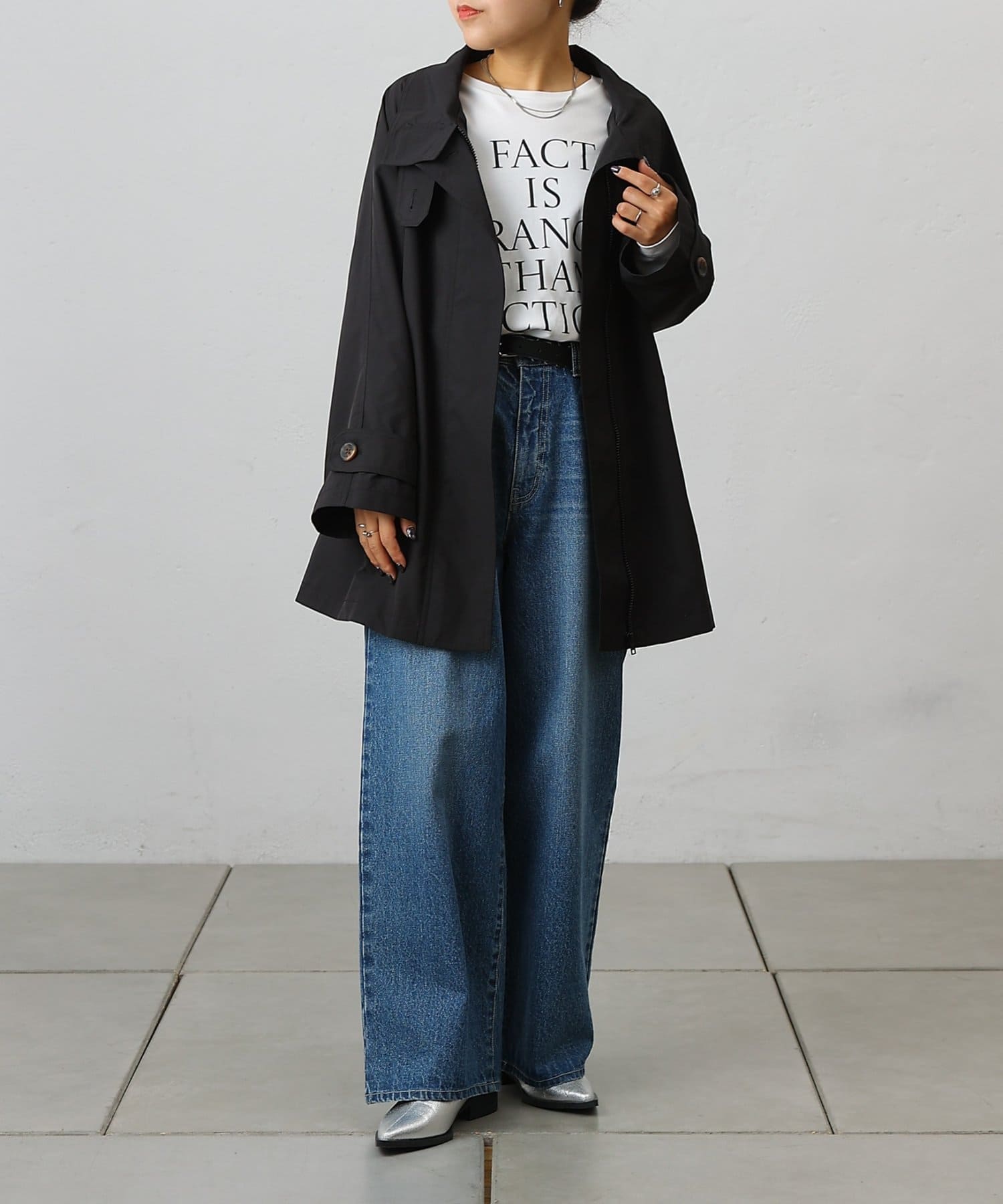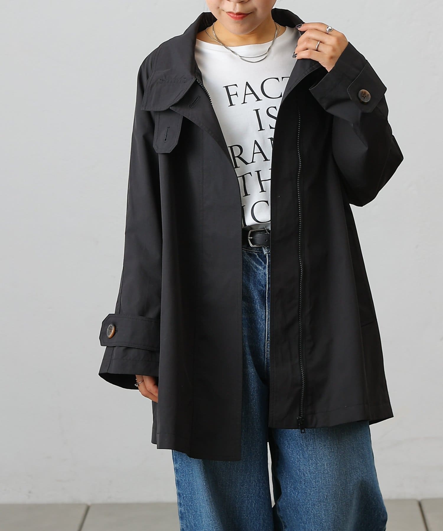 カジュアルめなアイテムですがスタンドネックでカチッとフォーマルな場面にも