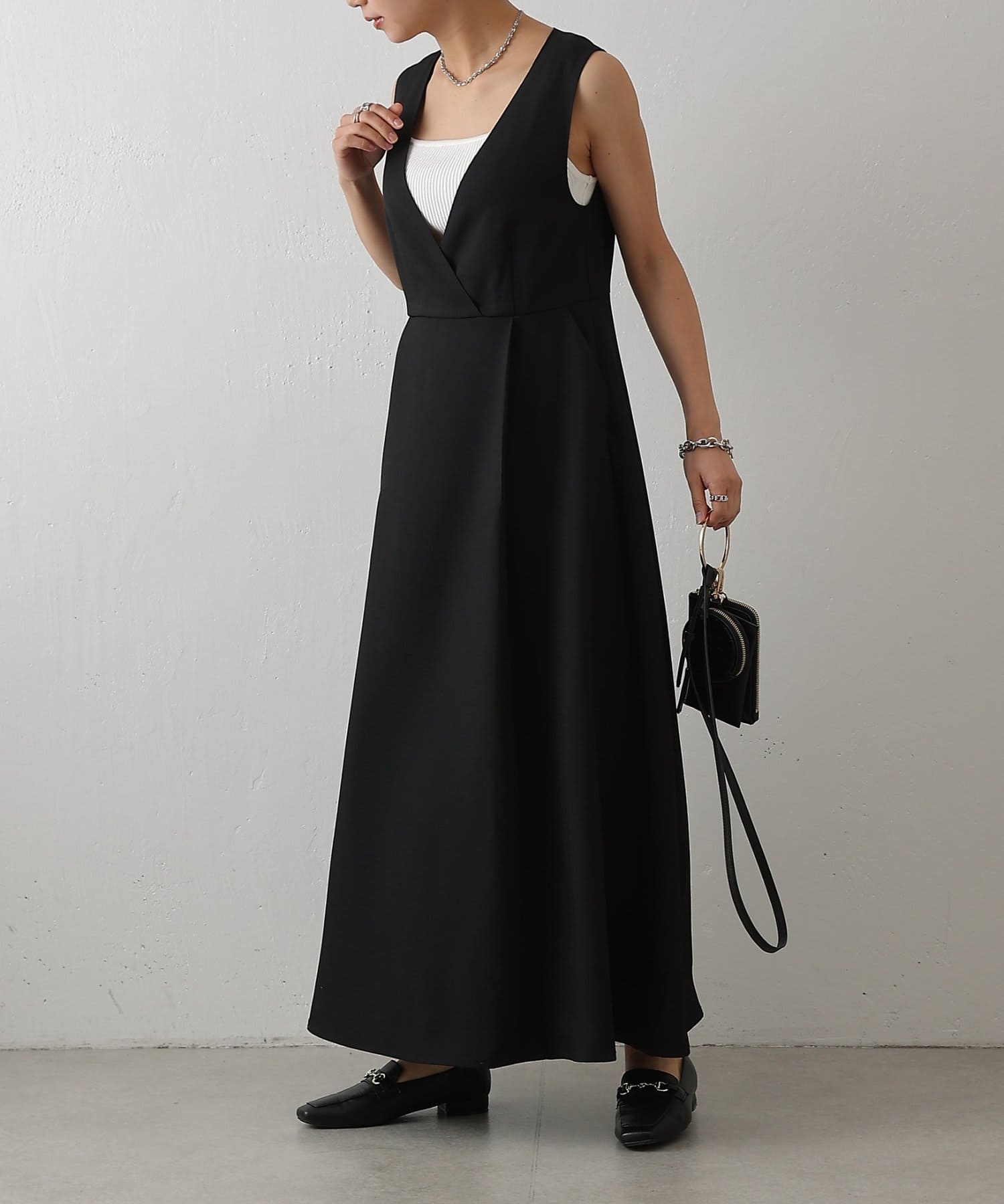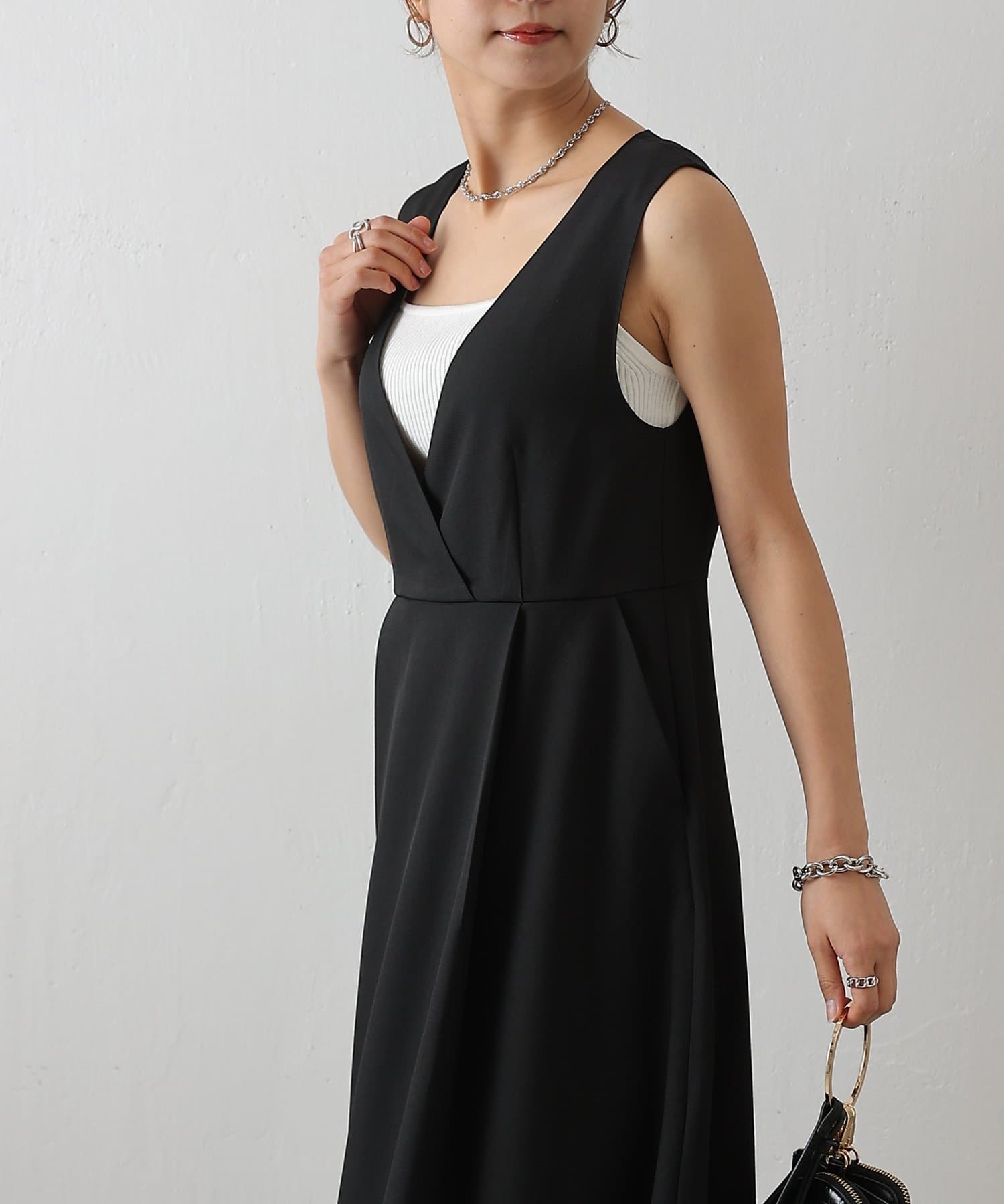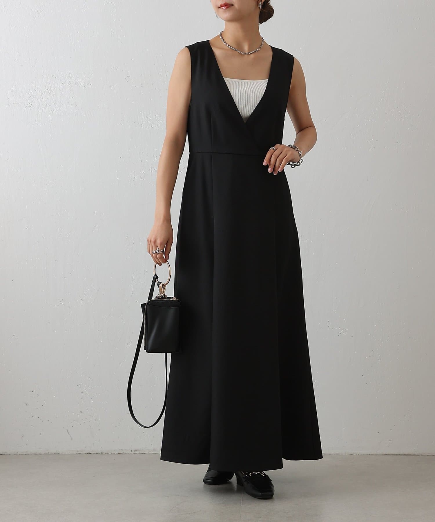 胸元のカシュクールデザインが女性らしい抜け感と上品さを演出するノースリーブワンピースです。