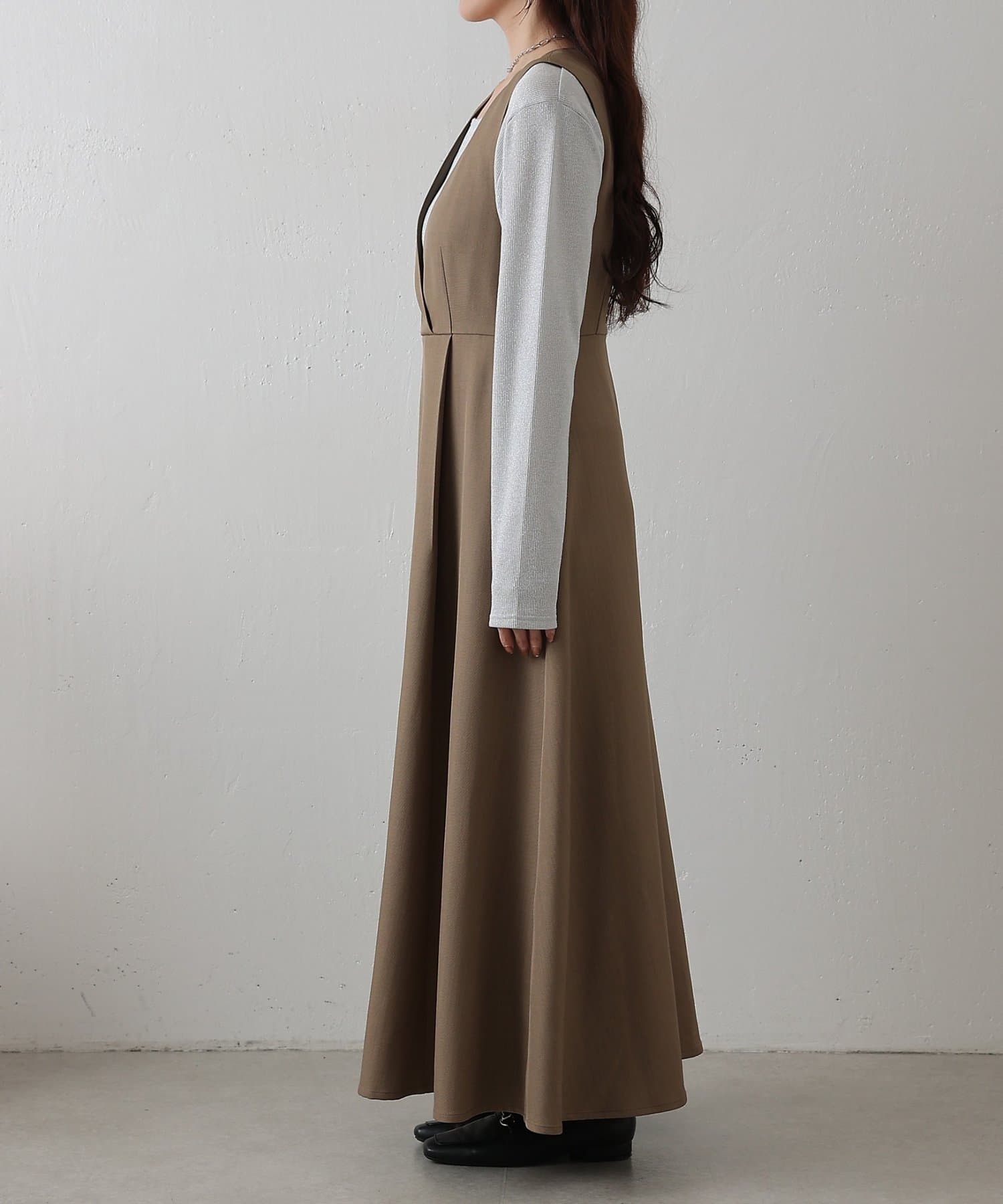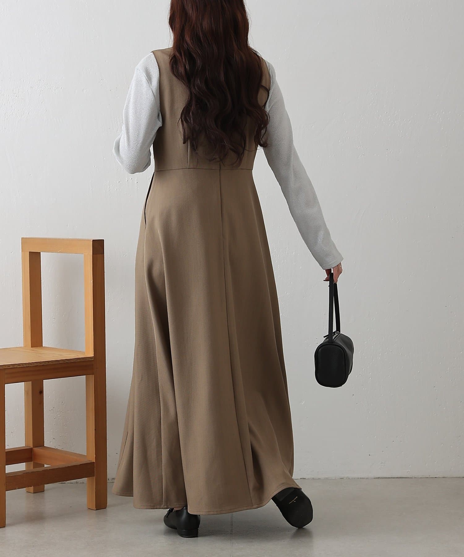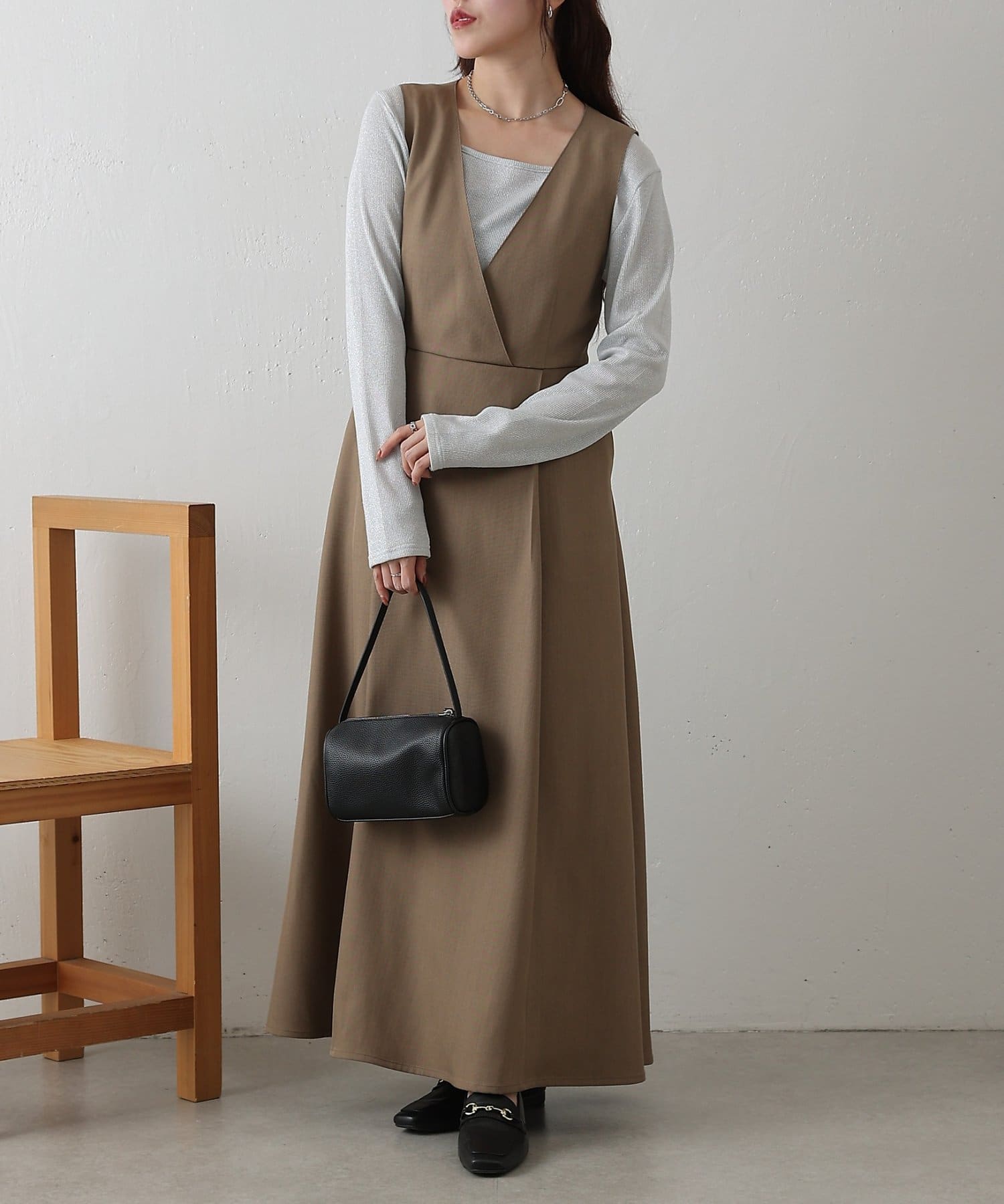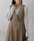 胸元のカシュクールデザインが女性らしい抜け感と上品さを演出するノースリーブワンピースです。