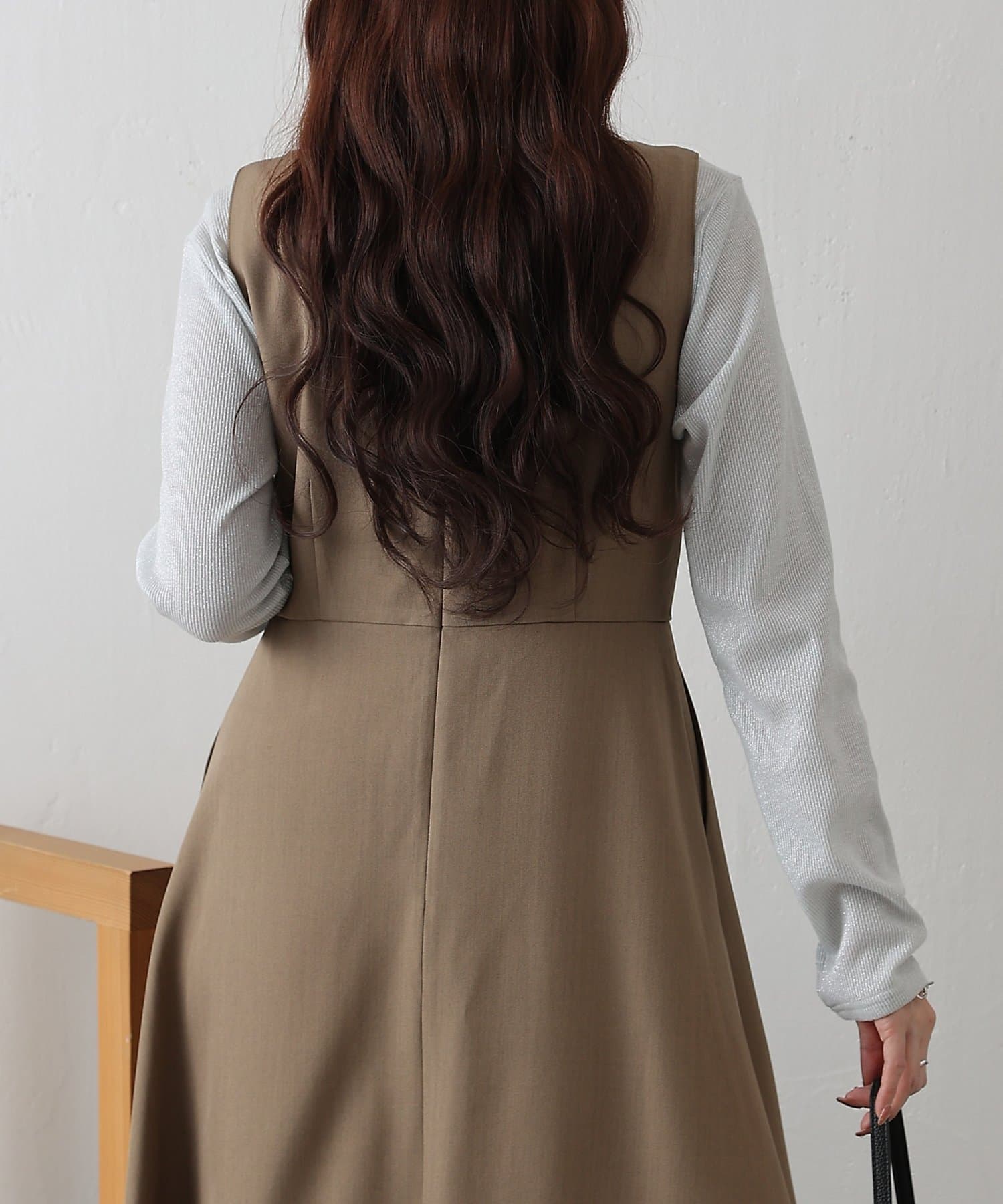 程よく開いたネックラインがデコルテをきれいに見せすっきりとしたシルエットに。