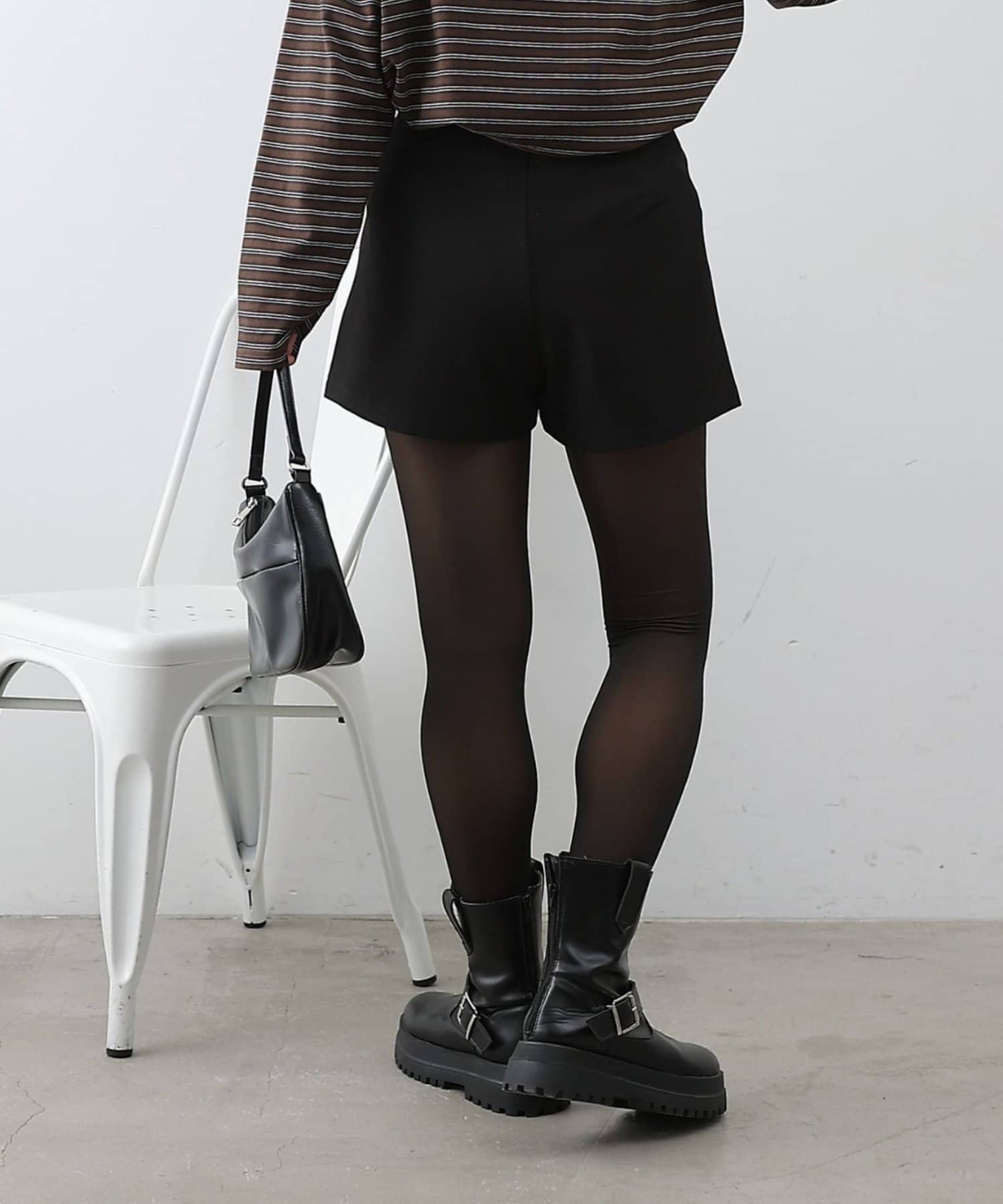 また、短めな丈感ですが裾がやや広がるシルエットなので細見え効果大なアイテムになっています。