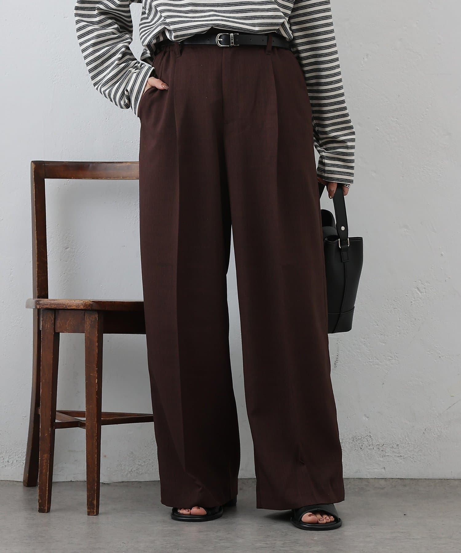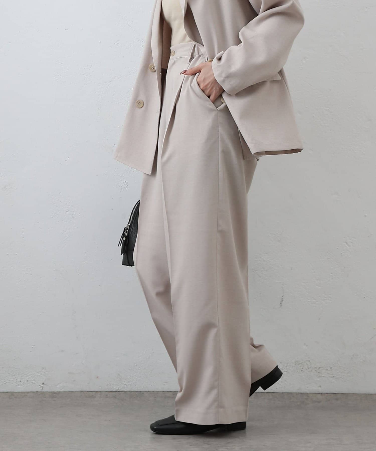 また、センタープレスとタックが入っているので、程よいゆとりを保ちつつ縦のラインを強調できつのも嬉しいポイントです◎