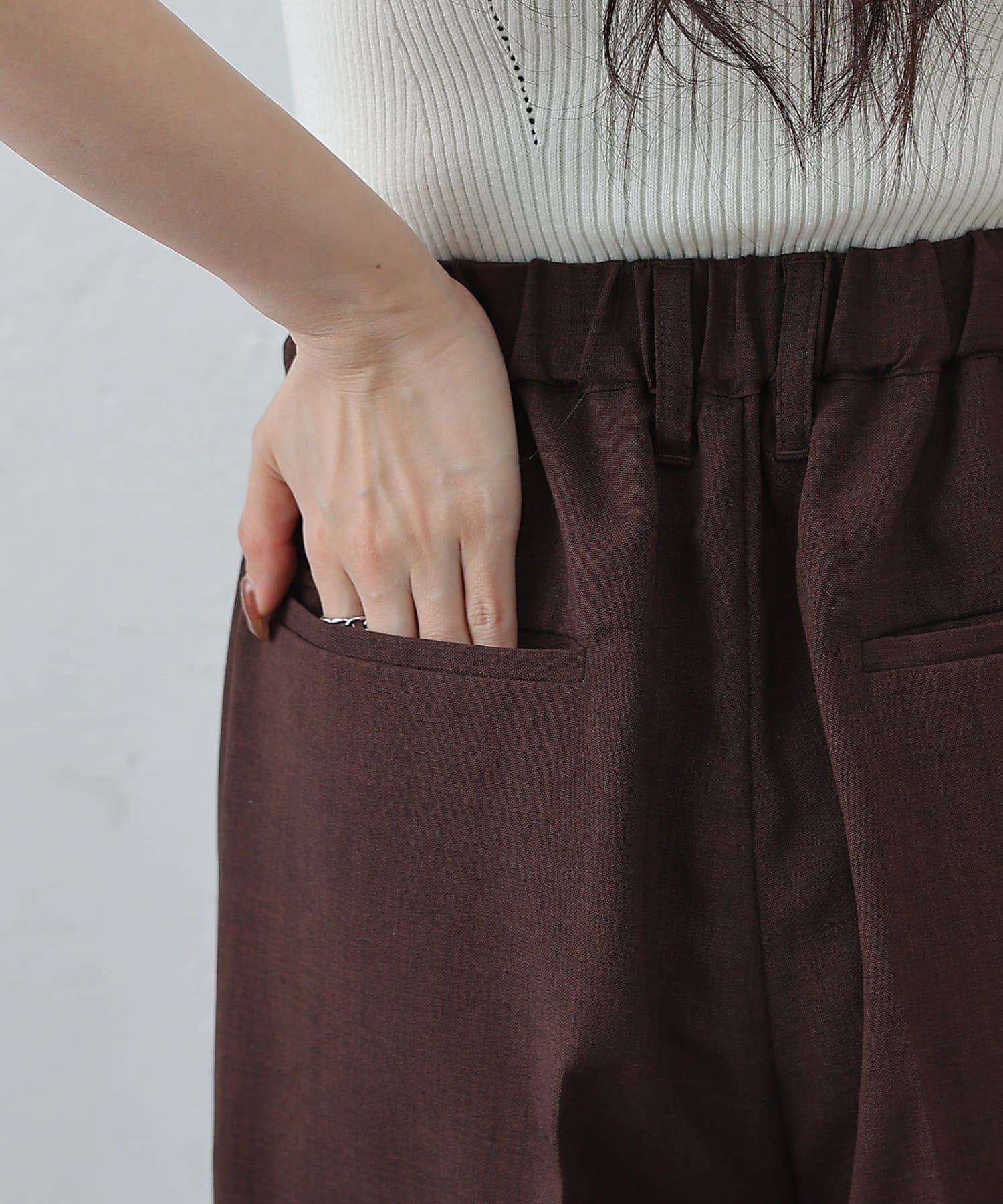 ベルトホールもついているのでベルトでウエストマークしてあげると脚長効果も期待できます。