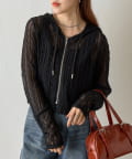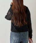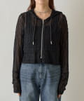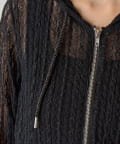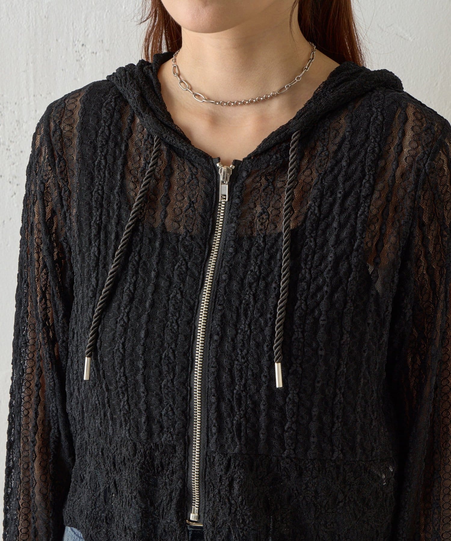 全体がシアーなレースで仕上げられた、甘めのスパイス感漂うフードレイヤードシャツ。
