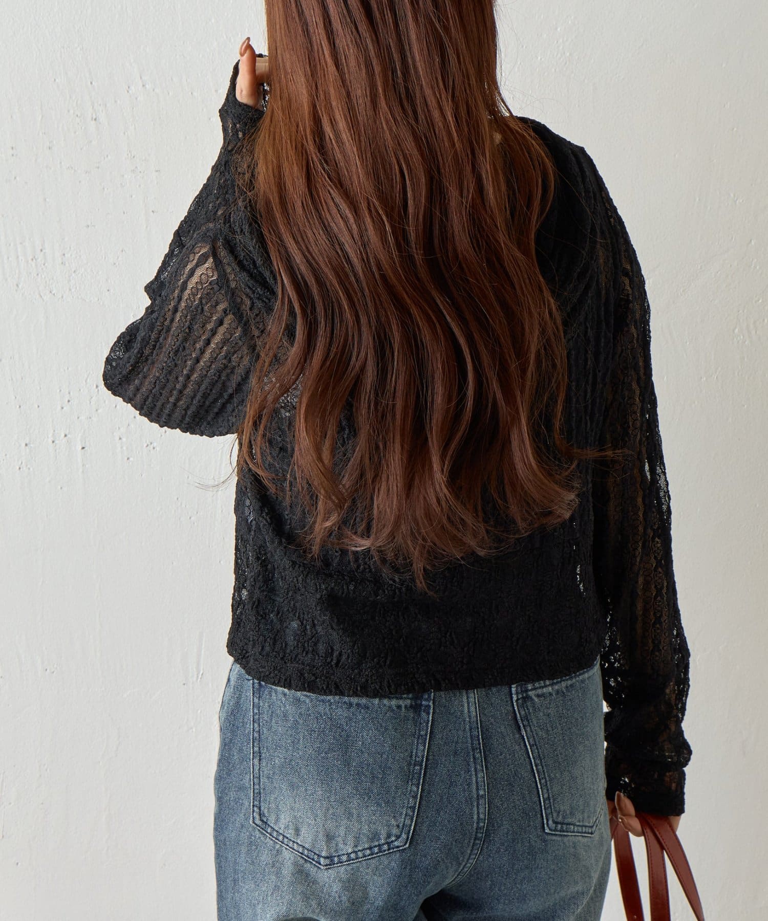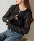 袖と裾の切り替えラインがアクセントになり、繊細なレースの透け感と相まってコーデに華やかさをプラスします。