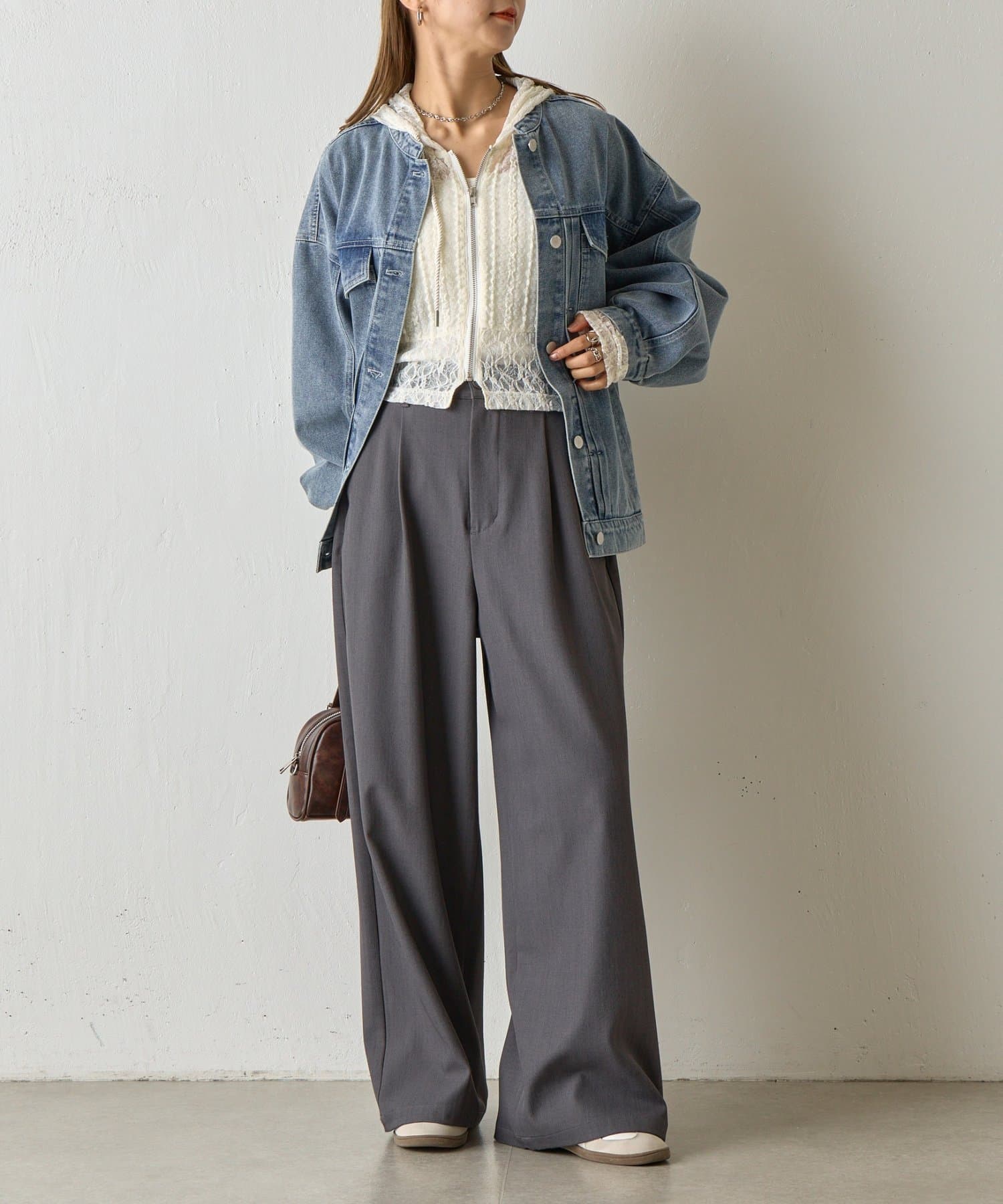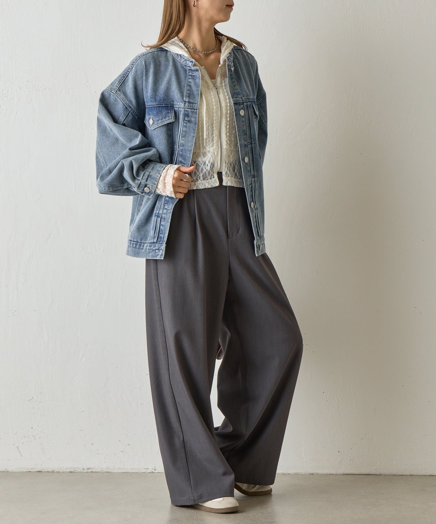 羽織としてさらっと重ねればこなれ感のある大人カジュアルに、インナーとしてレイヤードすればフードやレースがチラリと見え、甘さのあるアクセントに。