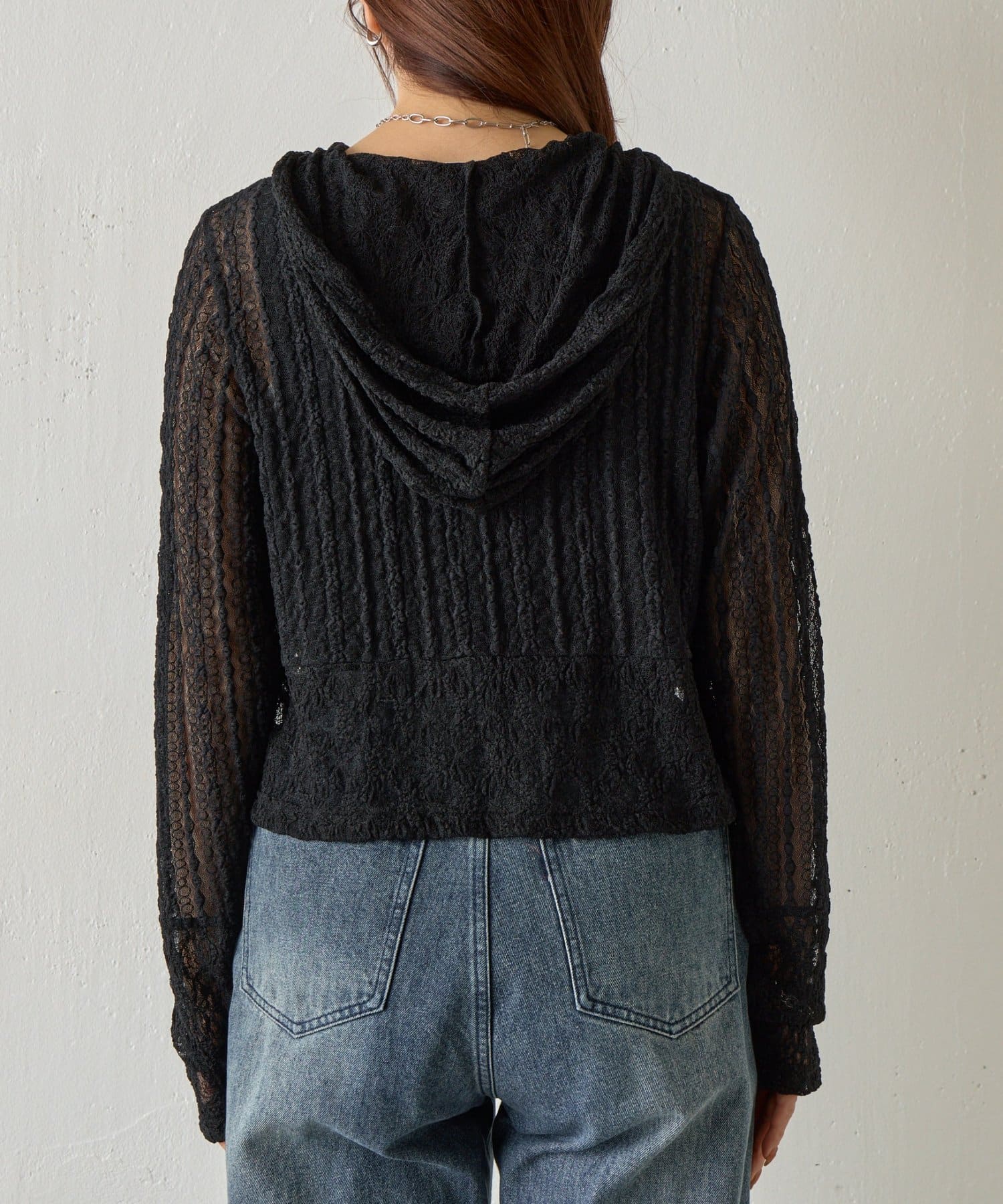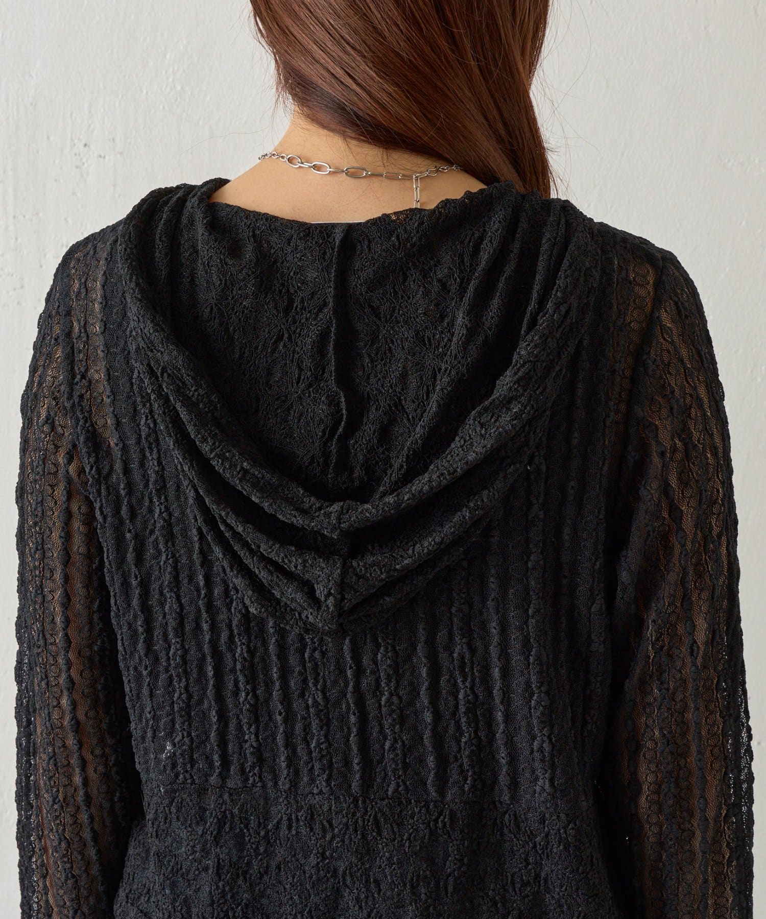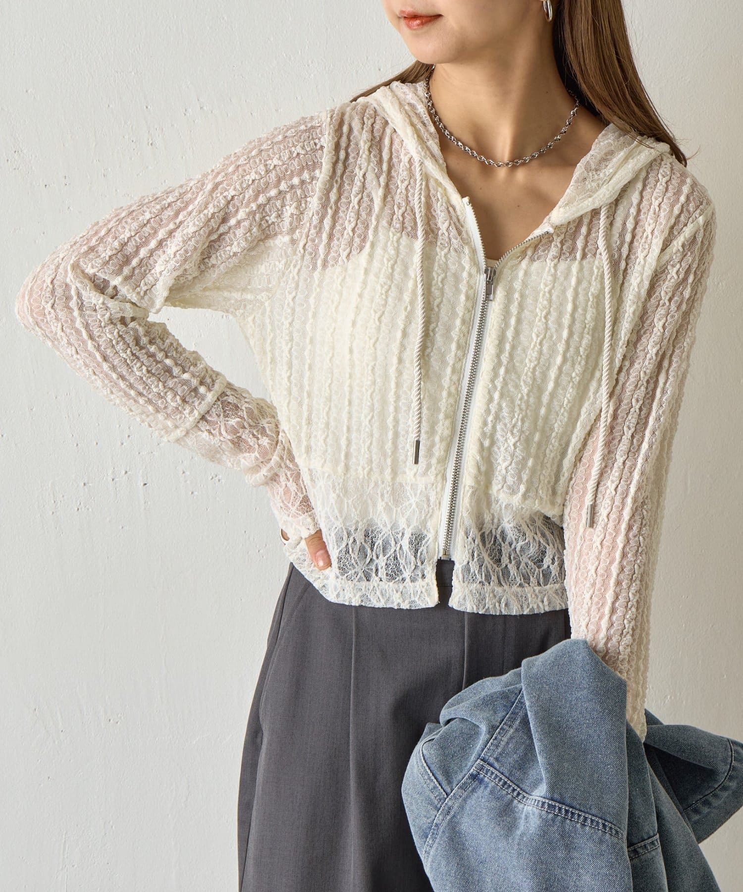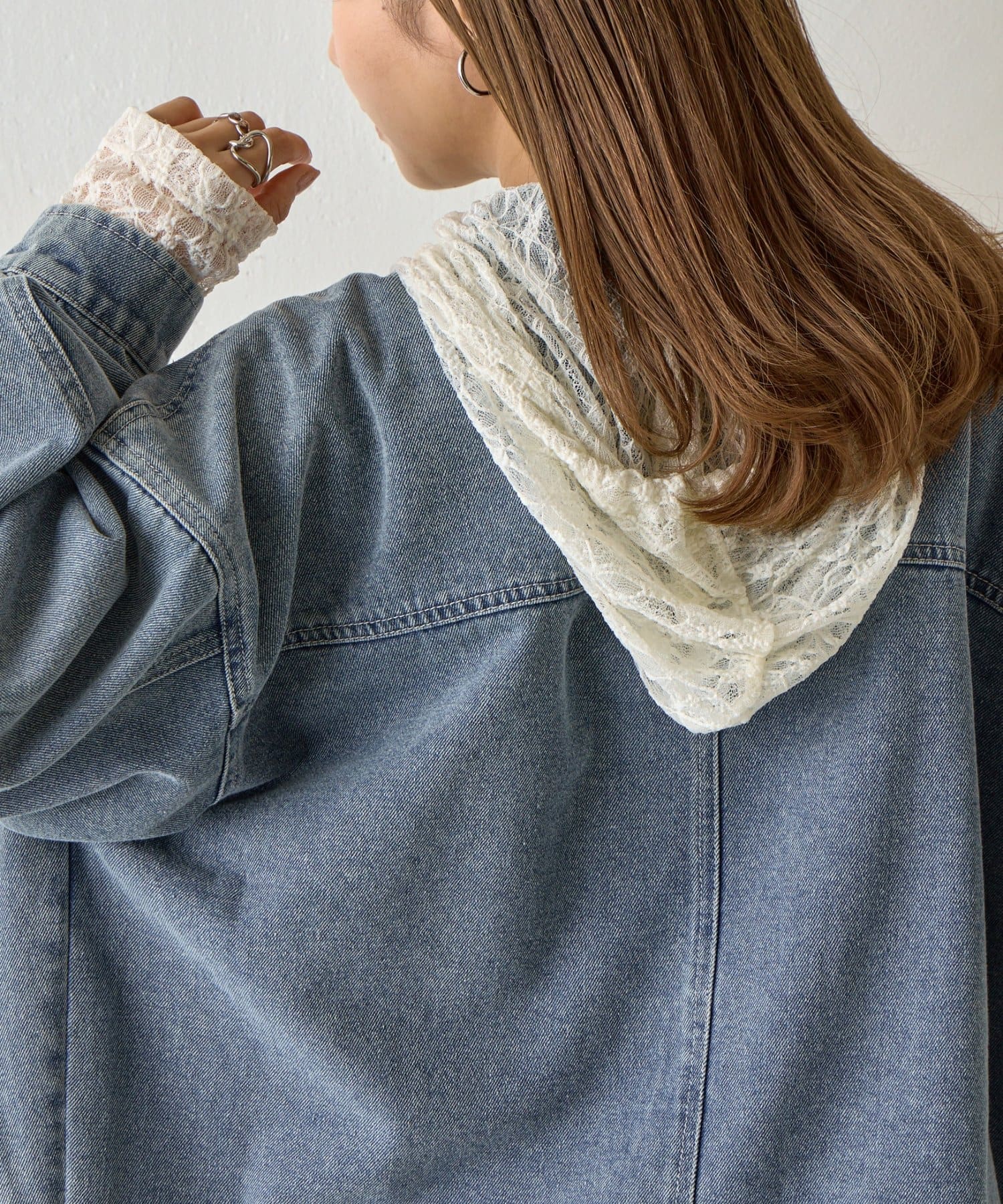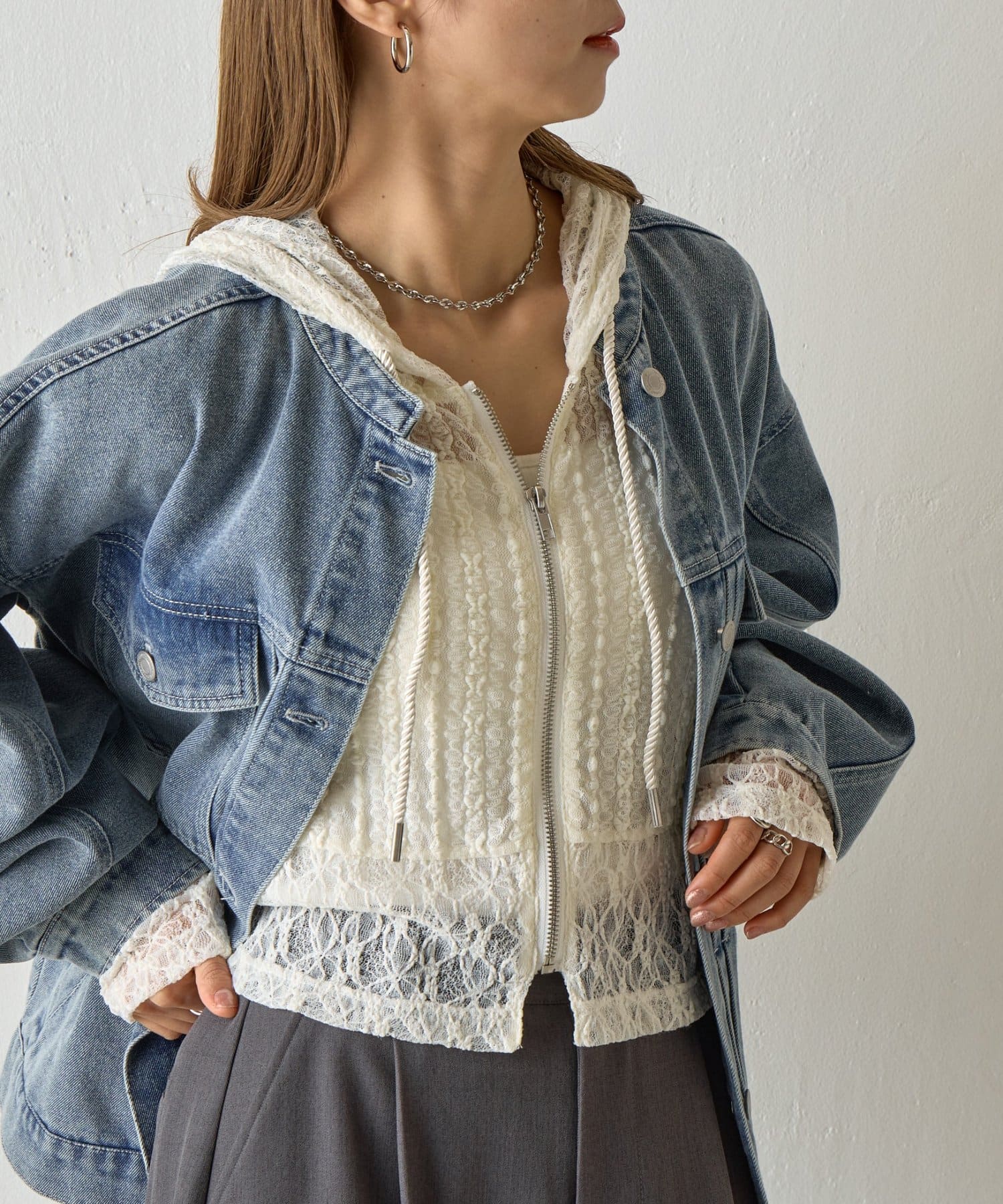 【レース×フードの絶妙なバランスで、1枚でおしゃれ度を格上げ】