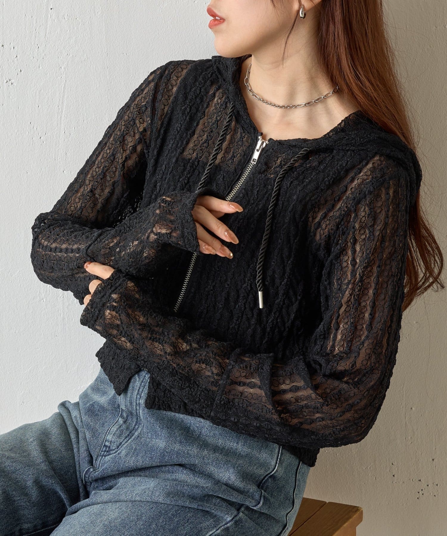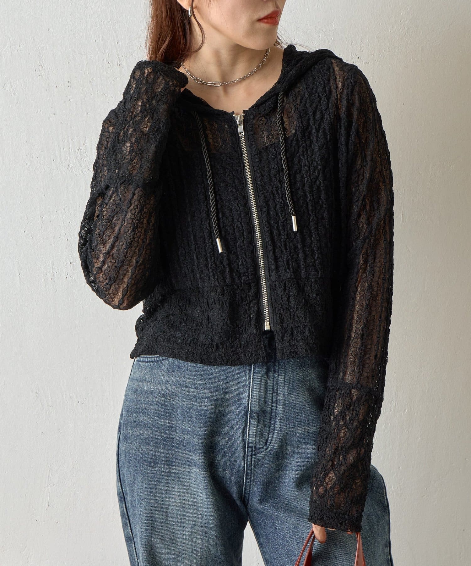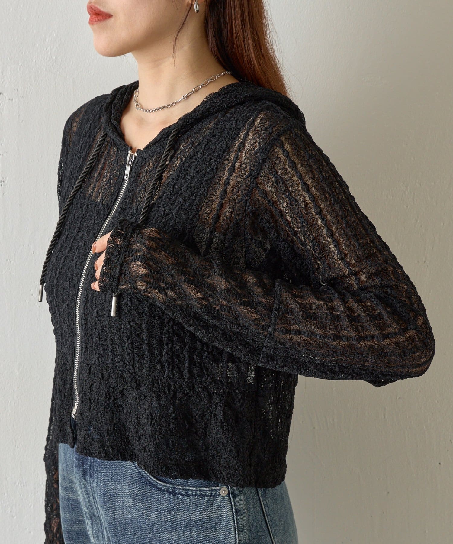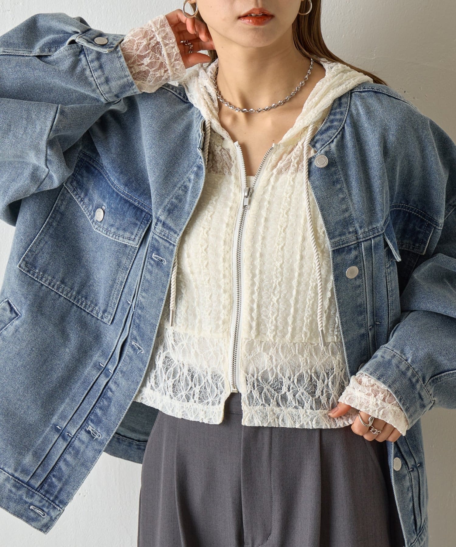 【レース×フードの絶妙なバランスで、1枚でおしゃれ度を格上げ】