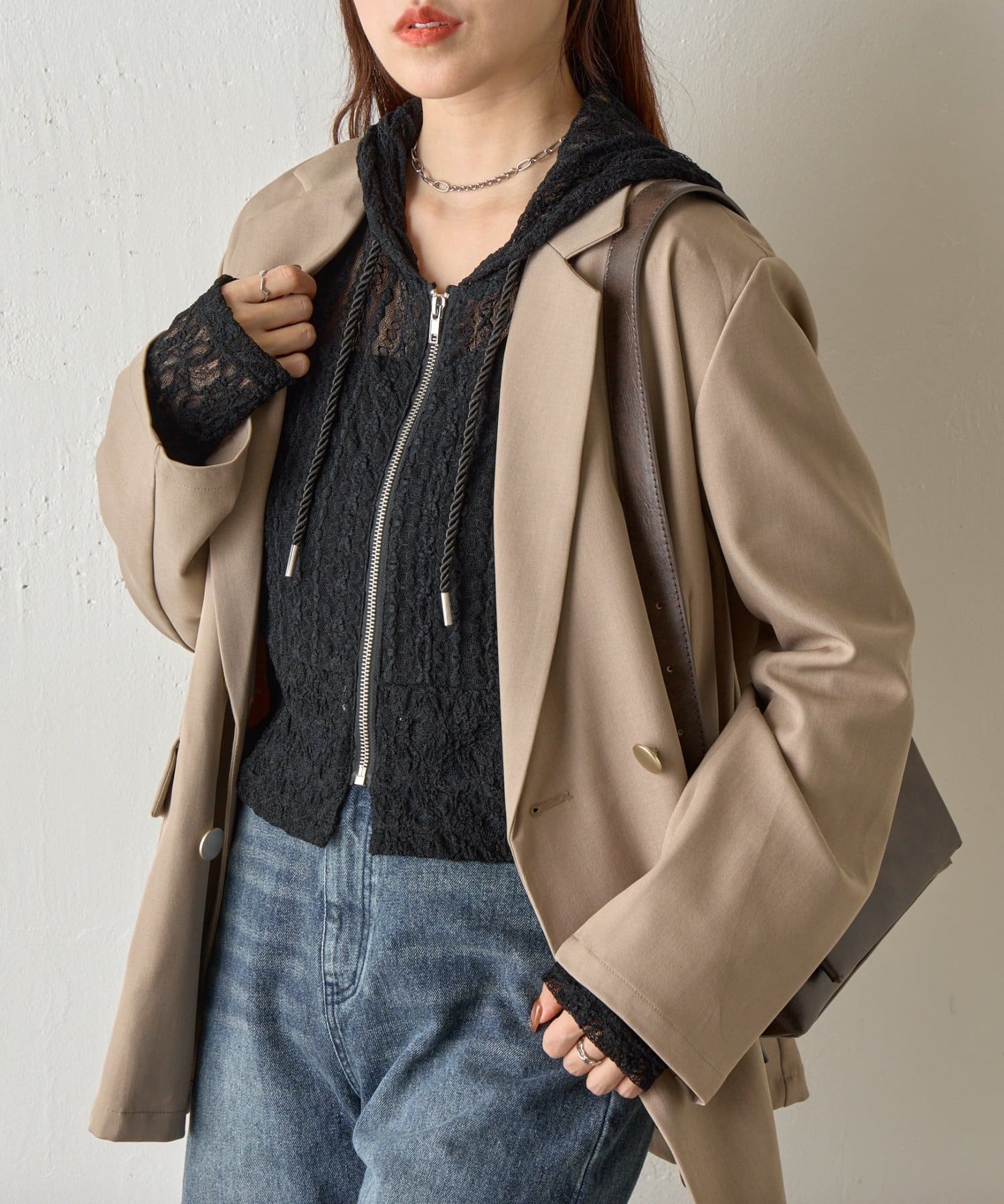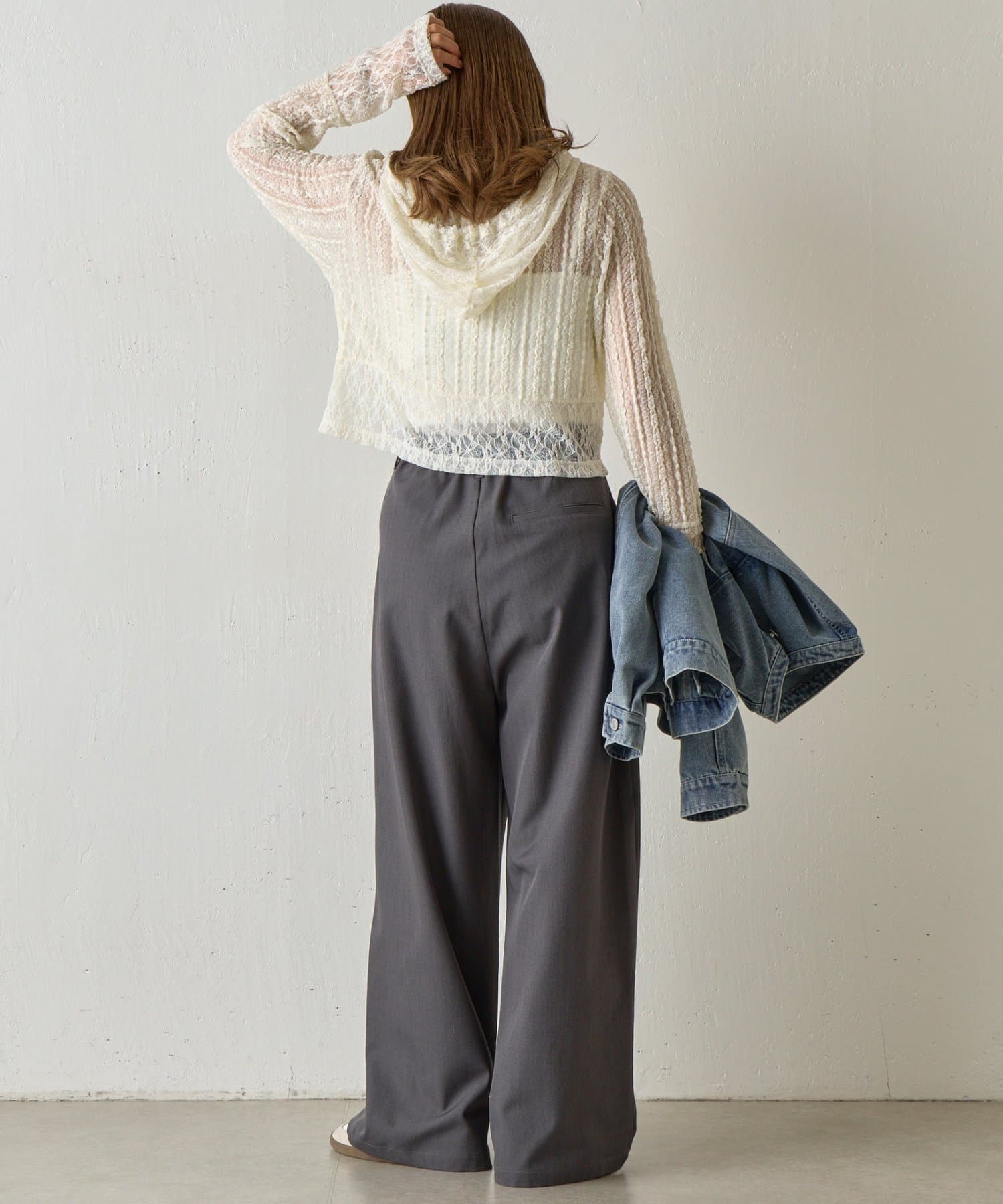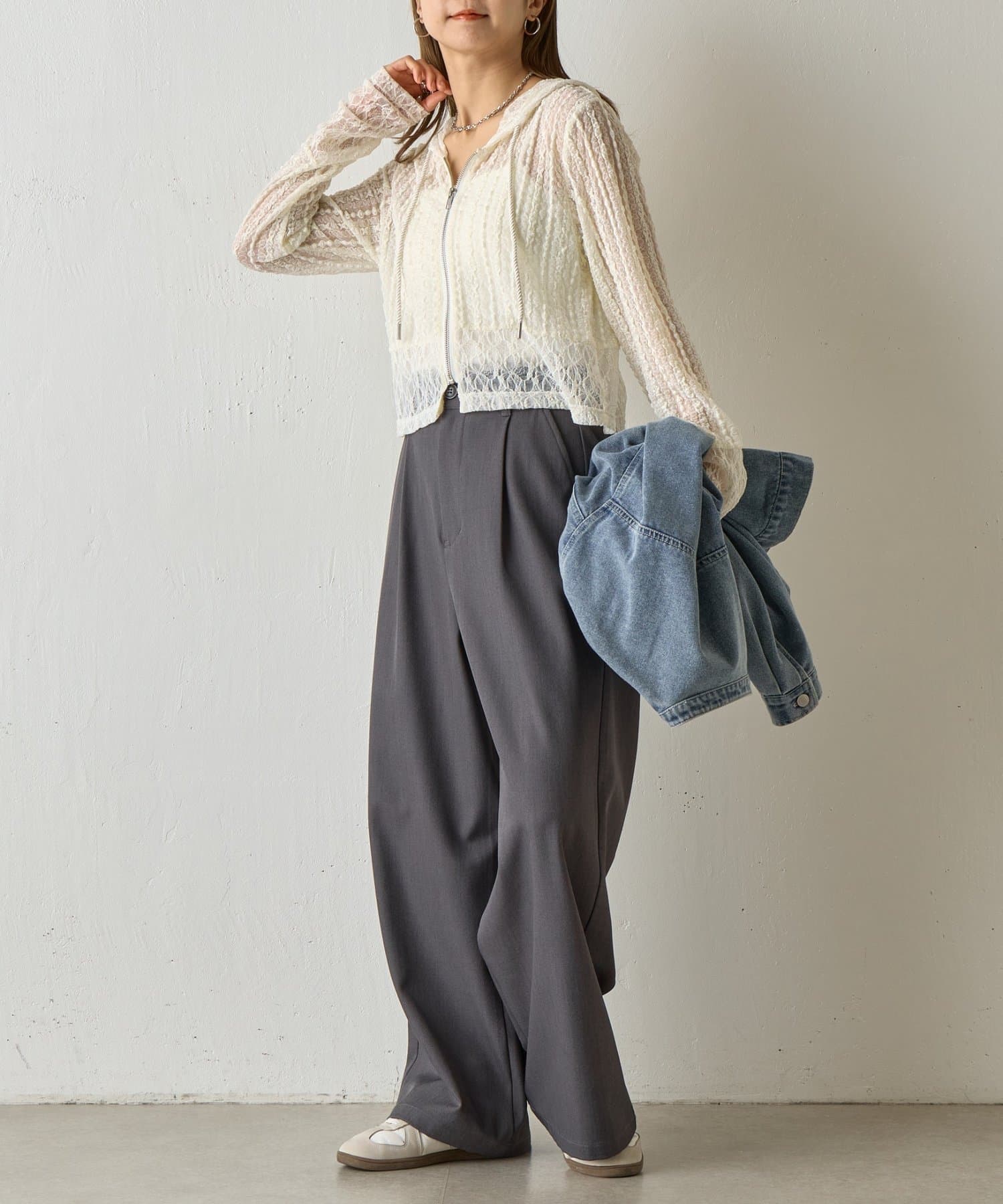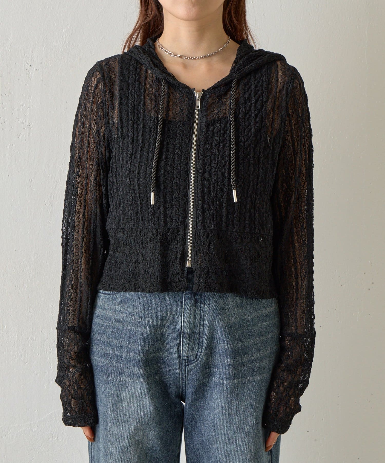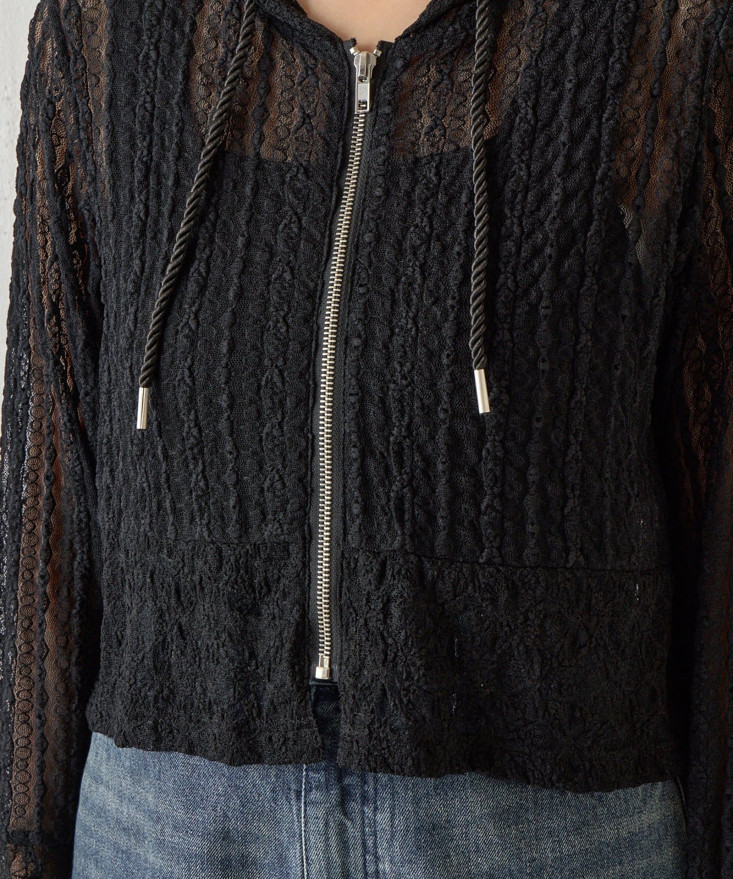 【レース×フードの絶妙なバランスで、1枚でおしゃれ度を格上げ】