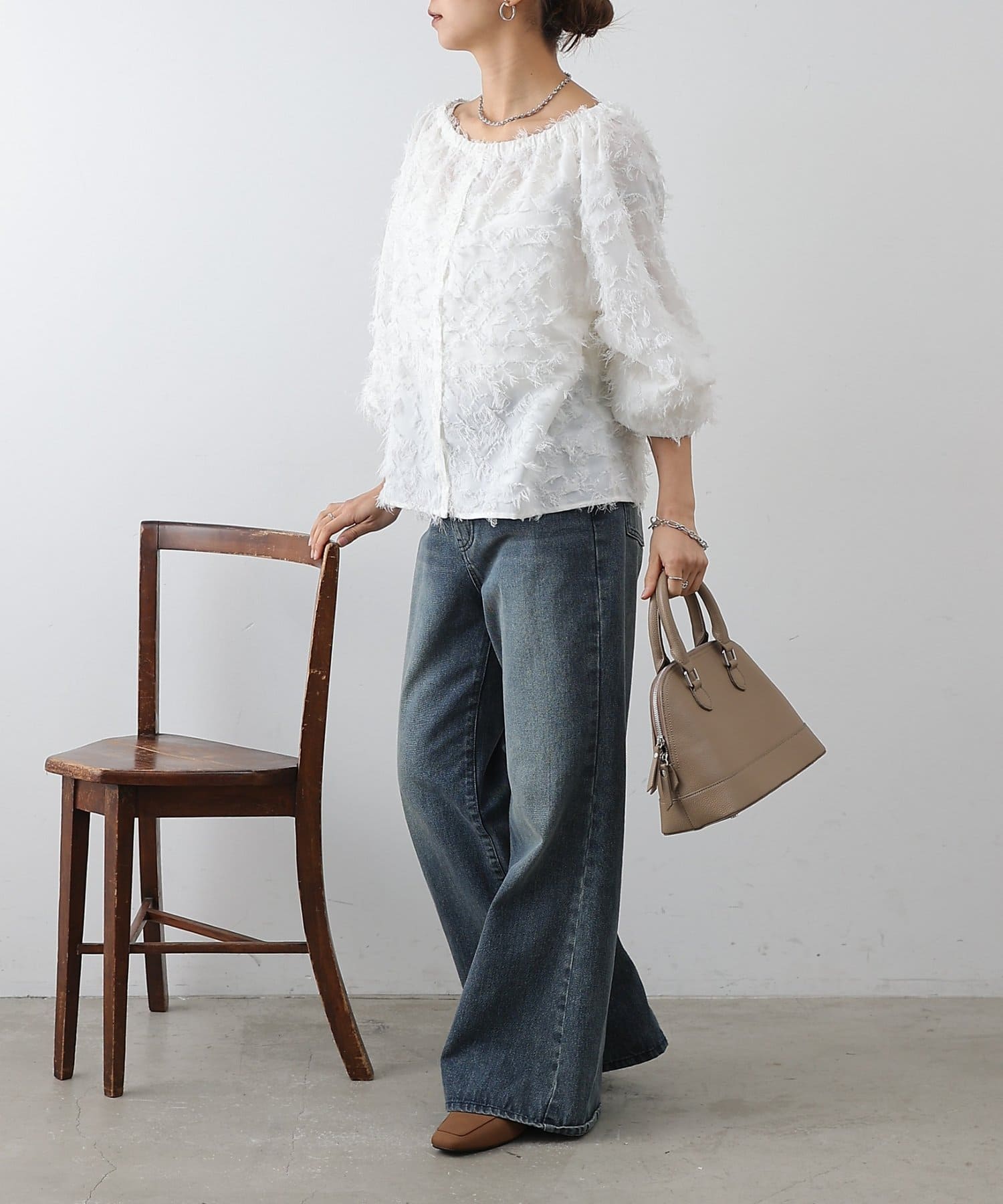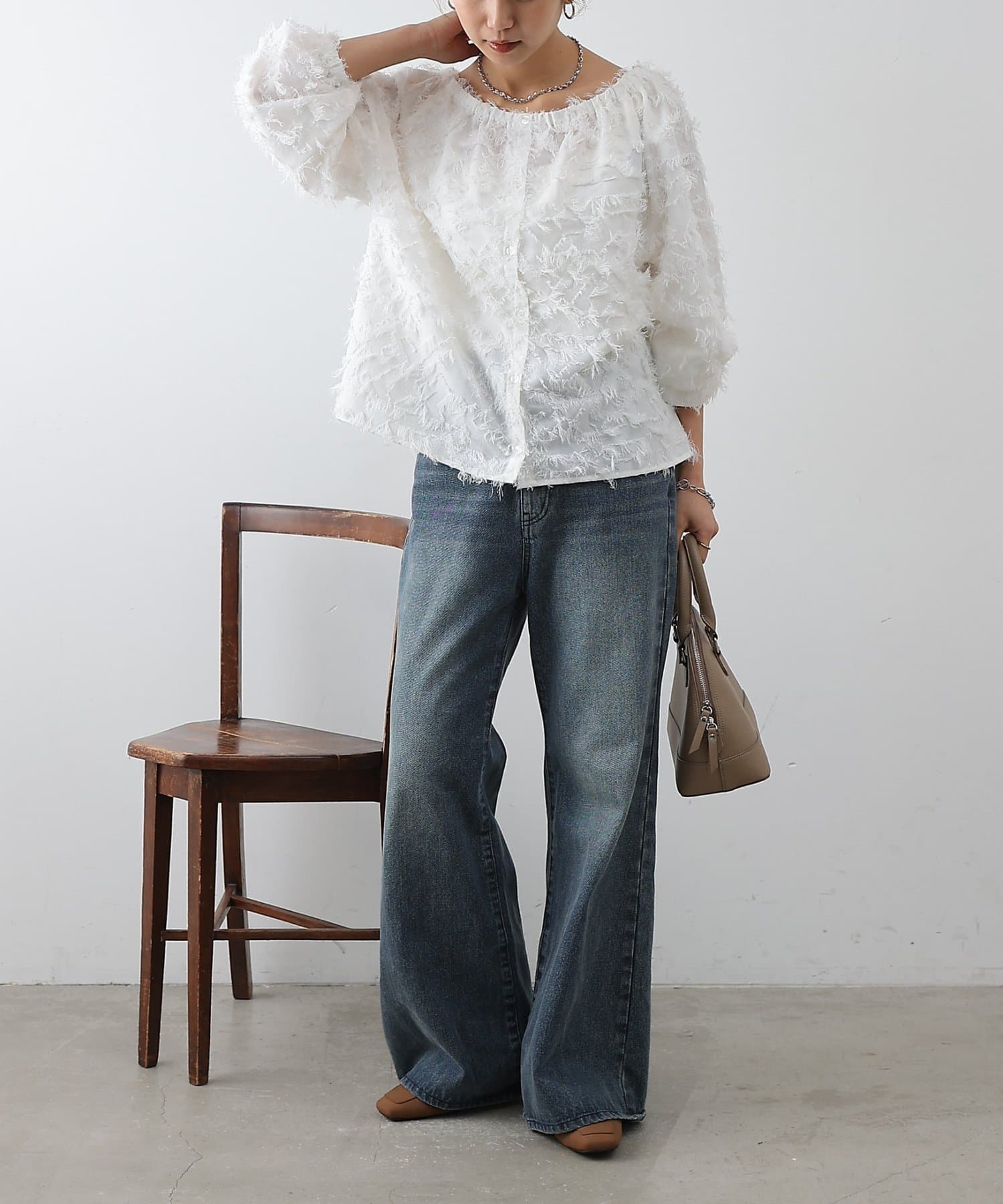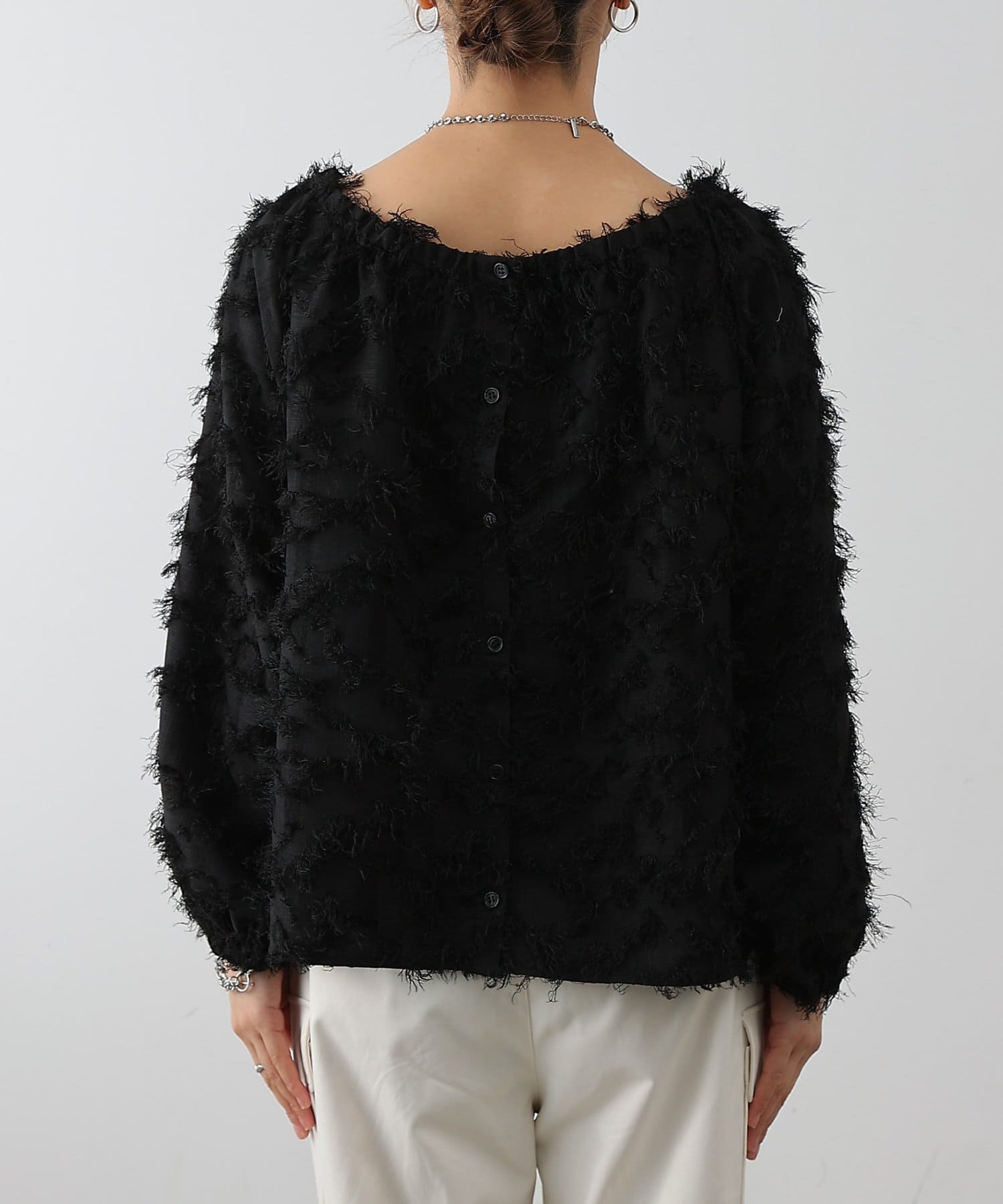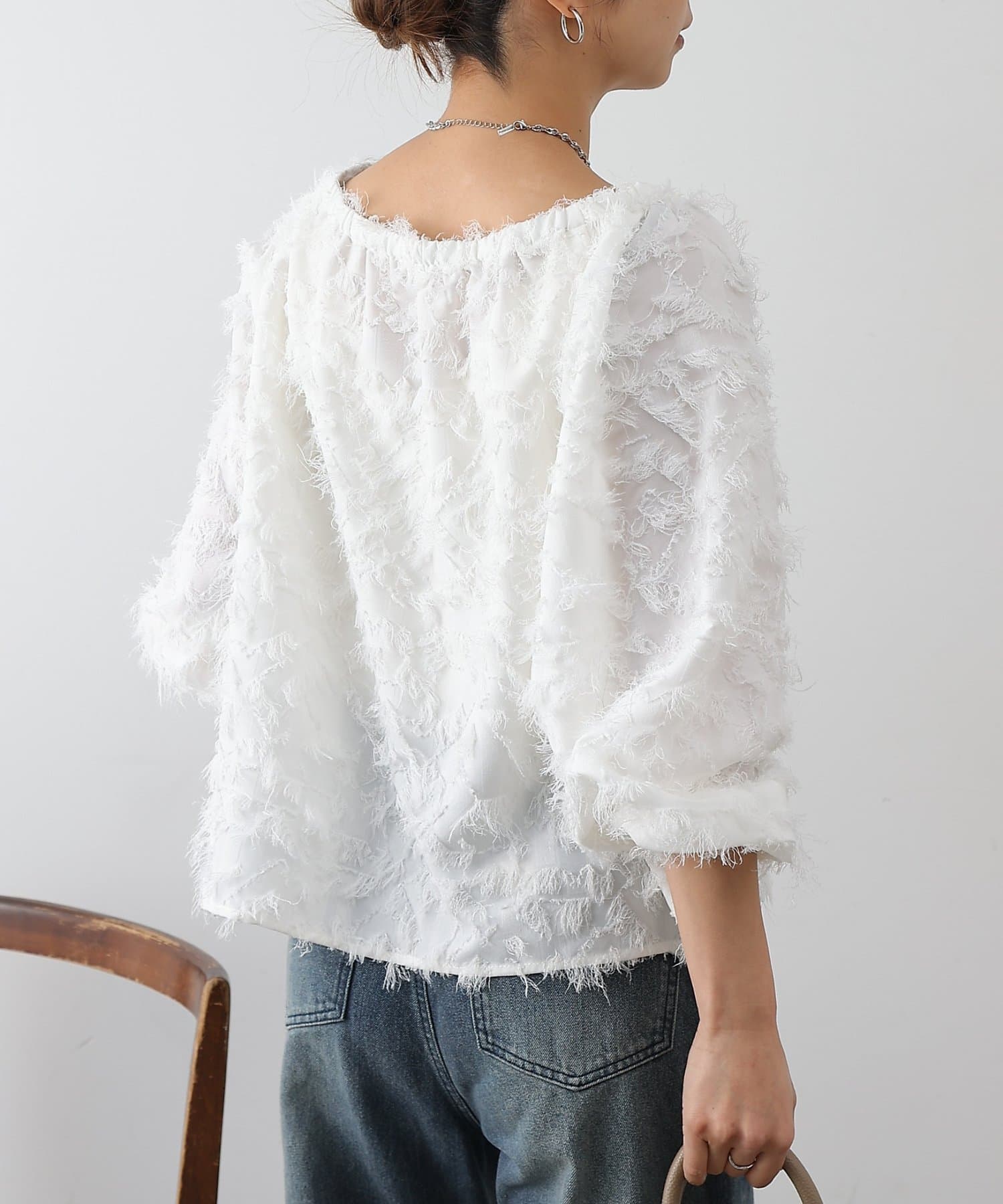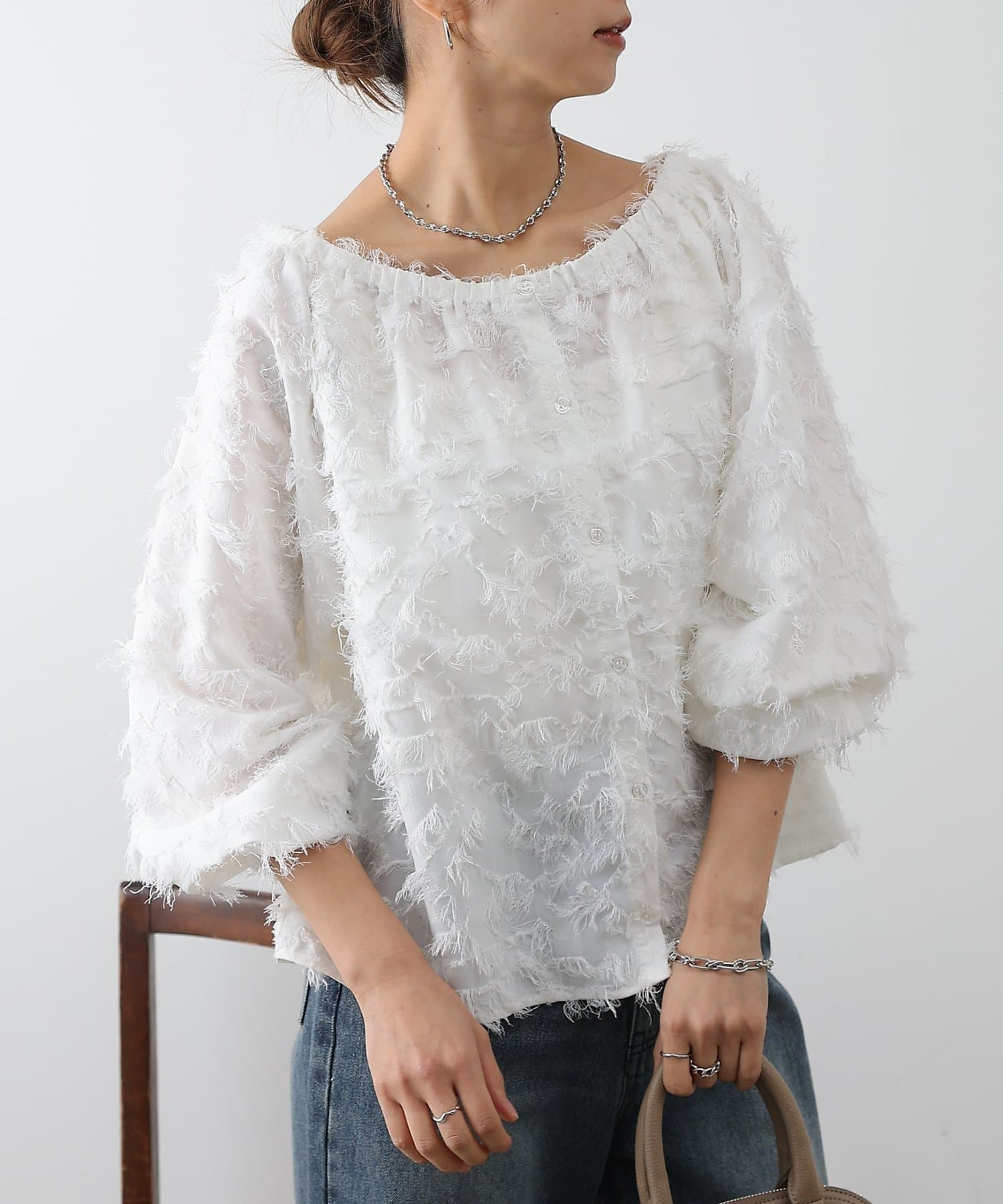こなれ感たっぷりのフリンジ素材を使用したブラウスです。