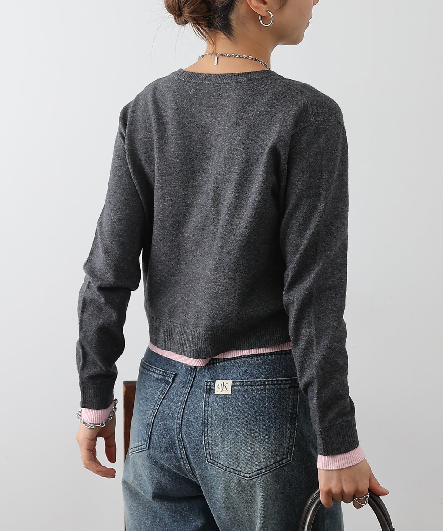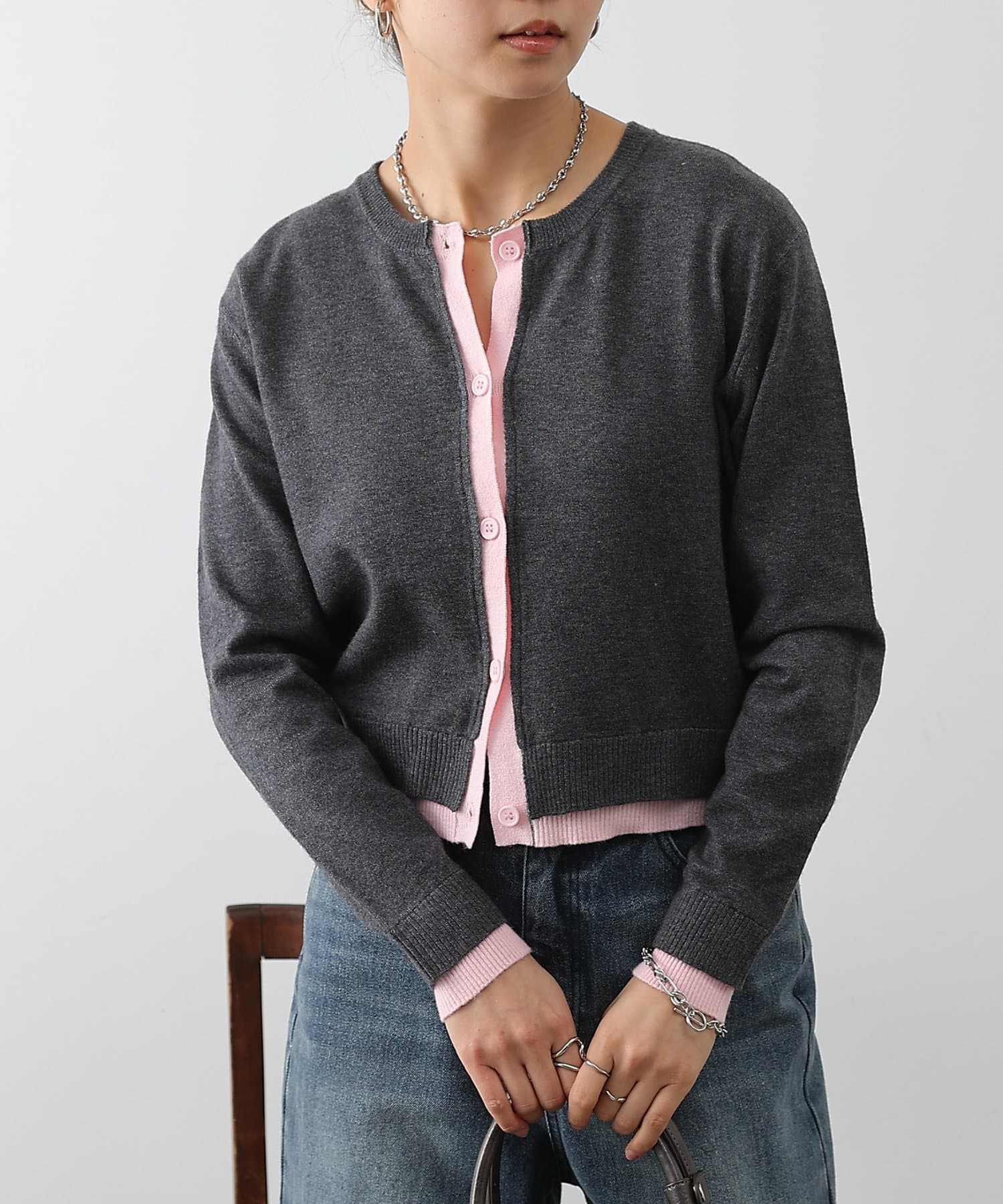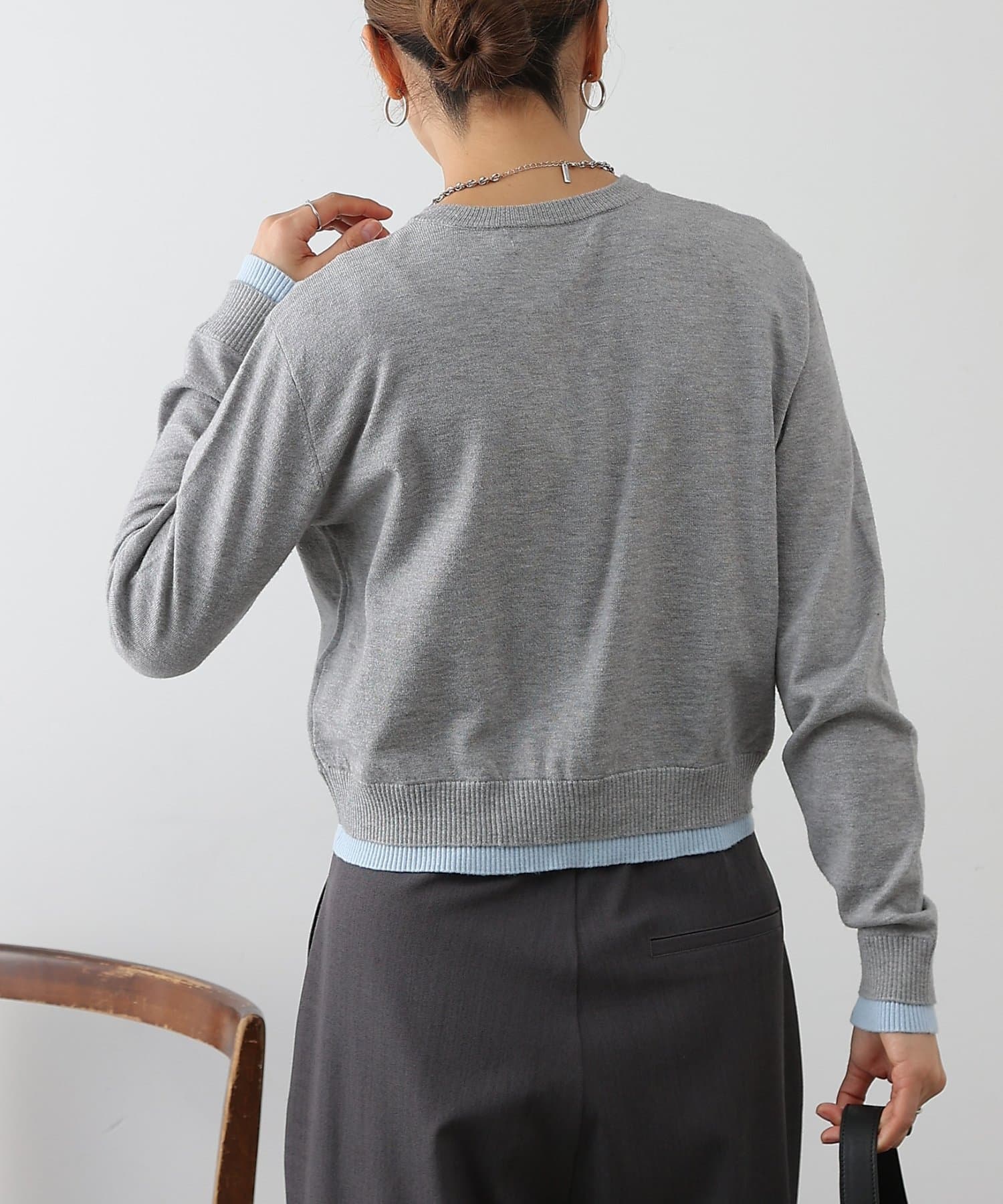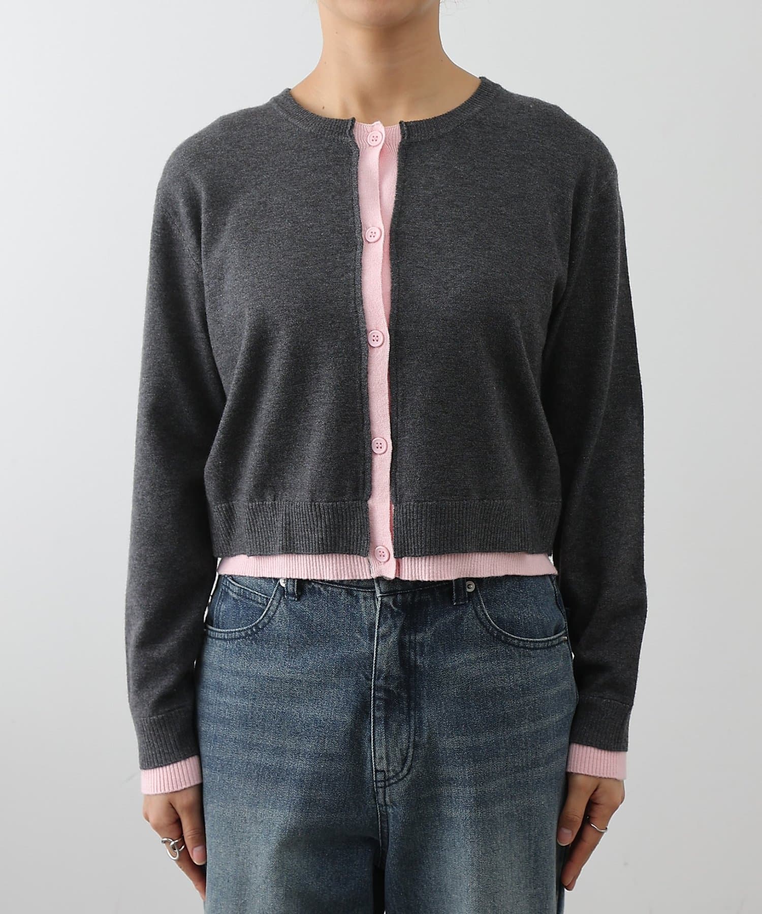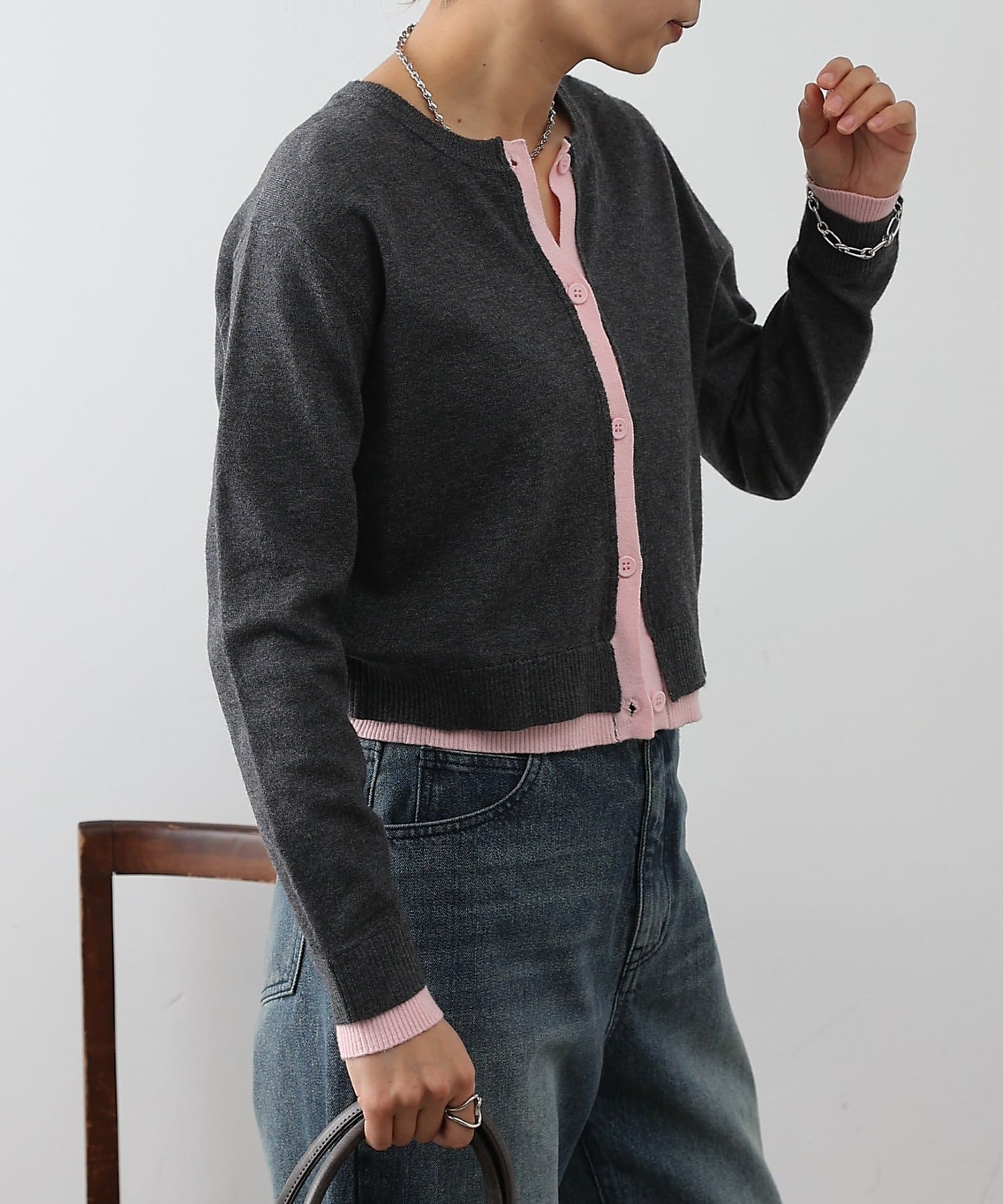 トレンド感のある配色デザインで、簡単にレイヤード風の着こなしが叶うカーディガン。