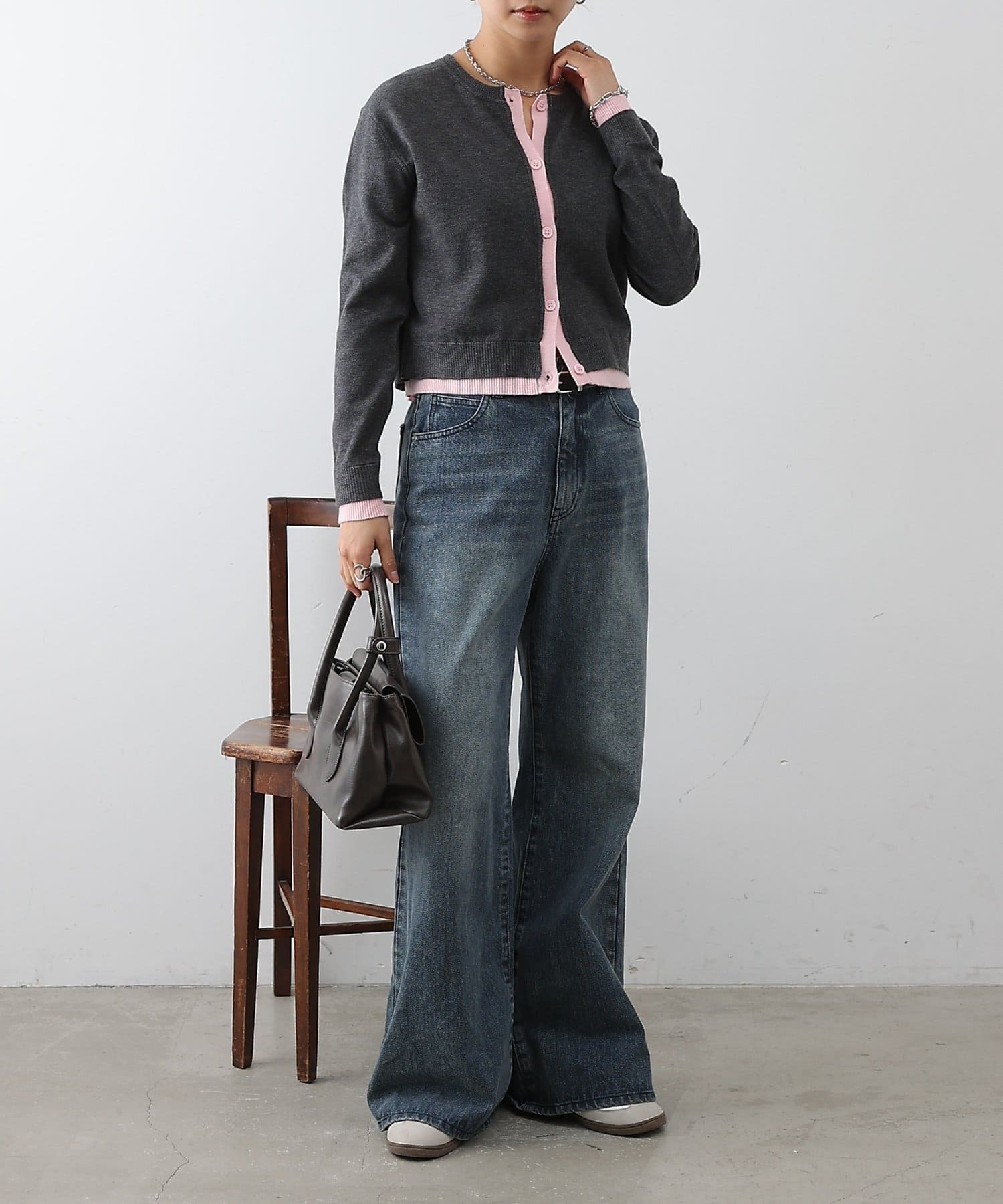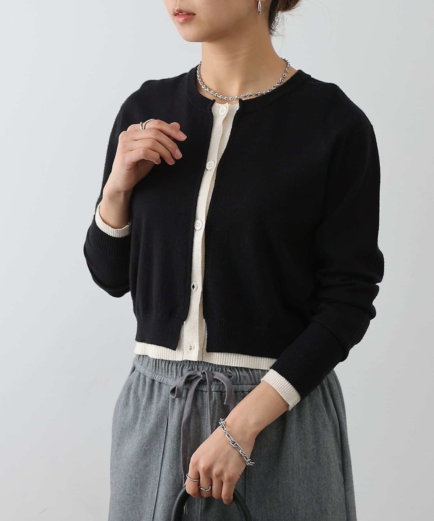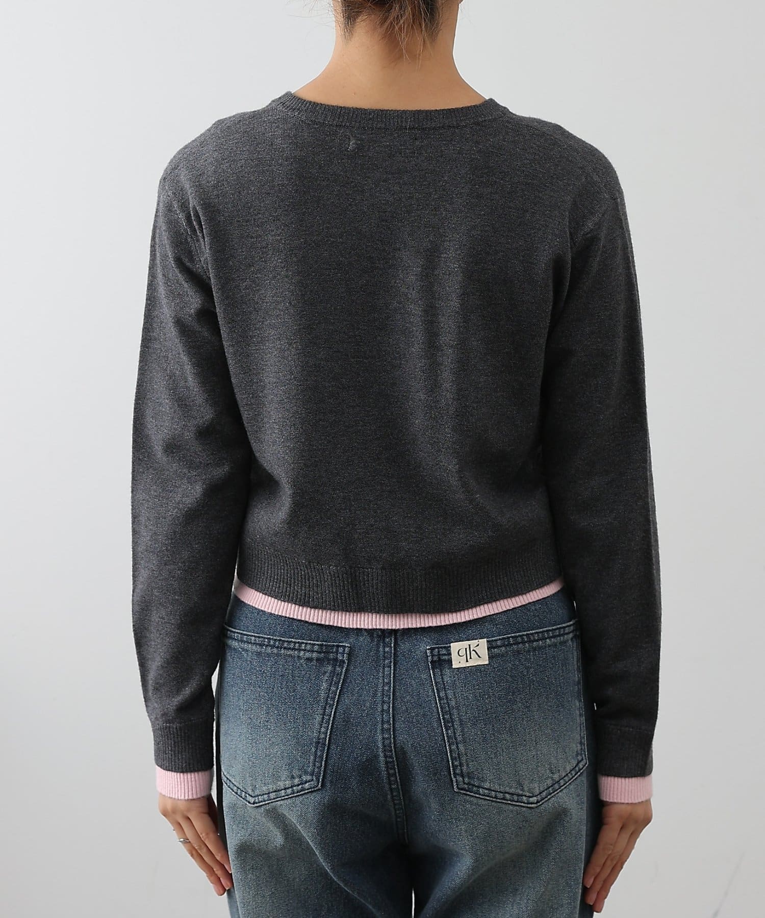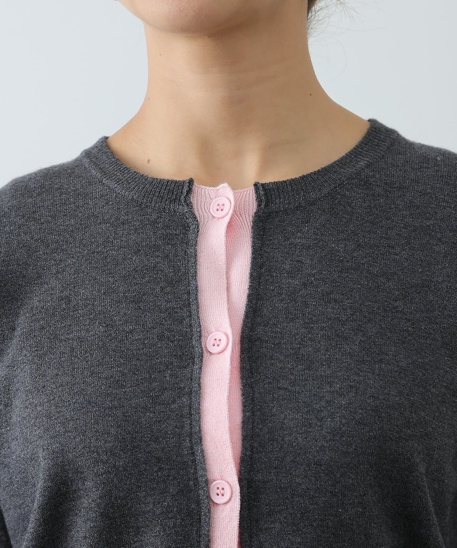 トレンド感のある配色デザインで、簡単にレイヤード風の着こなしが叶うカーディガン。
