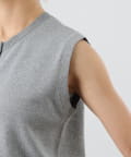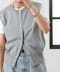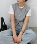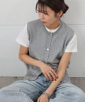 クルーネックデザインなので、シャツなどともレイヤードしやすく、1枚あるとコーディネートの幅が広がる万能ベストです。