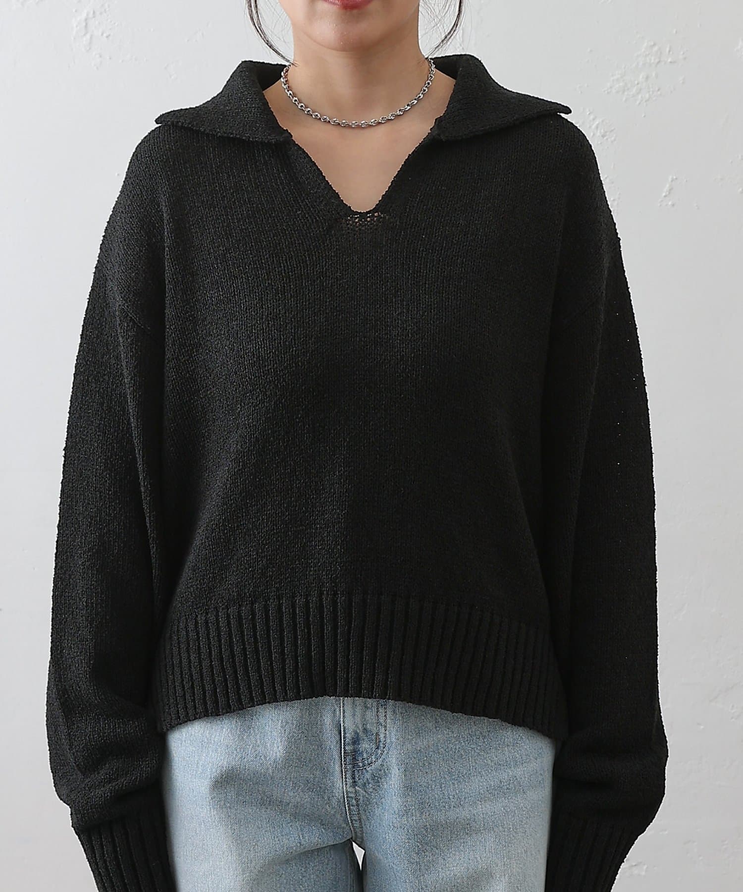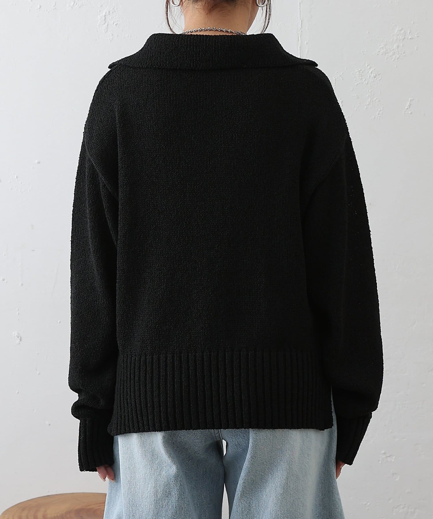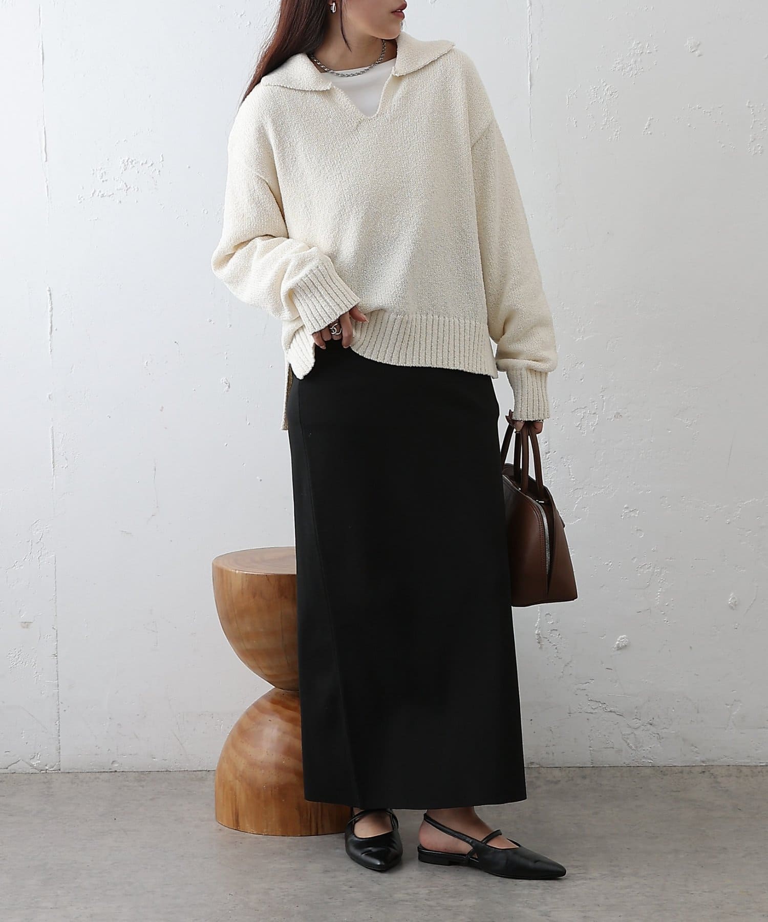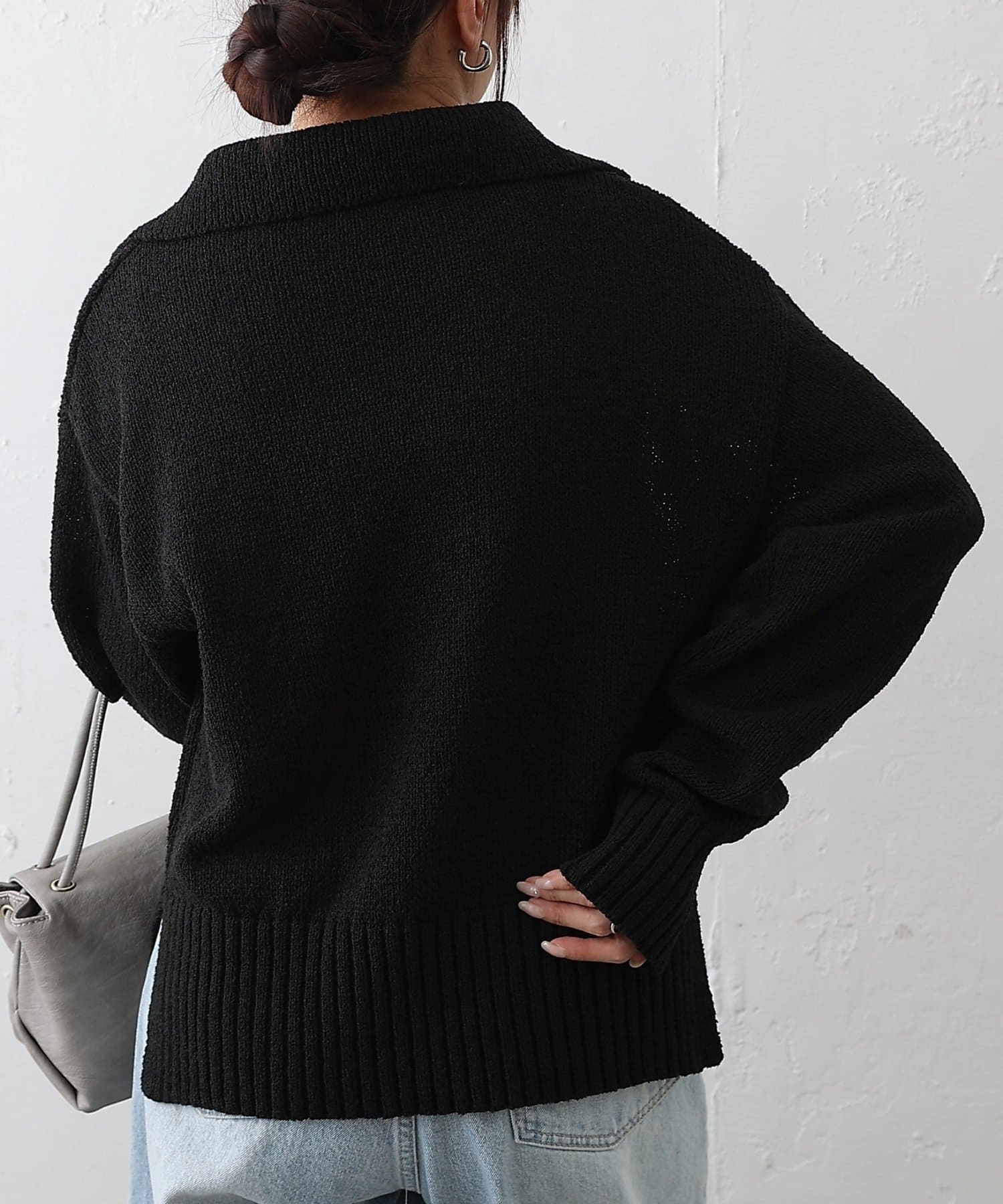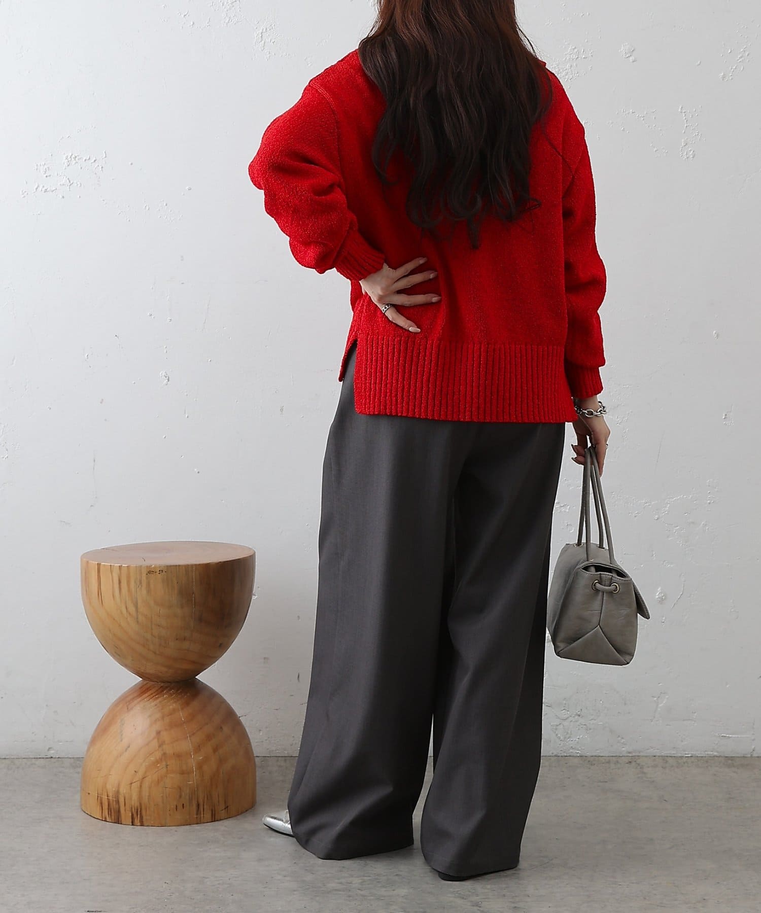 ミニブークレ素材を使用したスキッパーデザインのニットプルオーバーです。