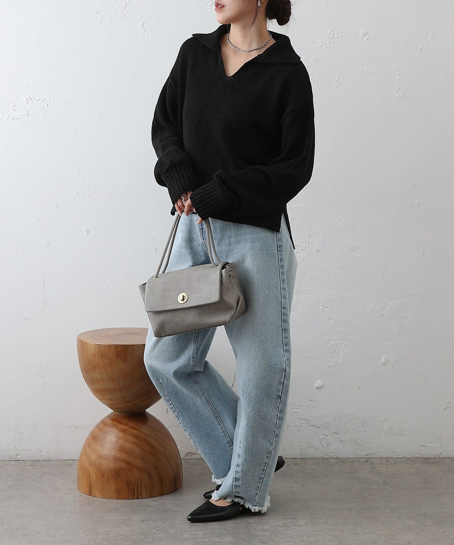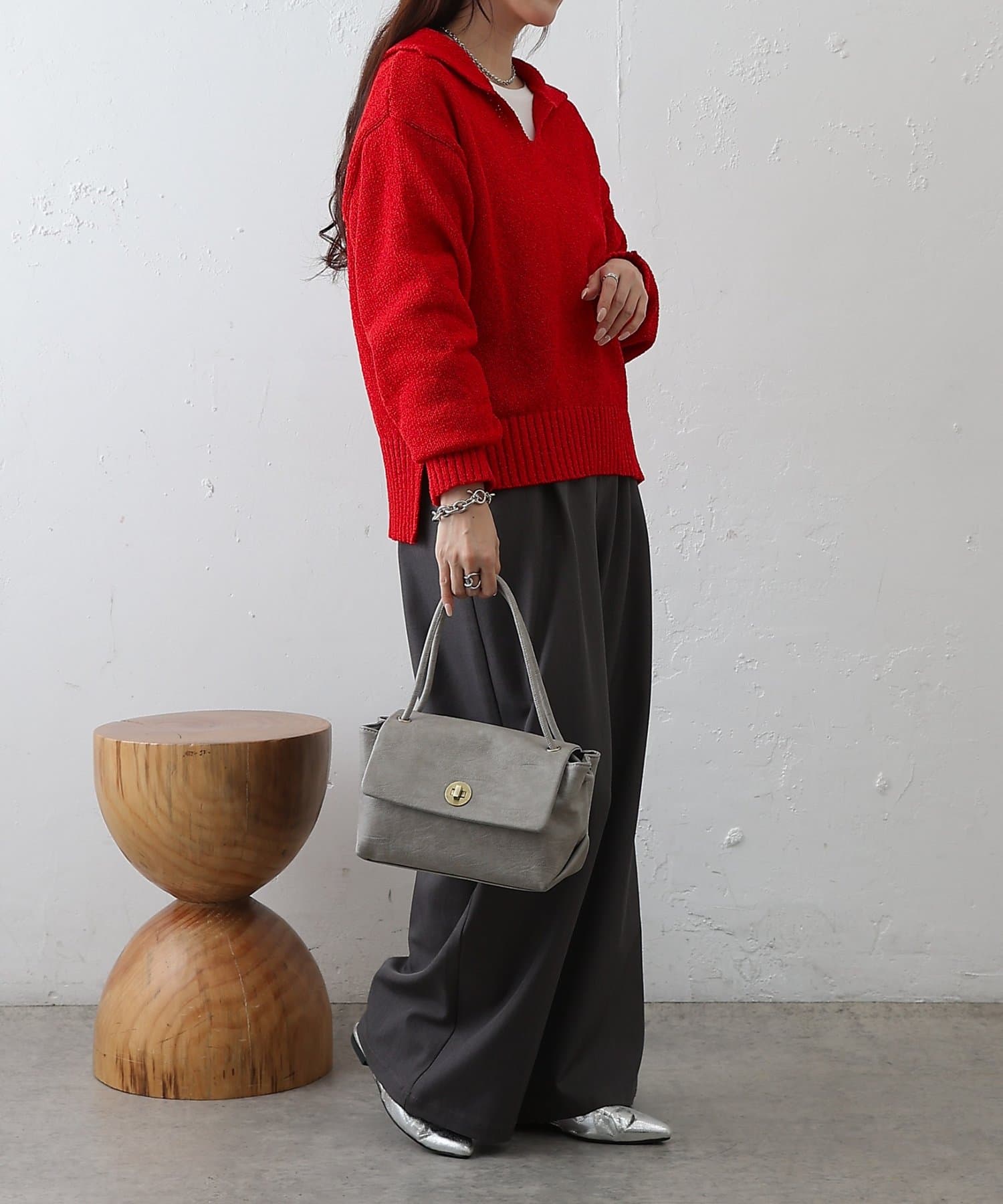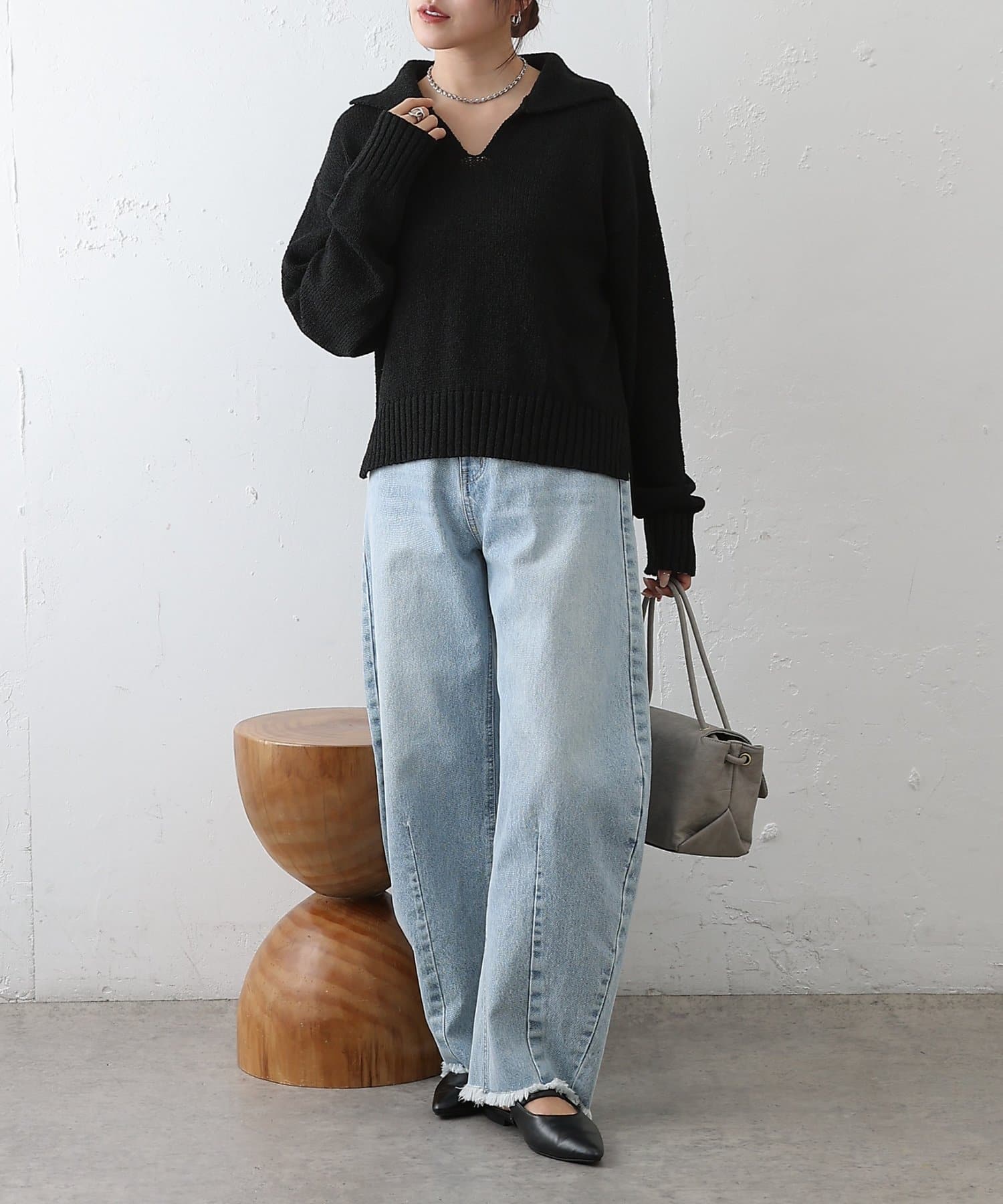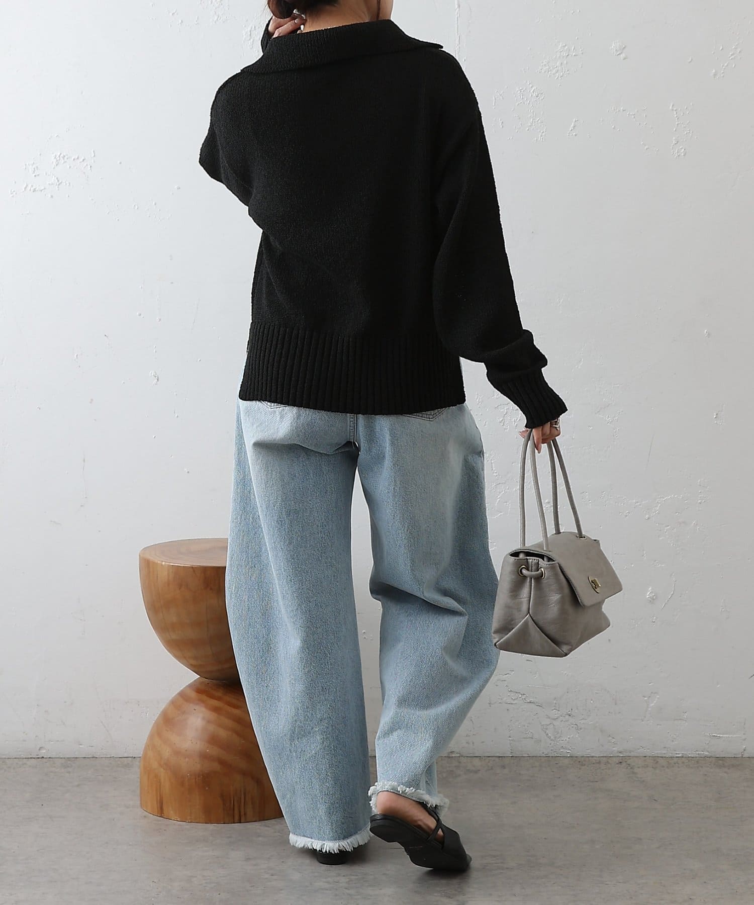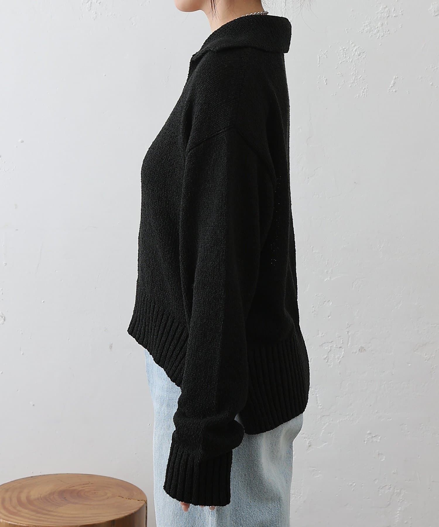 ミニブークレ素材を使用したスキッパーデザインのニットプルオーバーです。