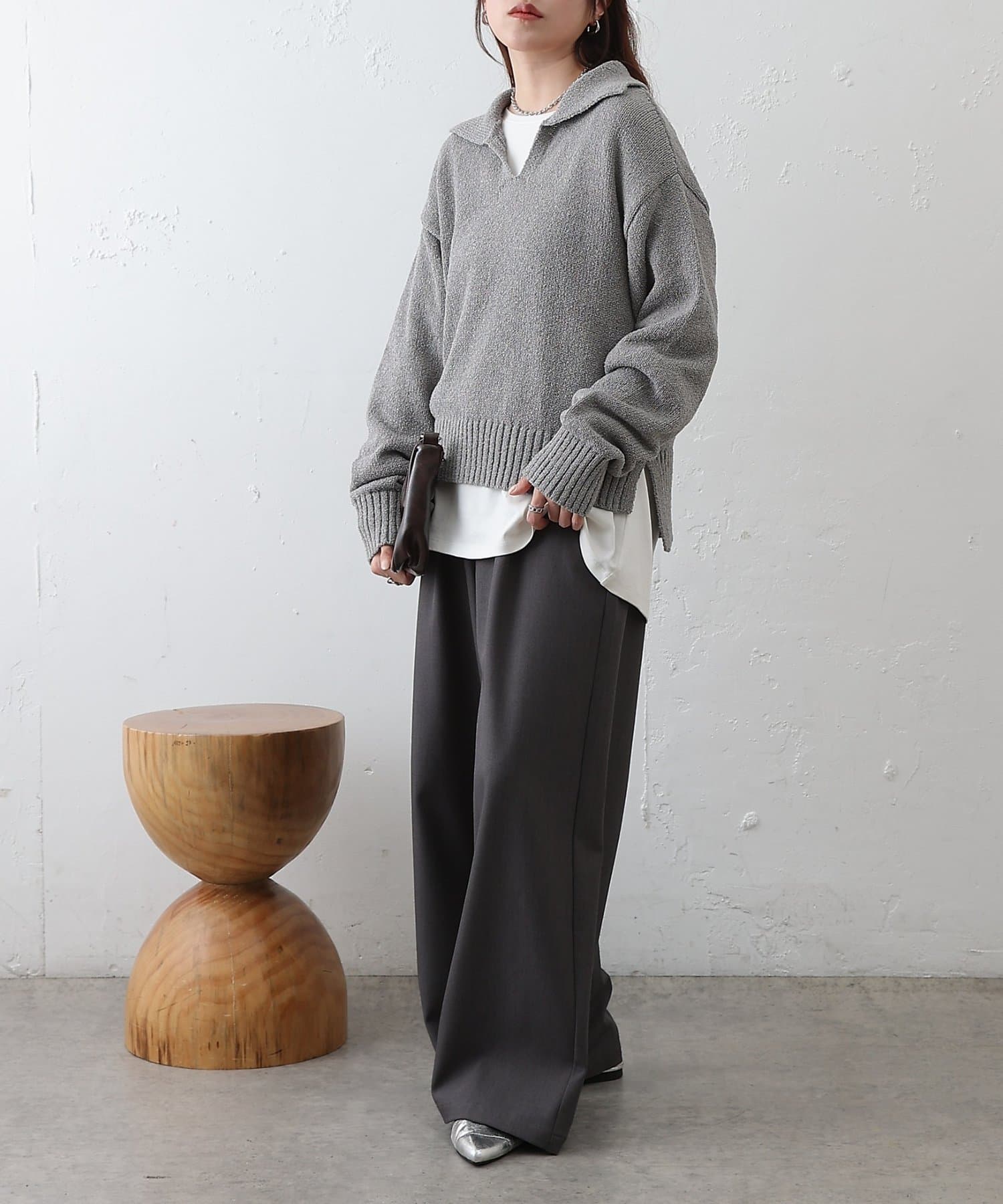 首元は程よく開きのあるスキッパー仕様で顔まわりをすっきりと見せ、抜け感のある印象に◎