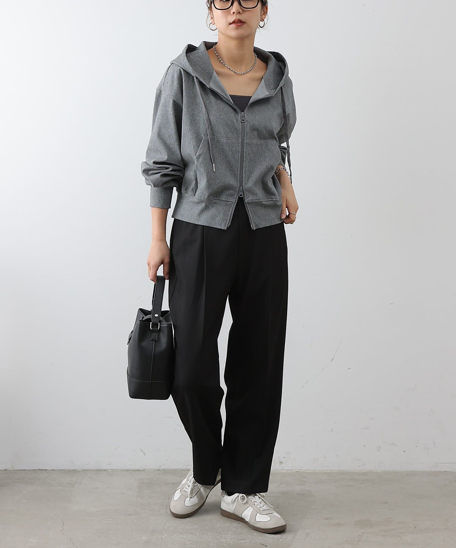 また、トレンドのダブルジップデザインなので、チャックの上下を少しだけ開けることでこなれ感もプラスできます◎
