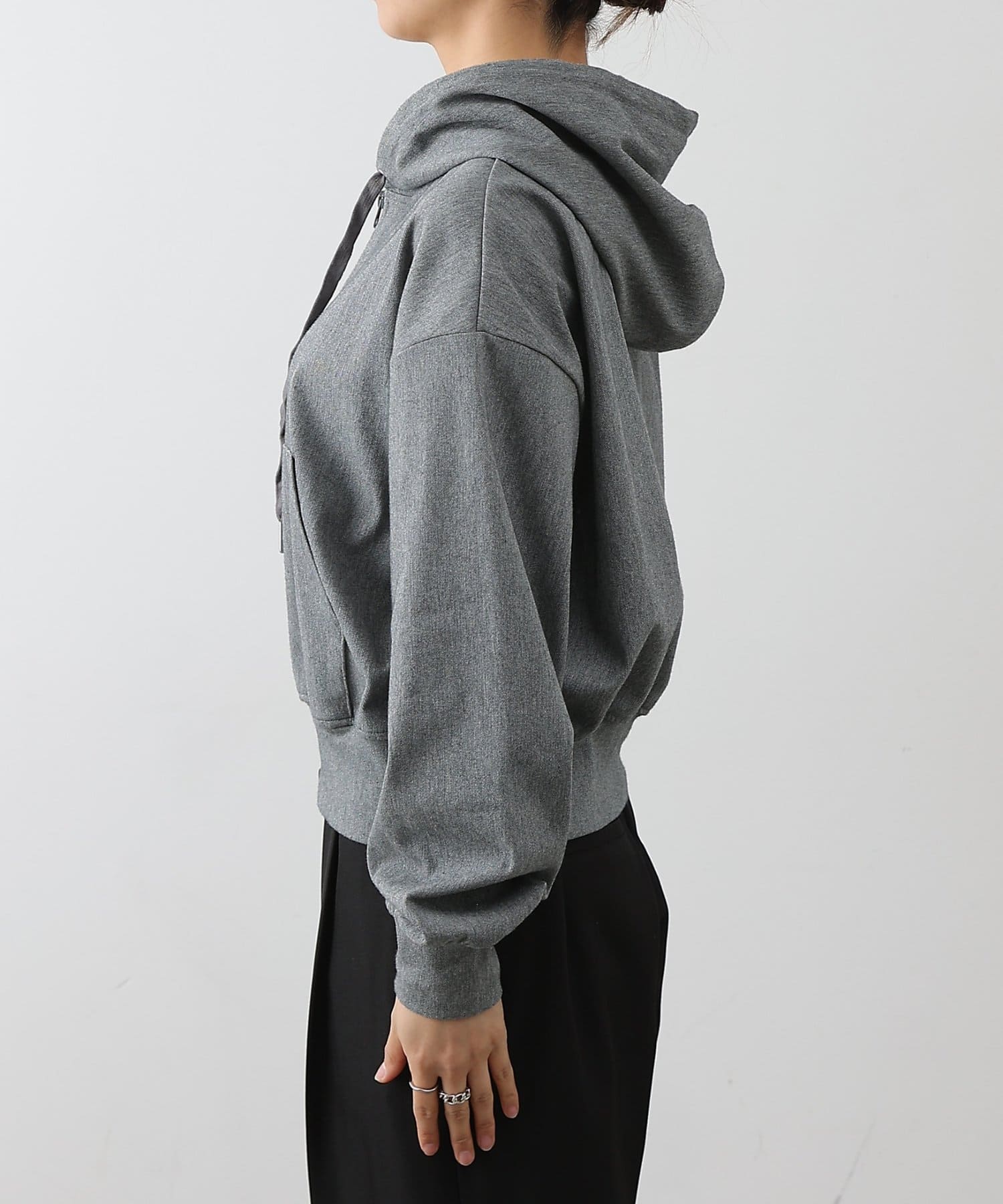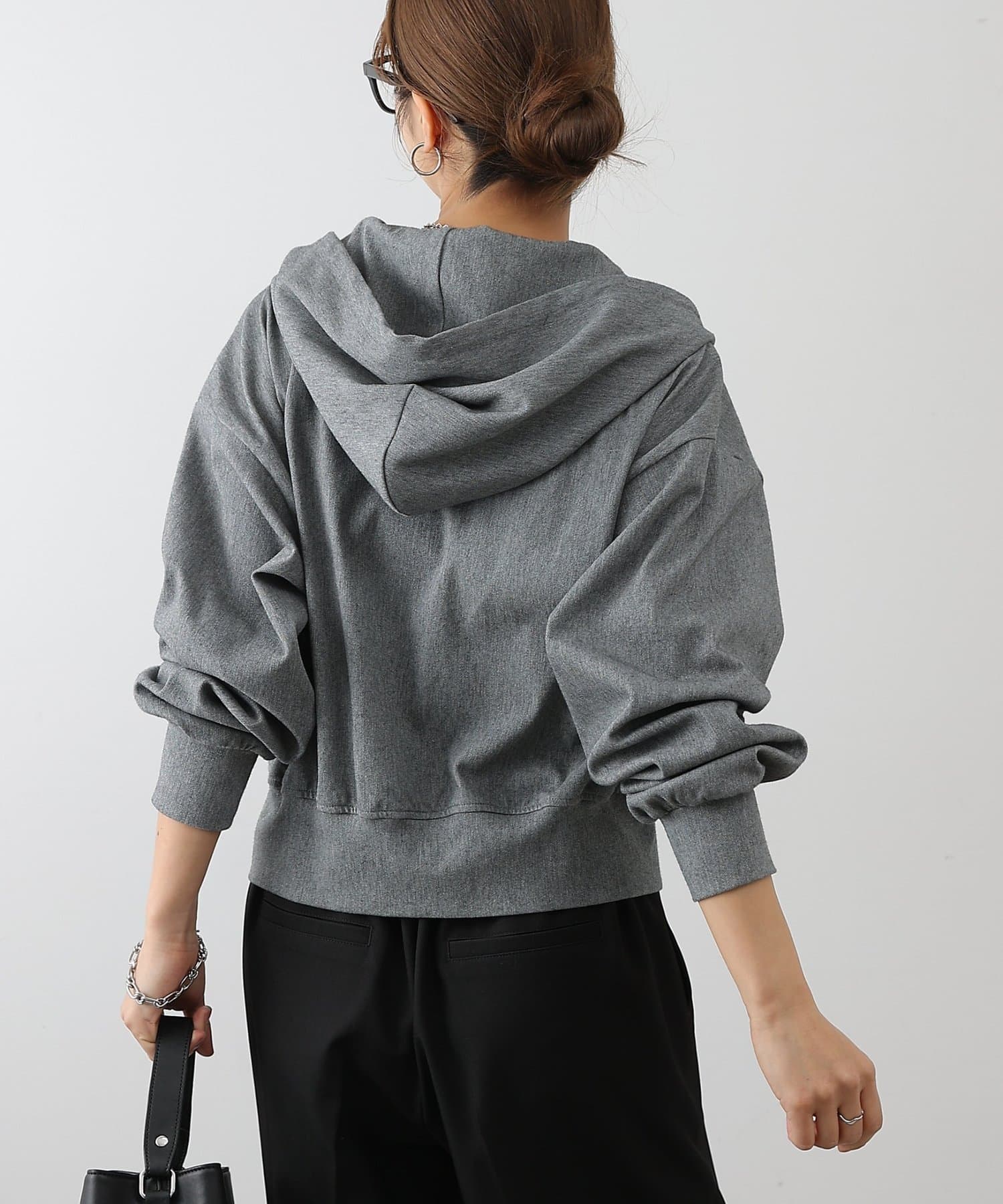 チャックをすべて閉じてトップスとしても、開けて羽織りとしても使いやすいデザインなので、