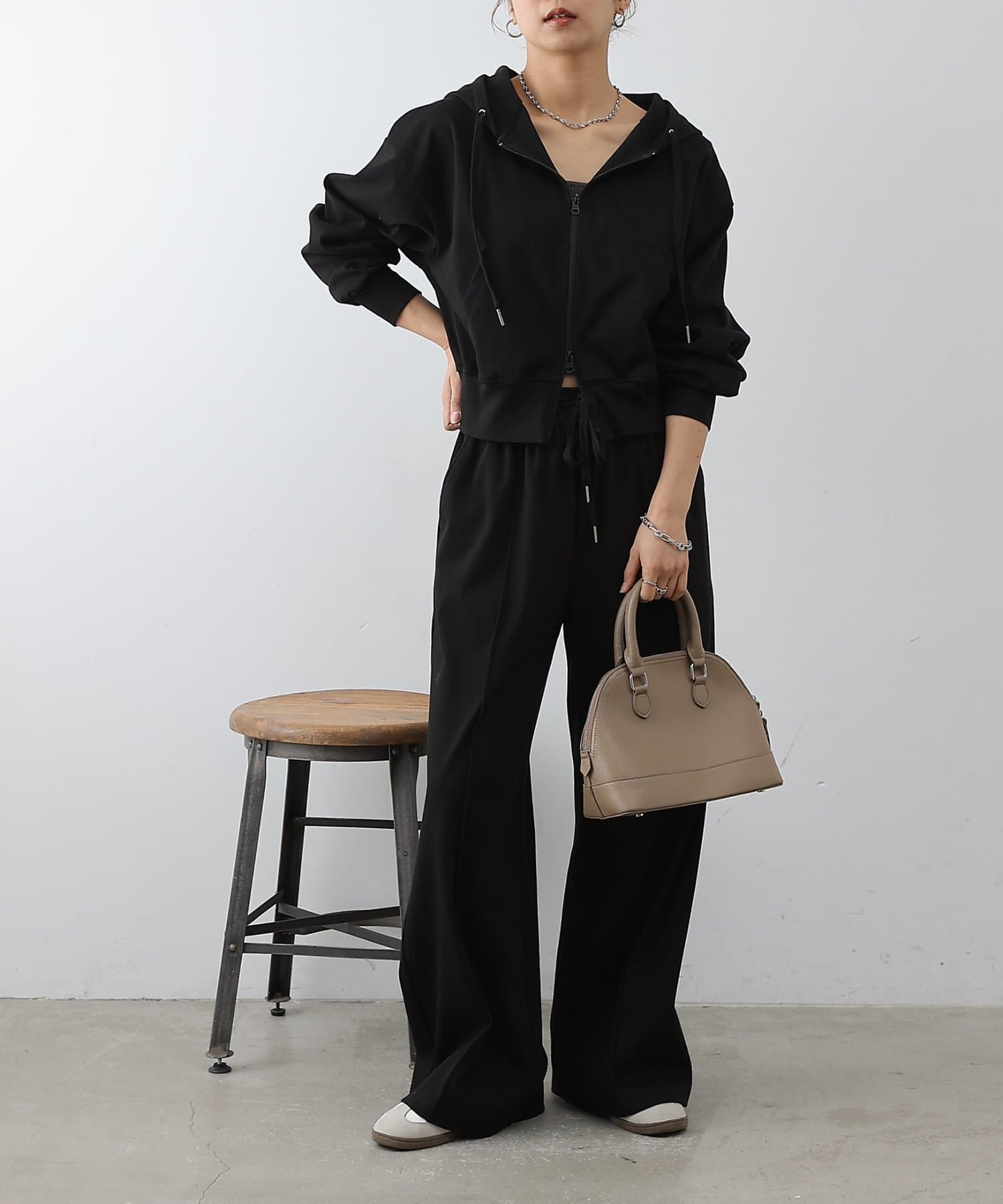 同素材のボトムスもあるのでセットアップとして合わせるのもかわいいです◎