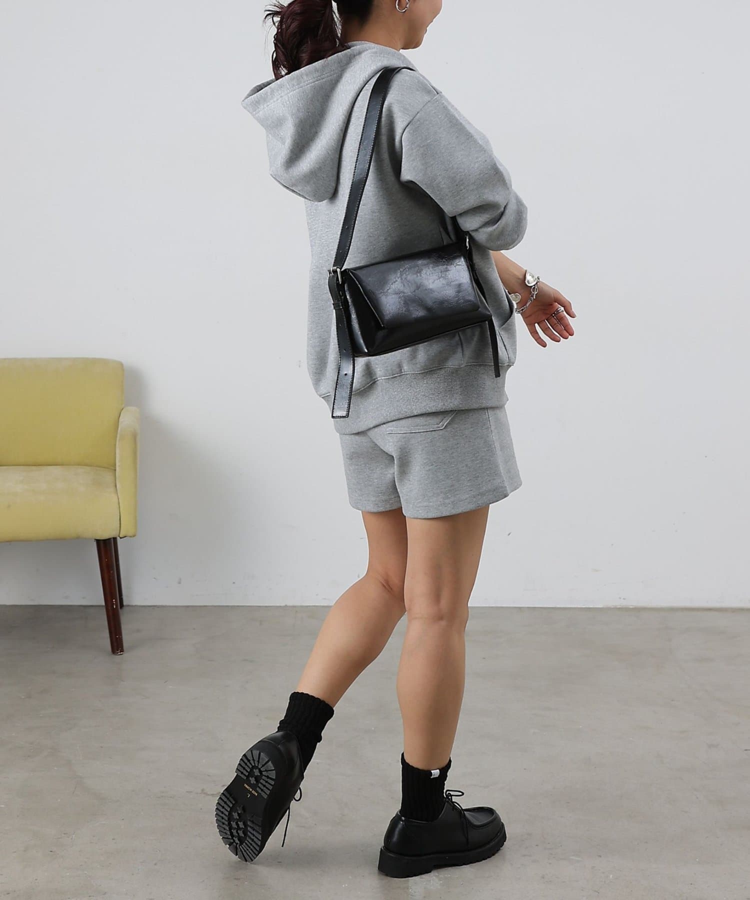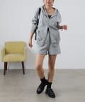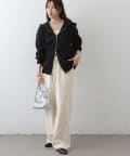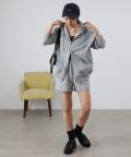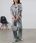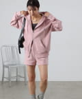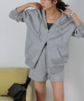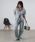 同素材のボトムスとセットアップとして合わせるスタイルもオススメです。