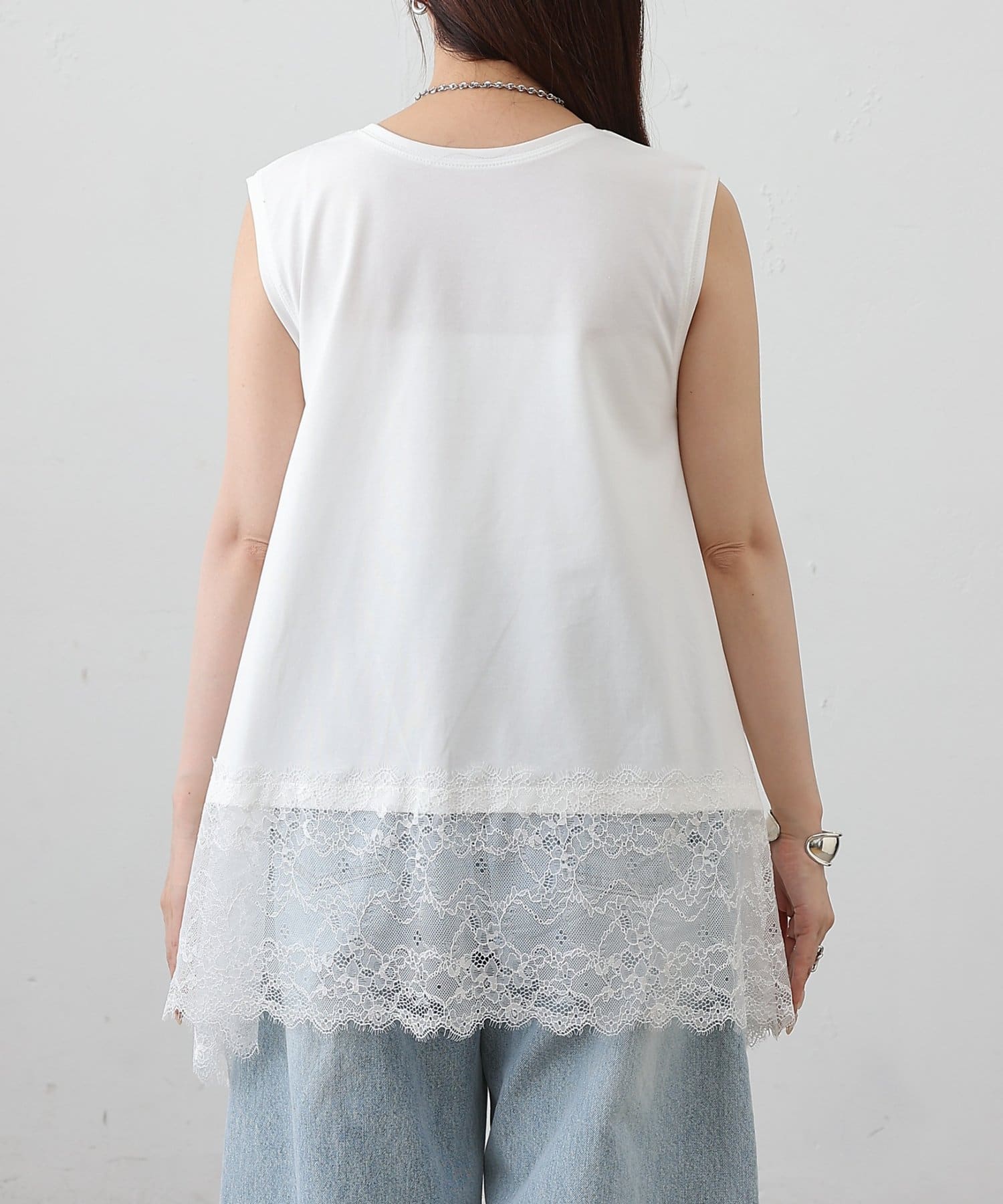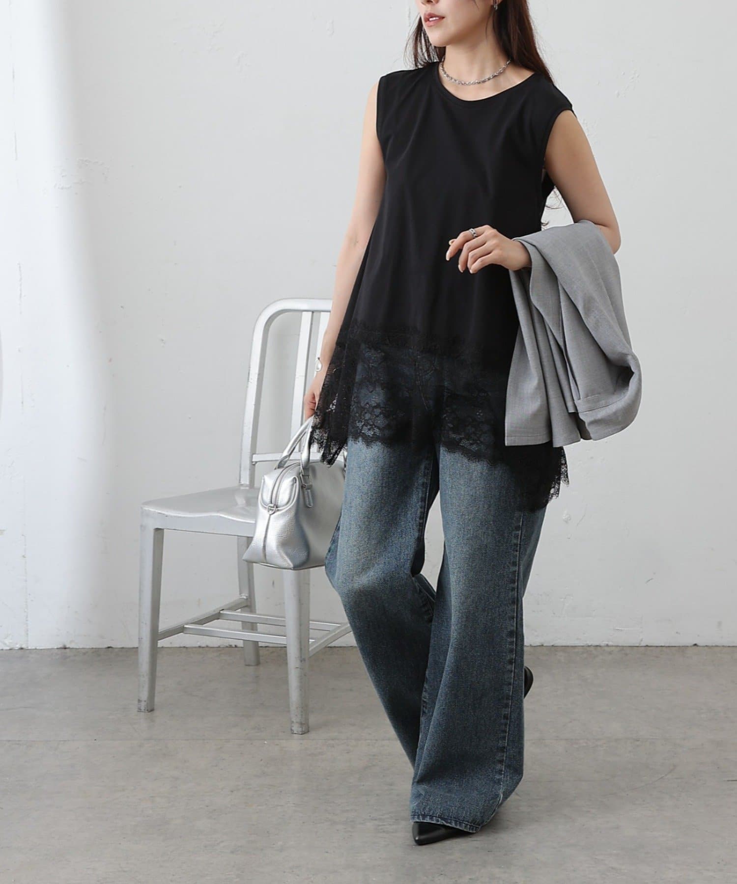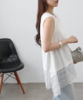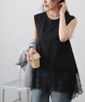 裾レースイレヘムノースリーブプルオーバー